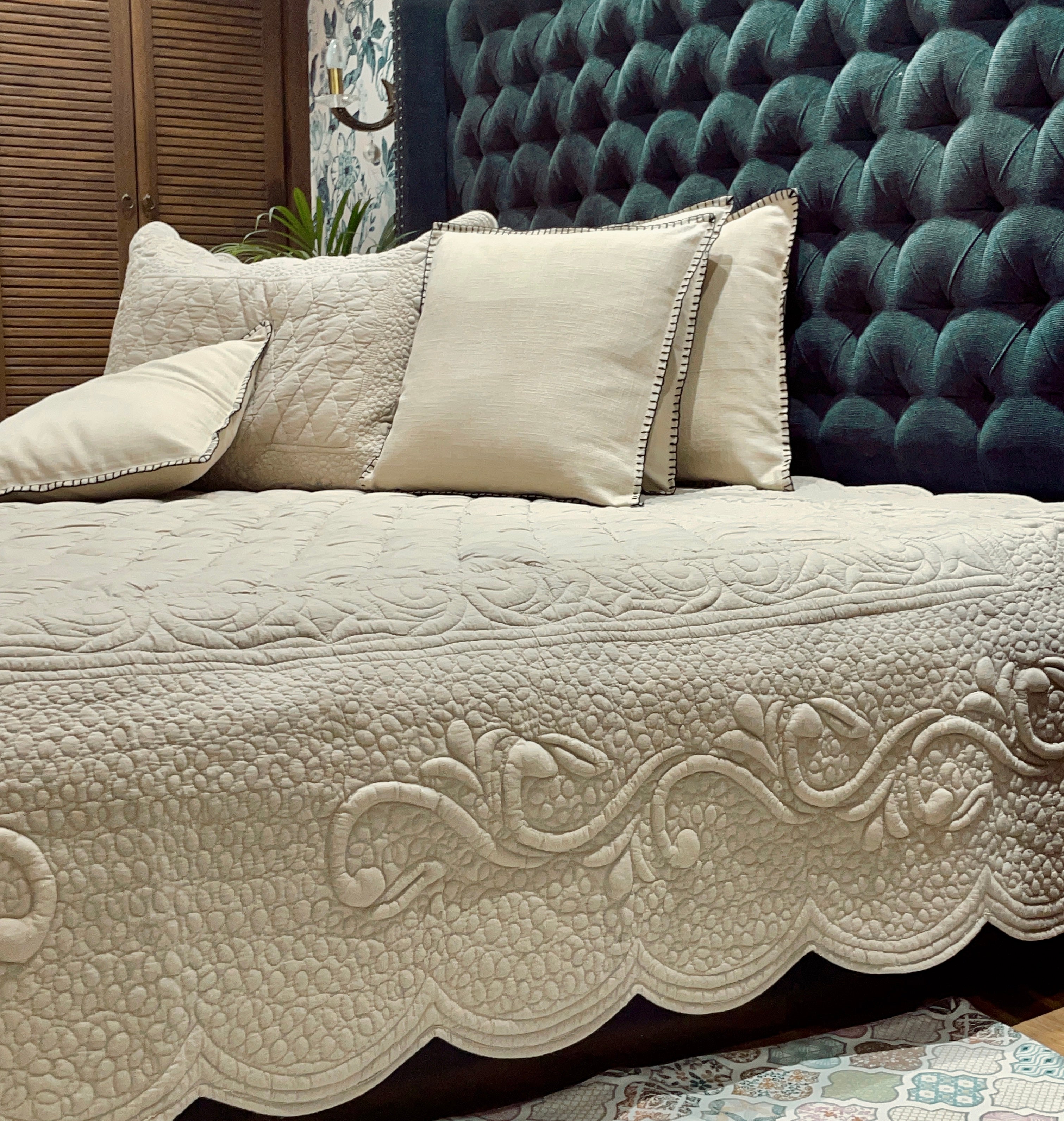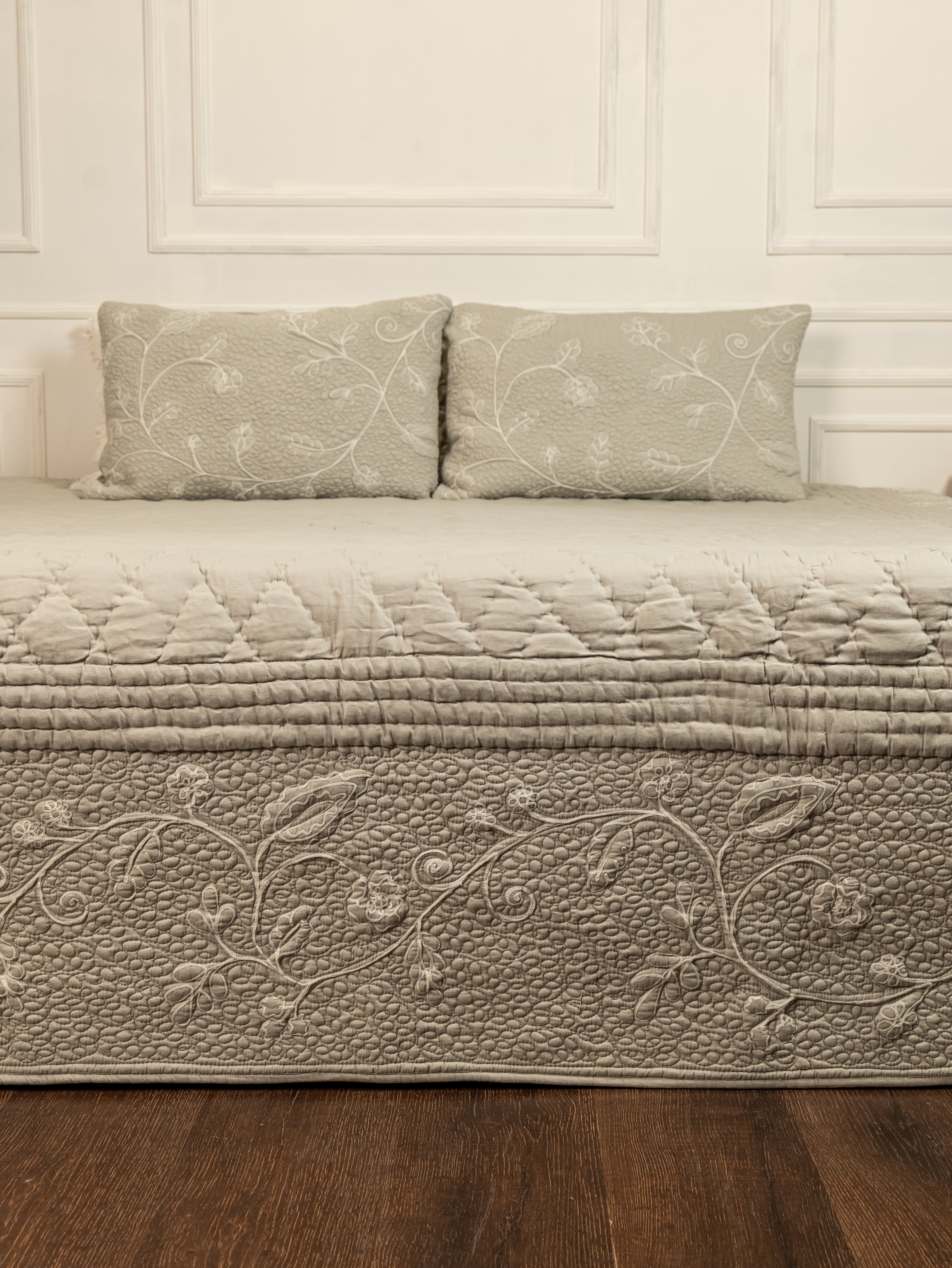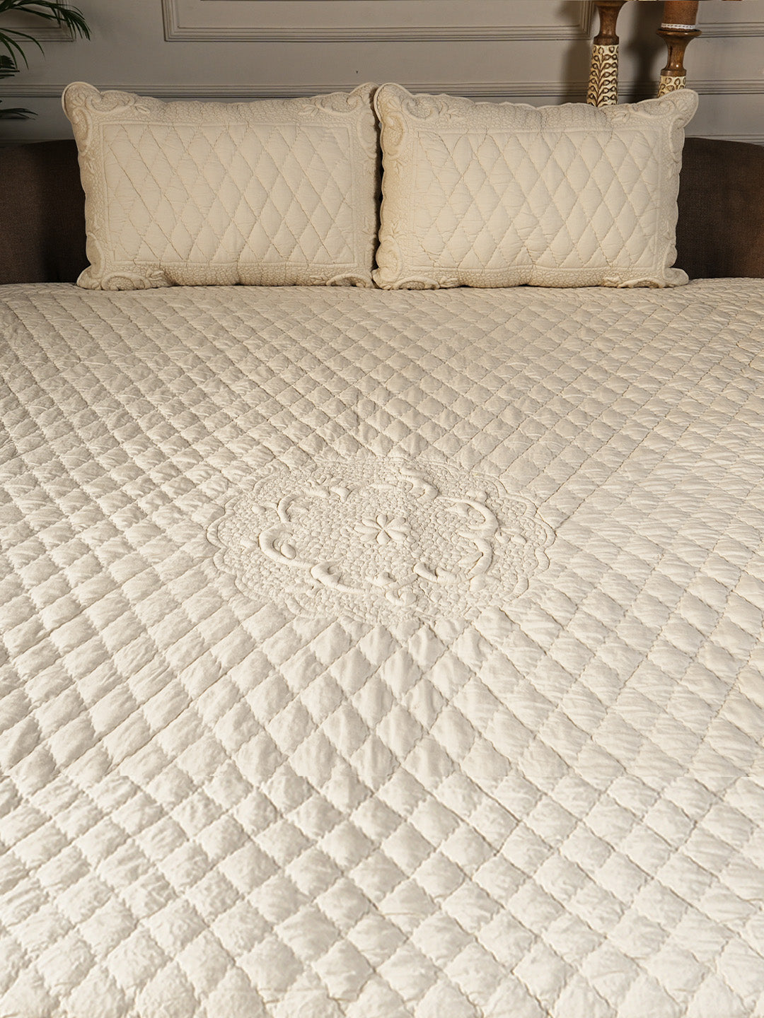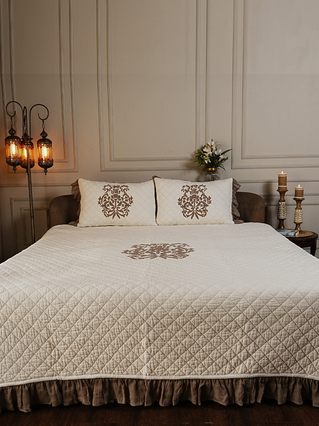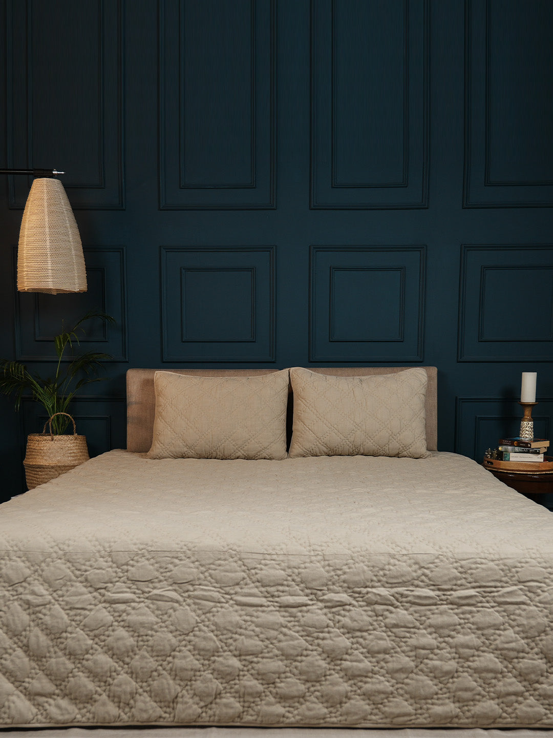 Amara Ornate Medallion Hand-Quilted King Size Bed Spread 100% Linen Cotton