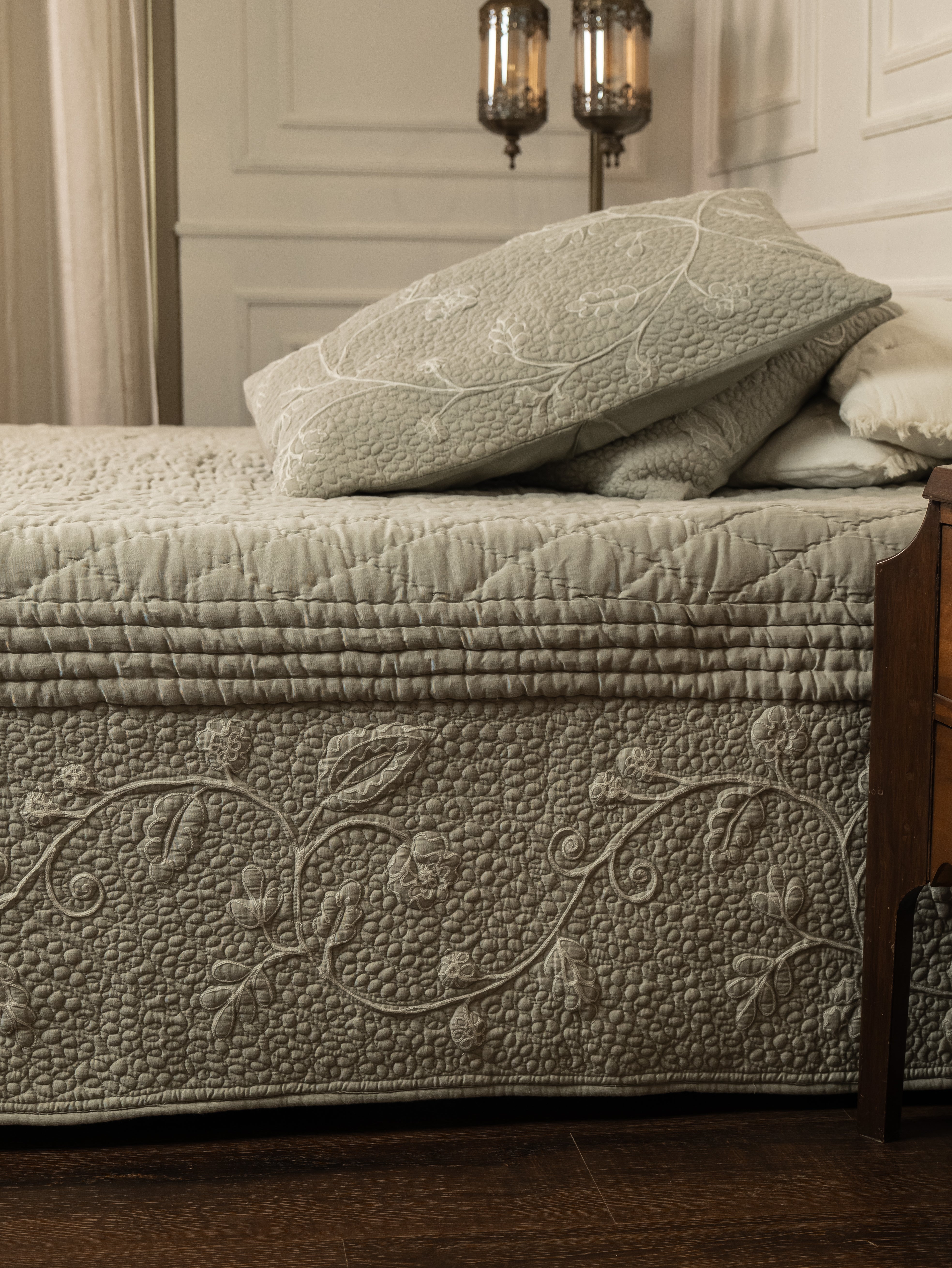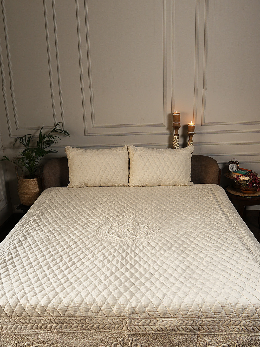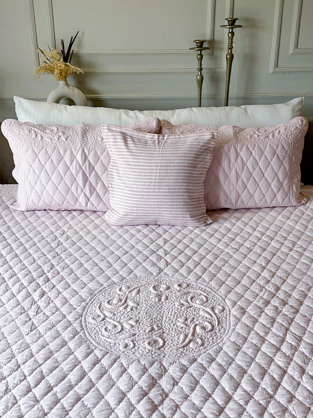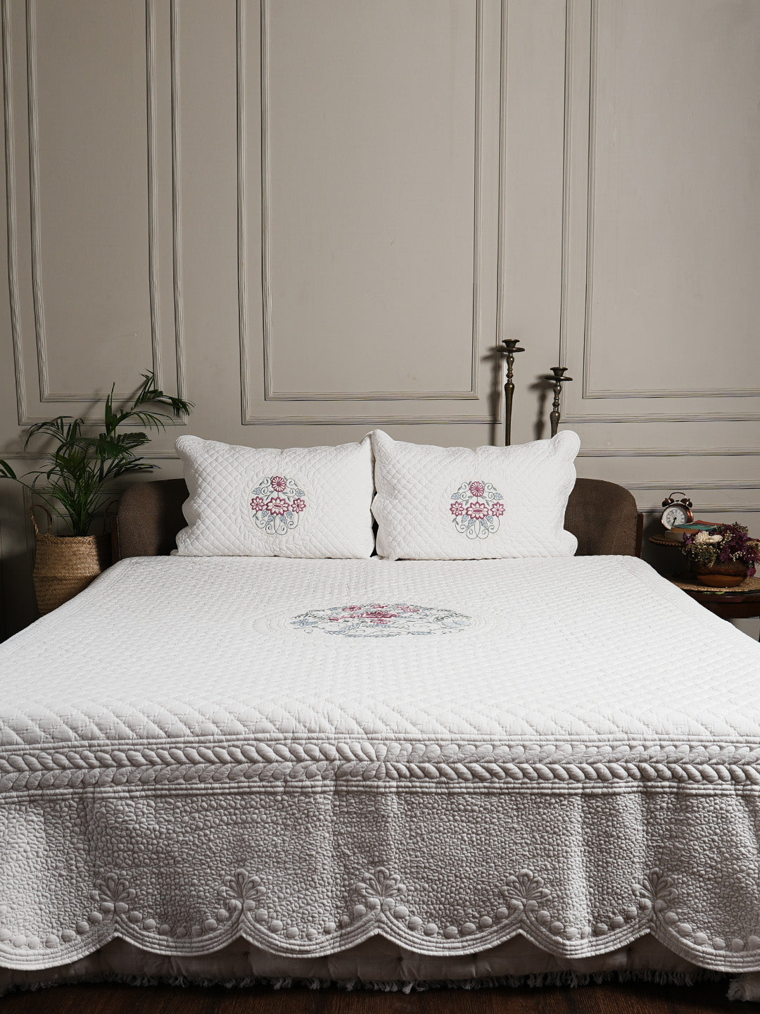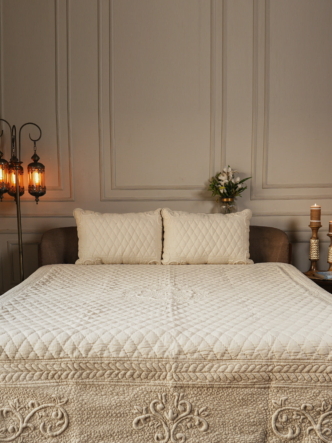 Amara Ornate Medallion Hand-Quilted King Size Bed Spread 100% Linen Cotton