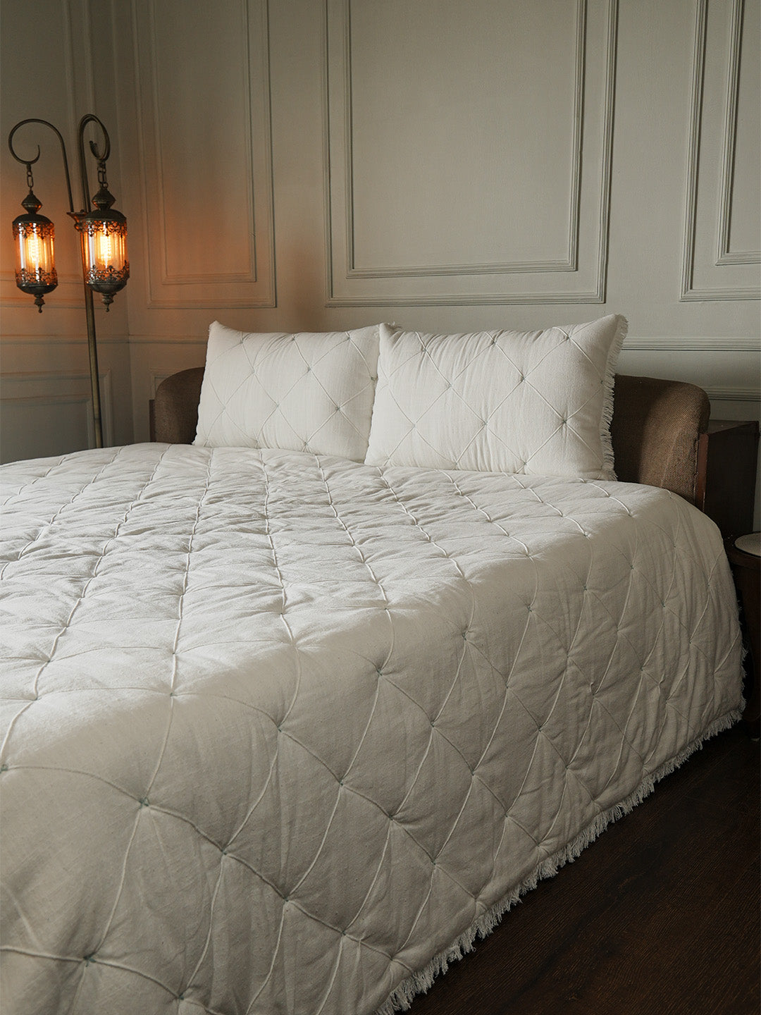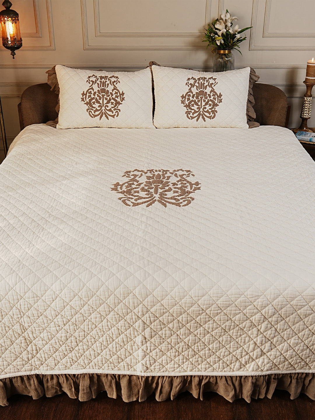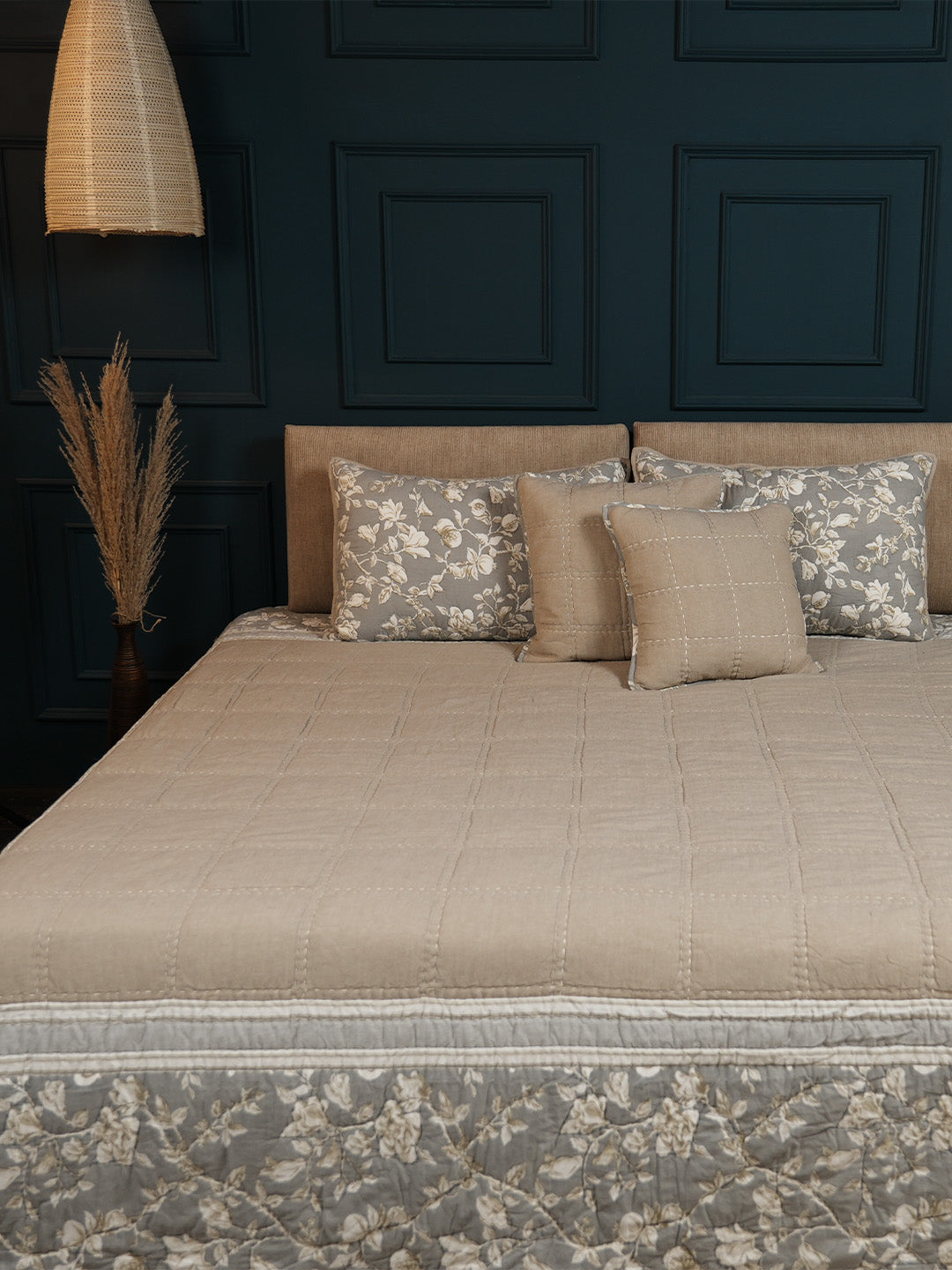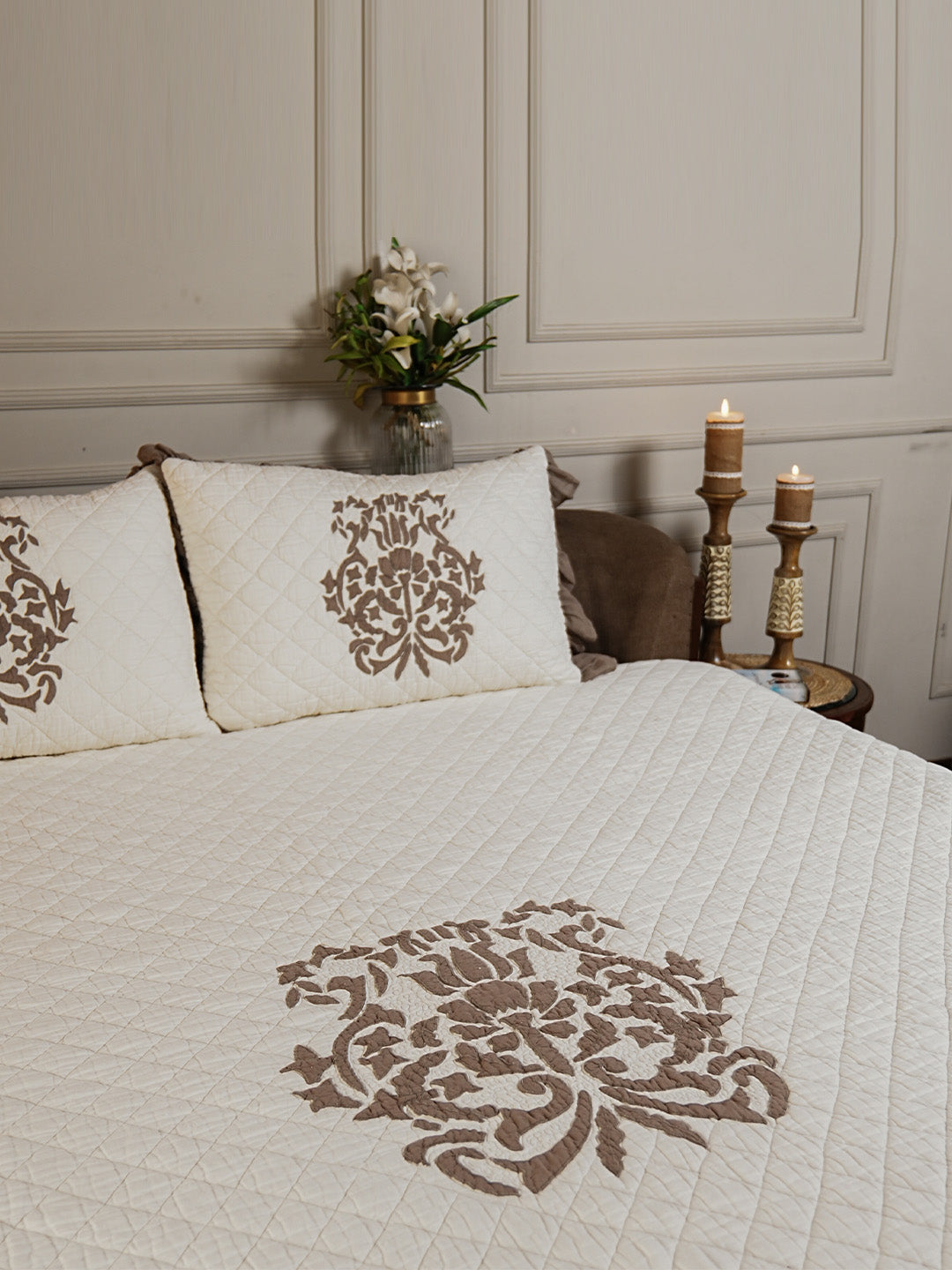 Amara Ornate Medallion Hand-Quilted King Size Bed Spread 100% Linen Cotton