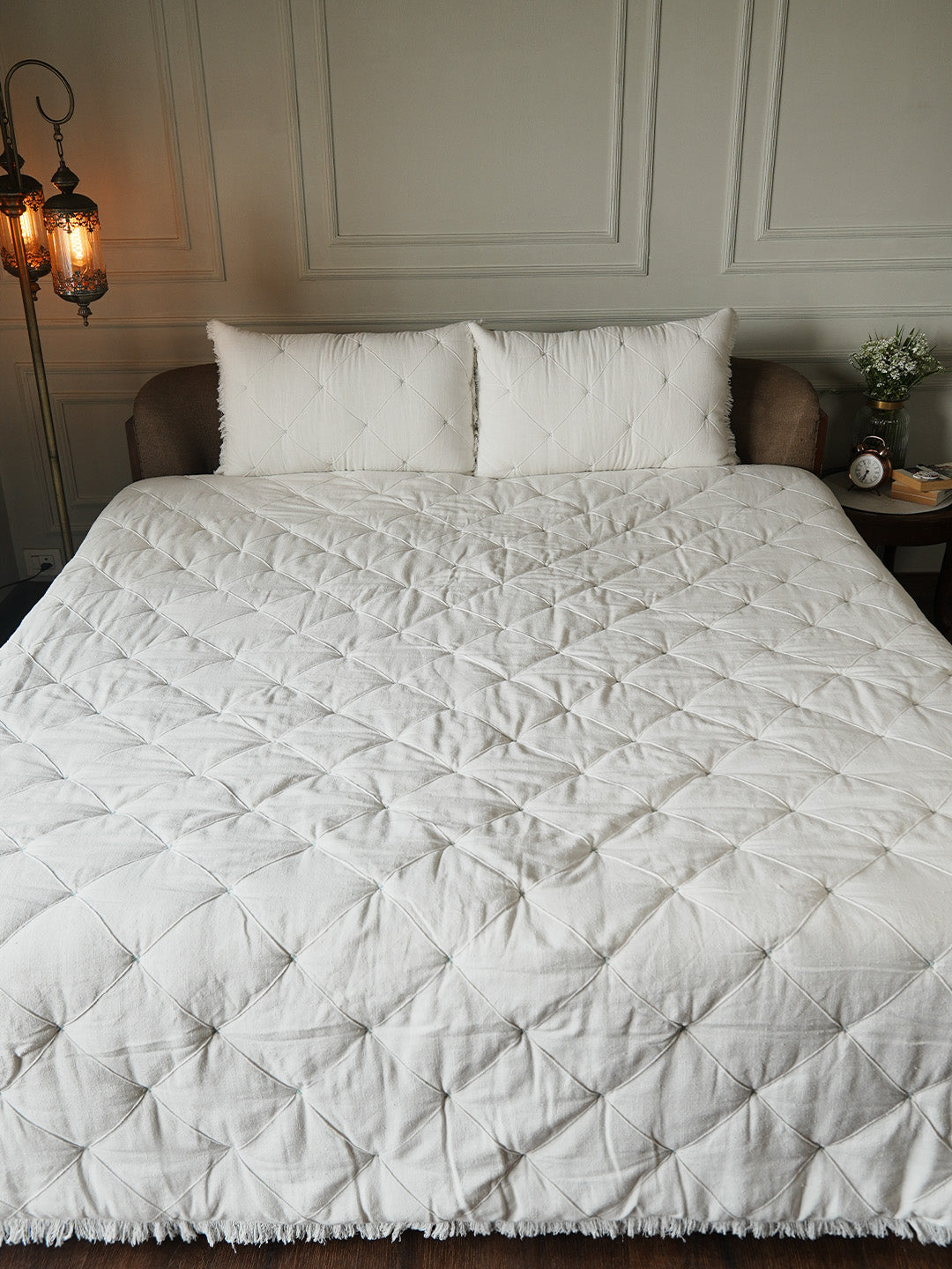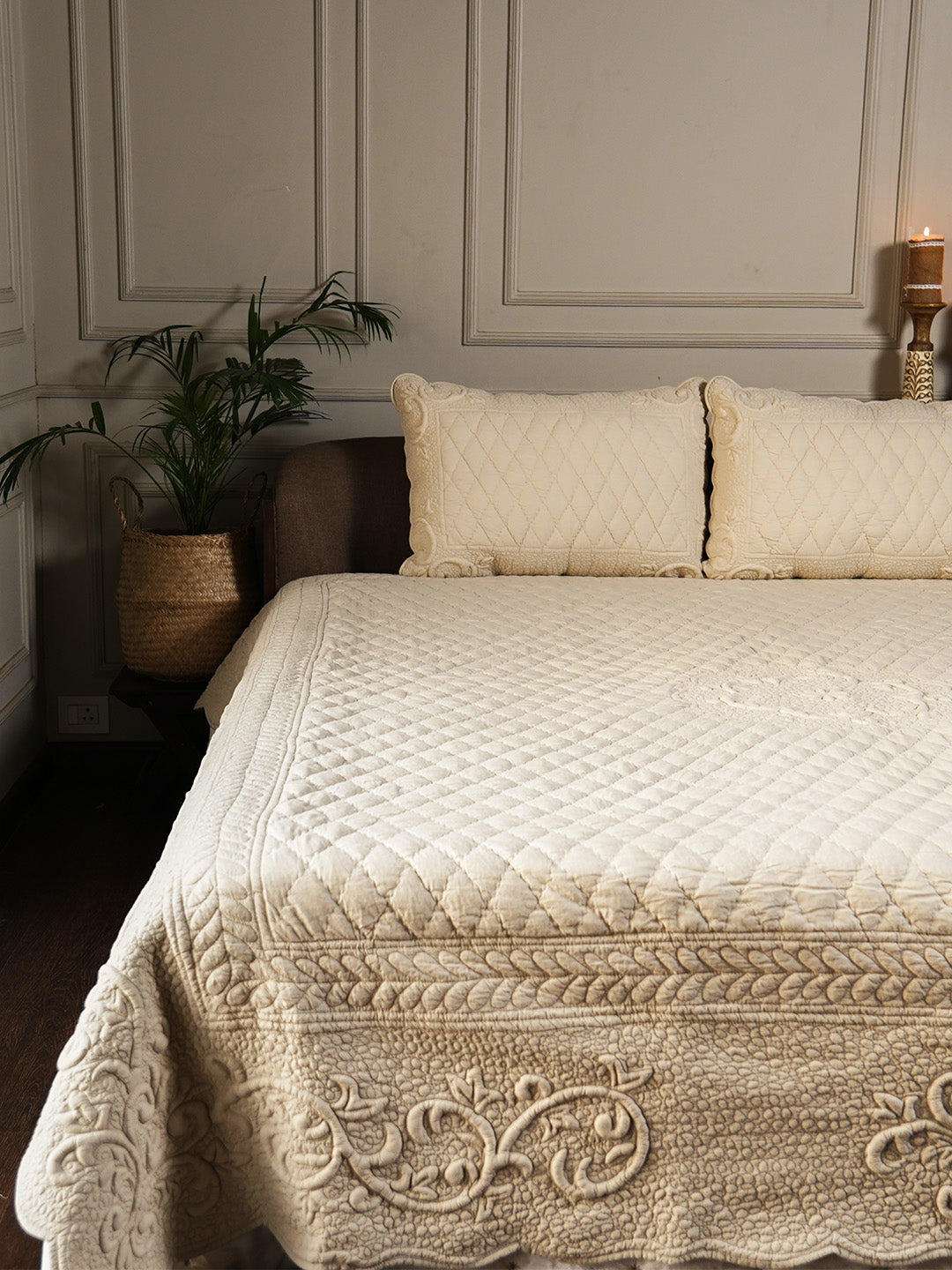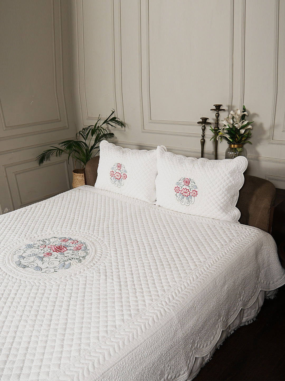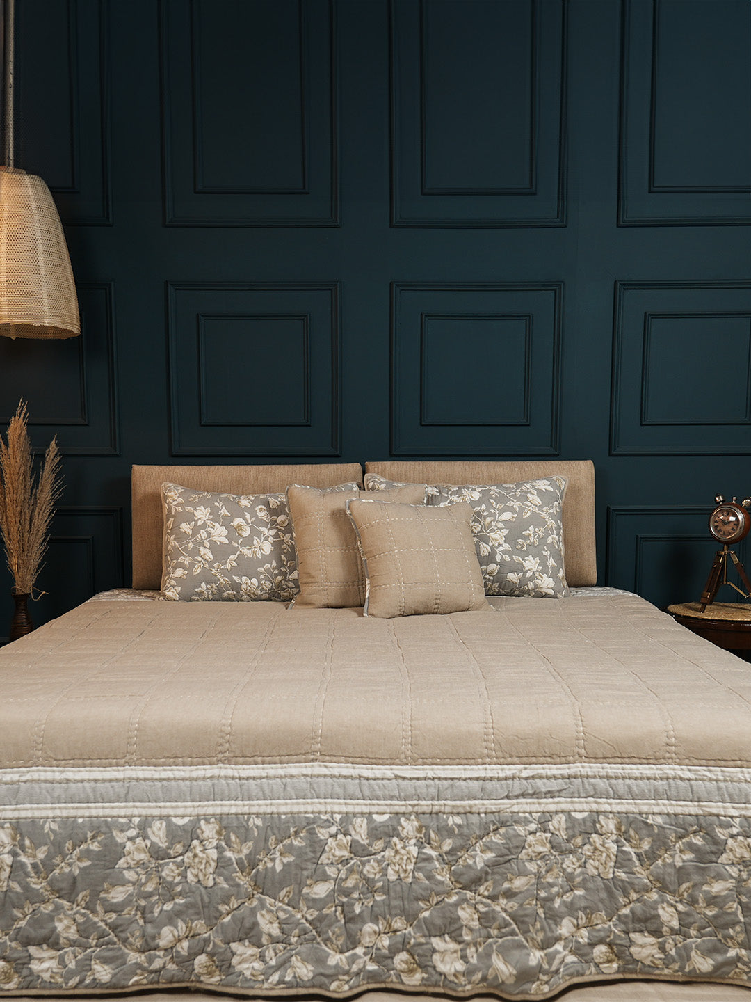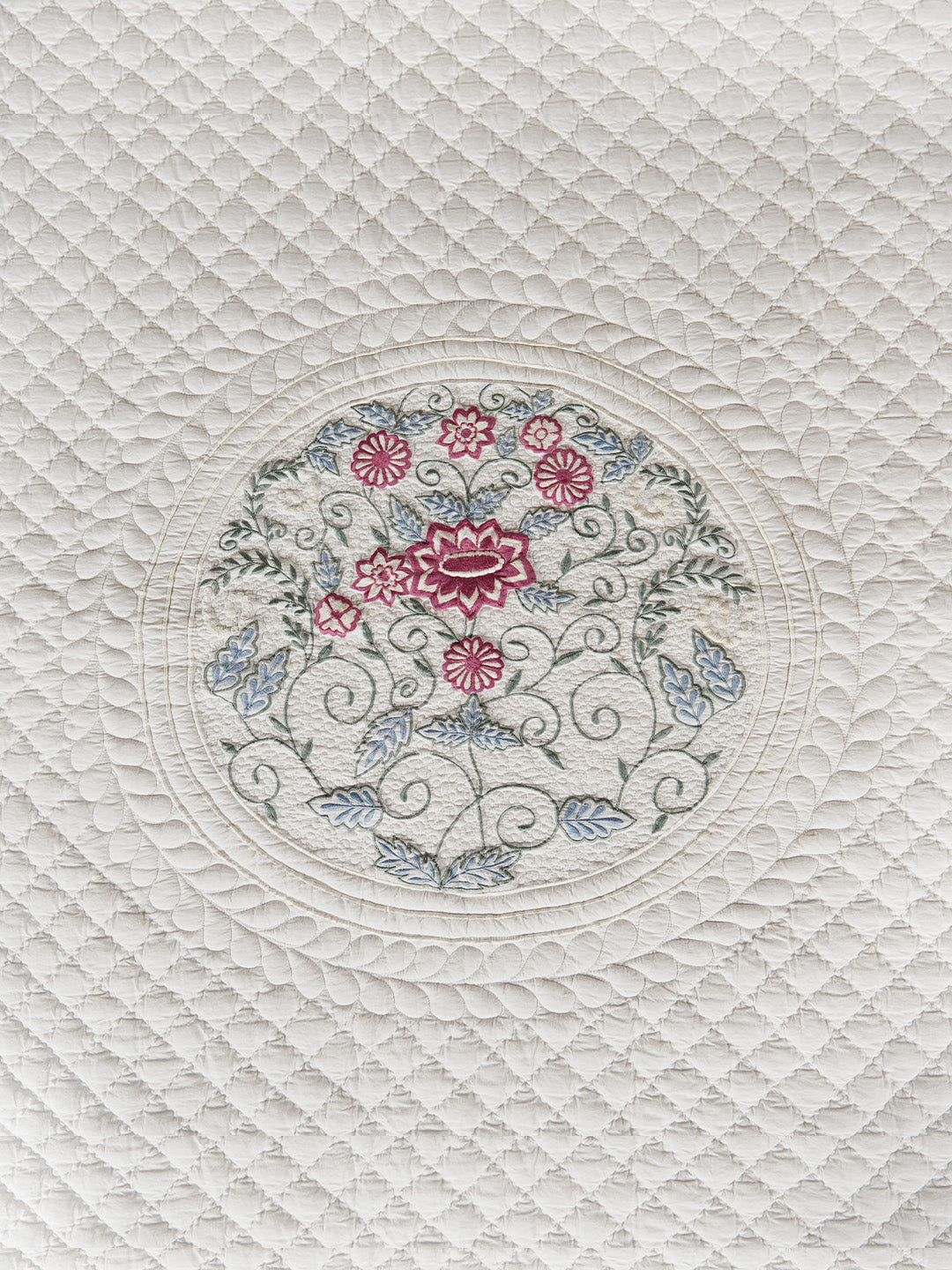 Amara Ornate Medallion Hand-Quilted King Size Bed Spread 100% Linen Cotton