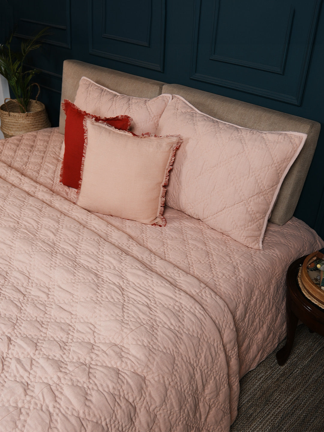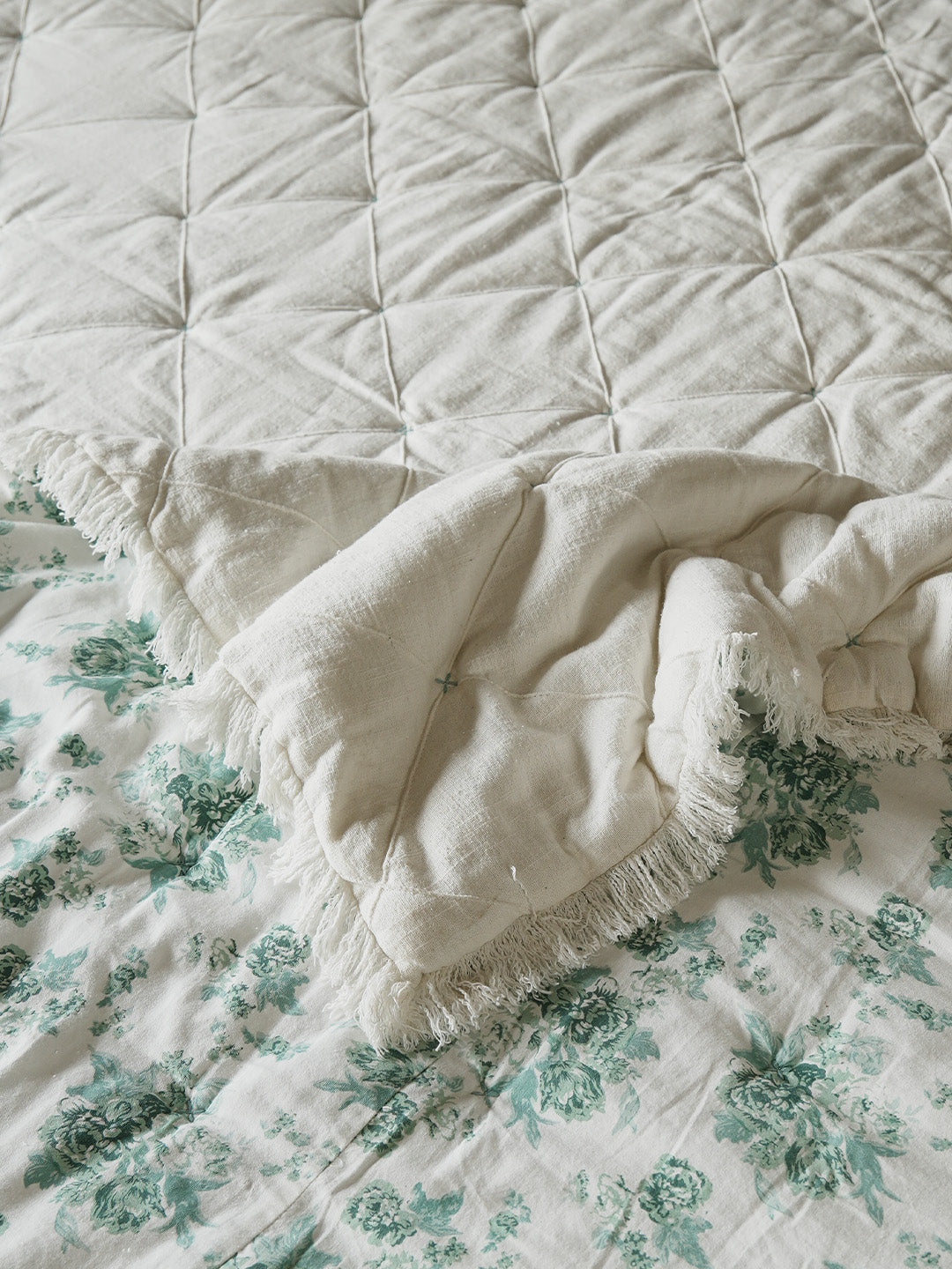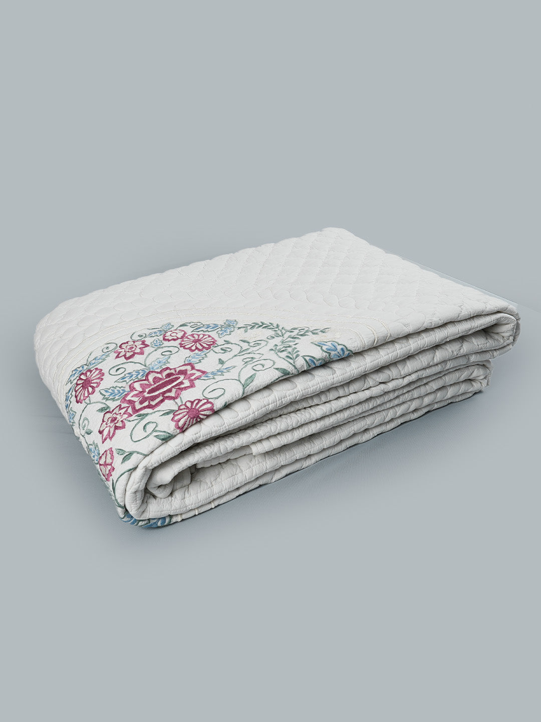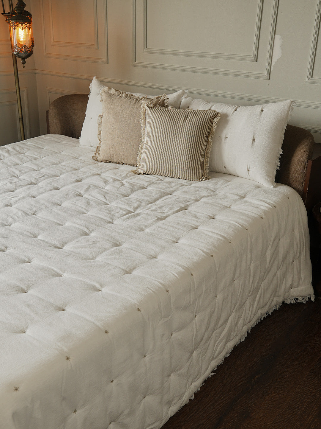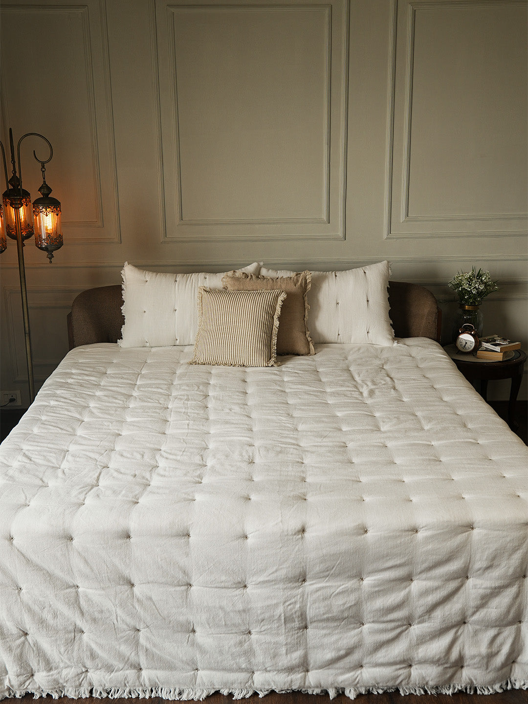 Amara Ornate Medallion Hand-Quilted King Size Bed Spread 100% Linen Cotton