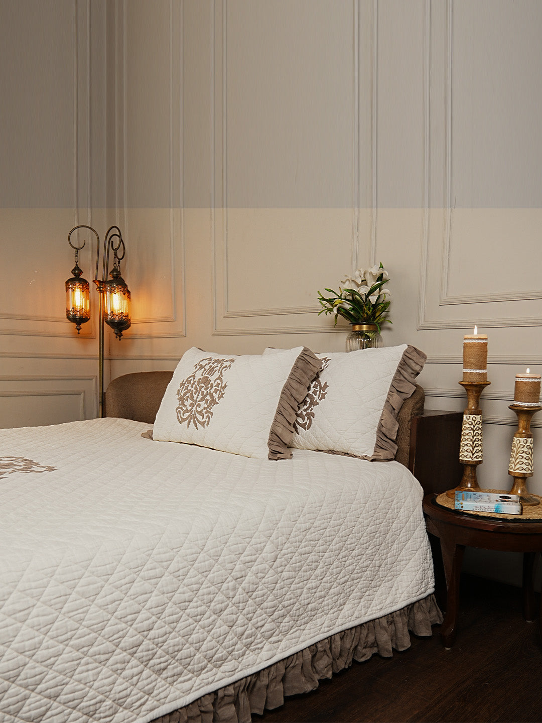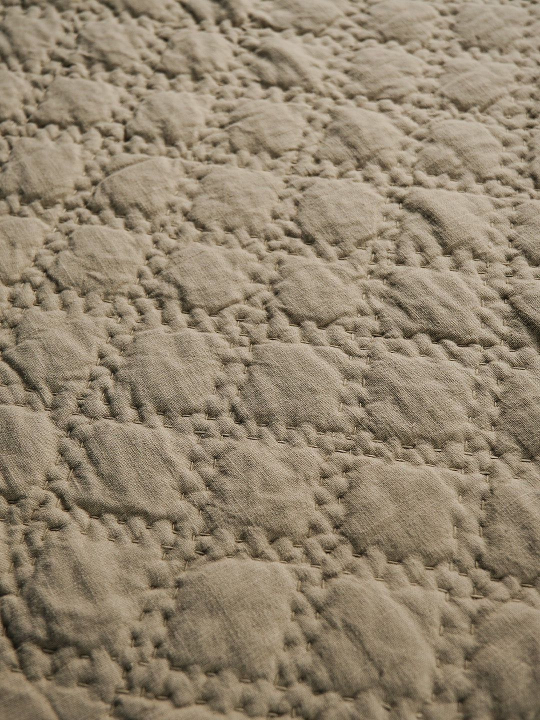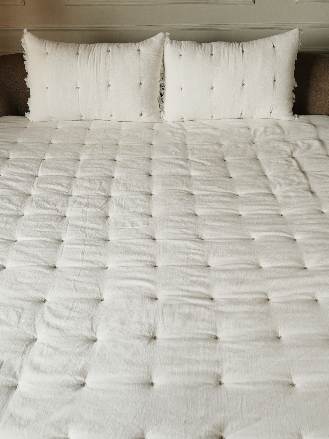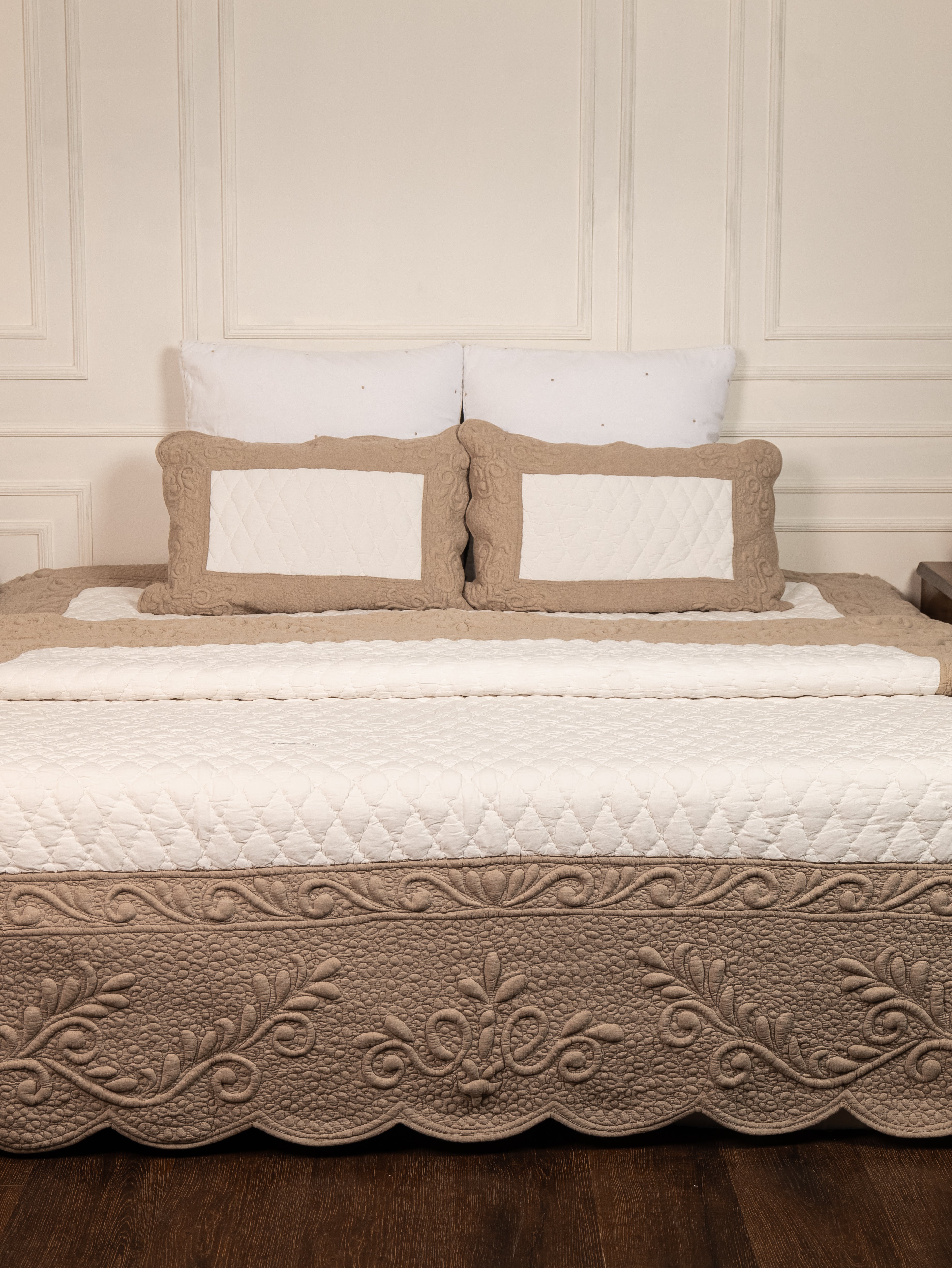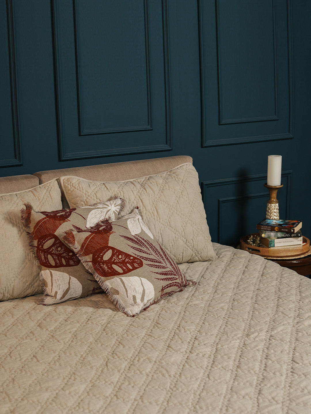 Amara Ornate Medallion Hand-Quilted King Size Bed Spread 100% Linen Cotton