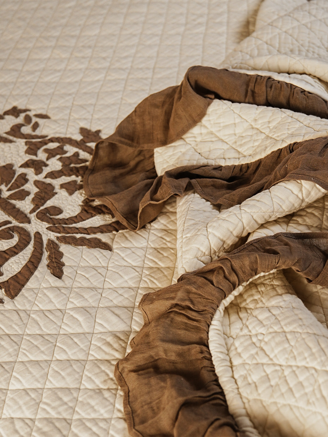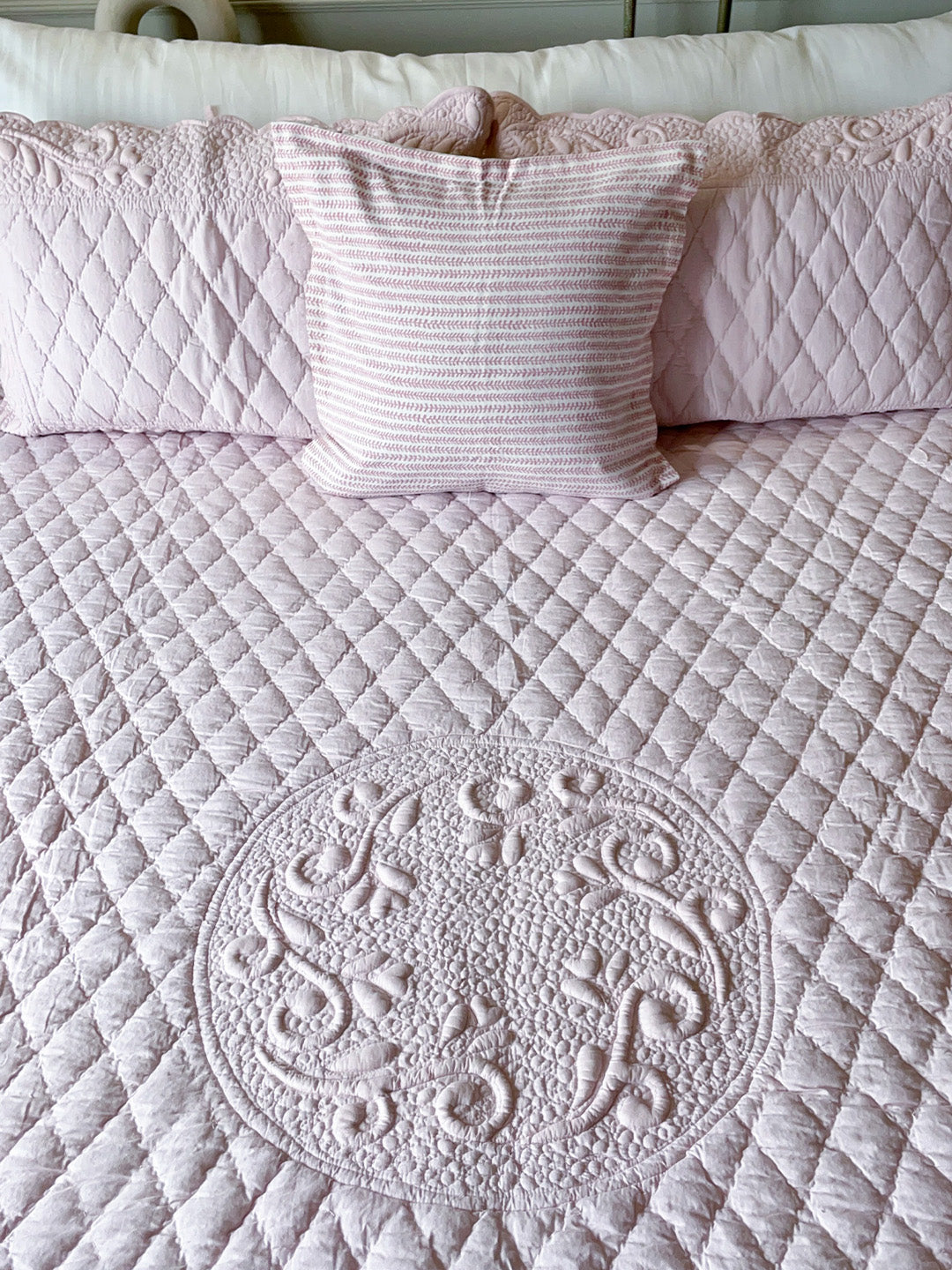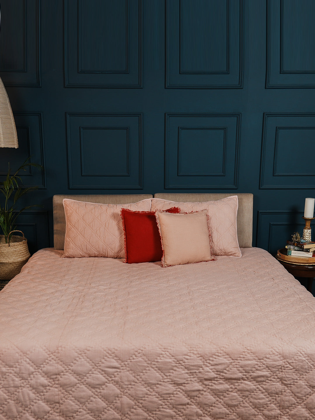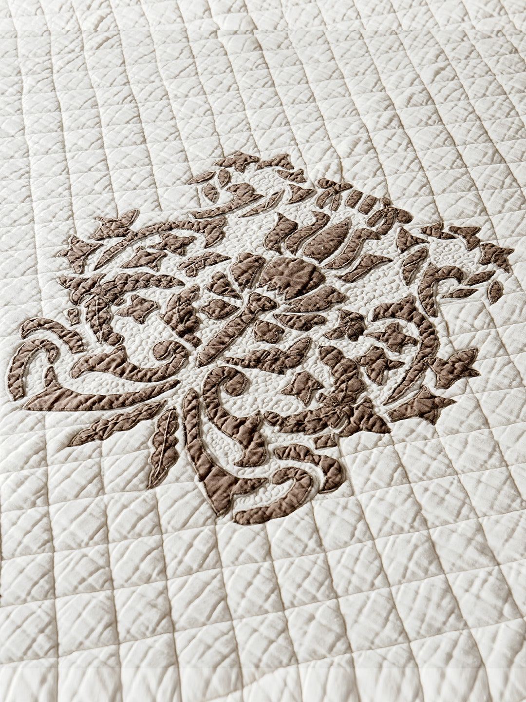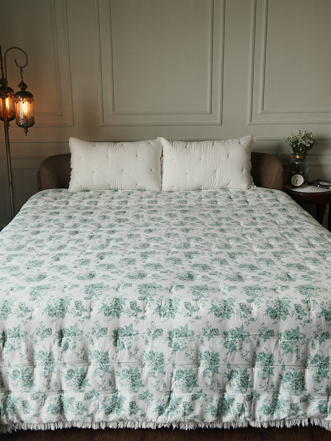 Amara Ornate Medallion Hand-Quilted King Size Bed Spread 100% Linen Cotton