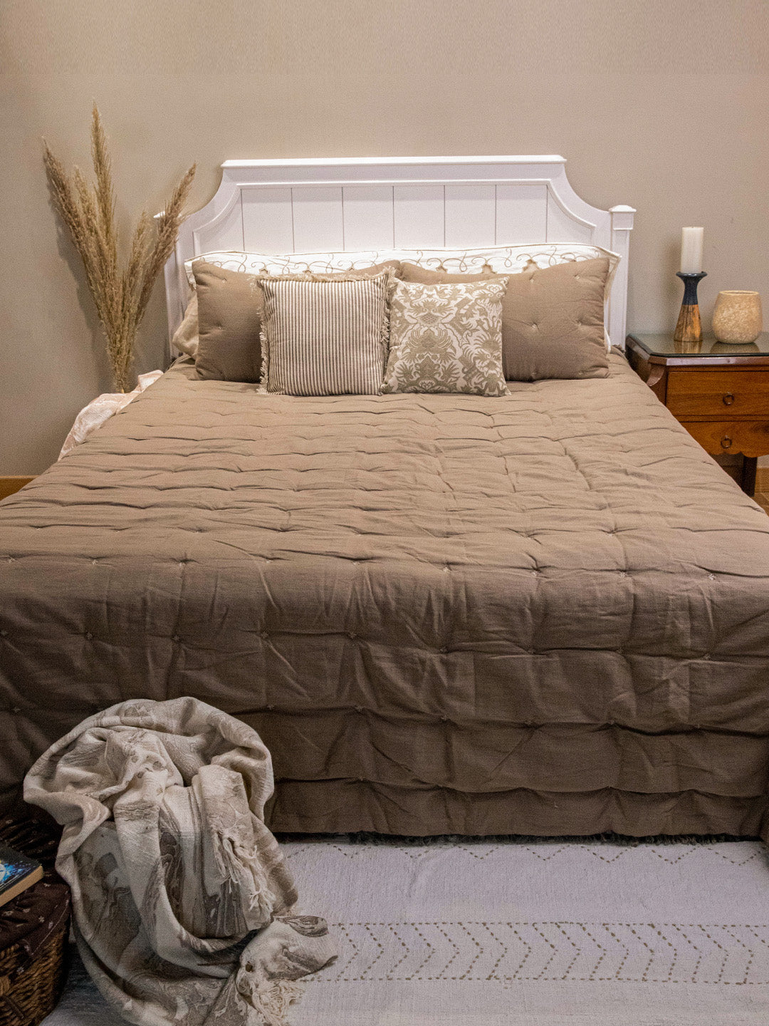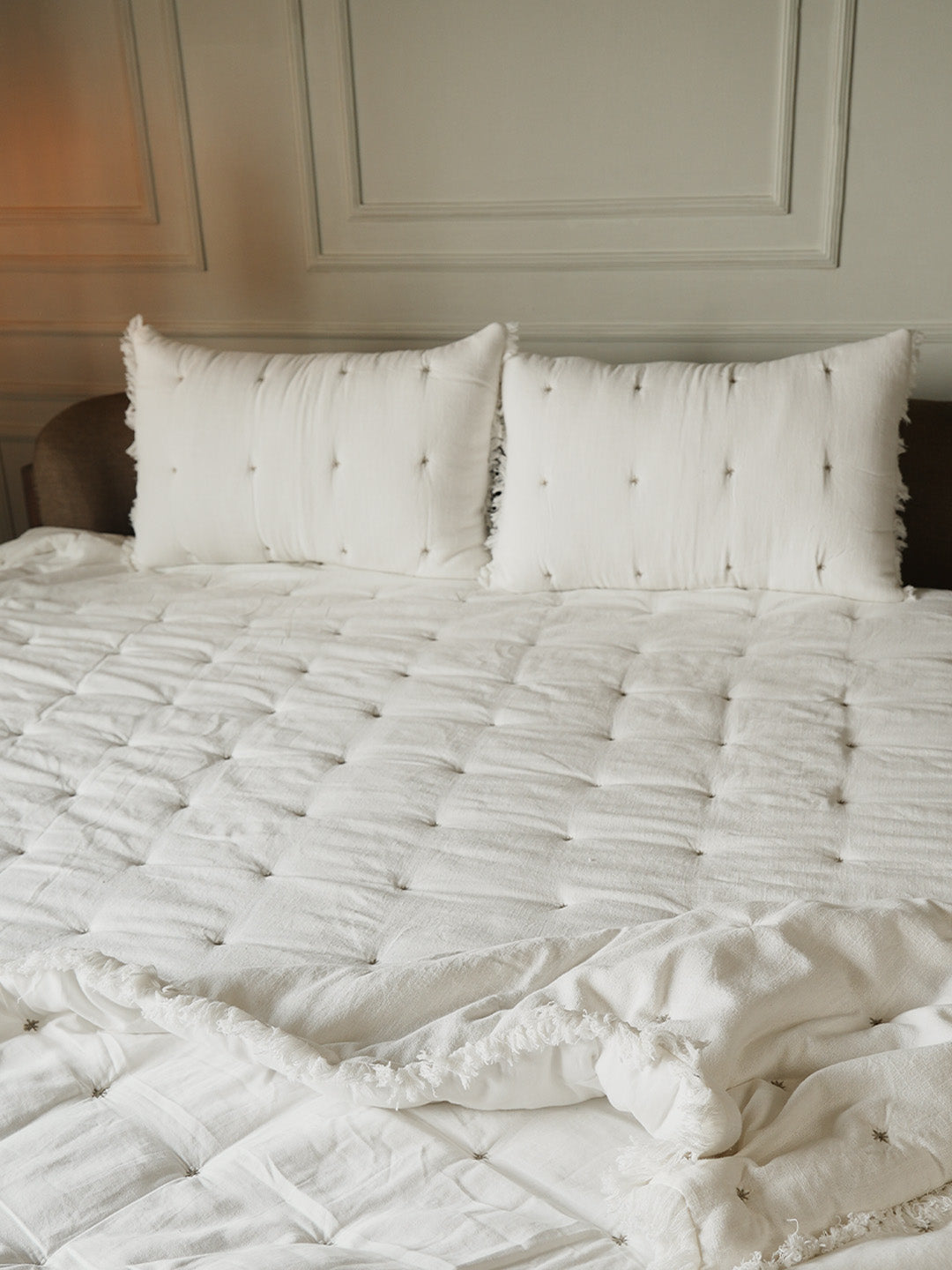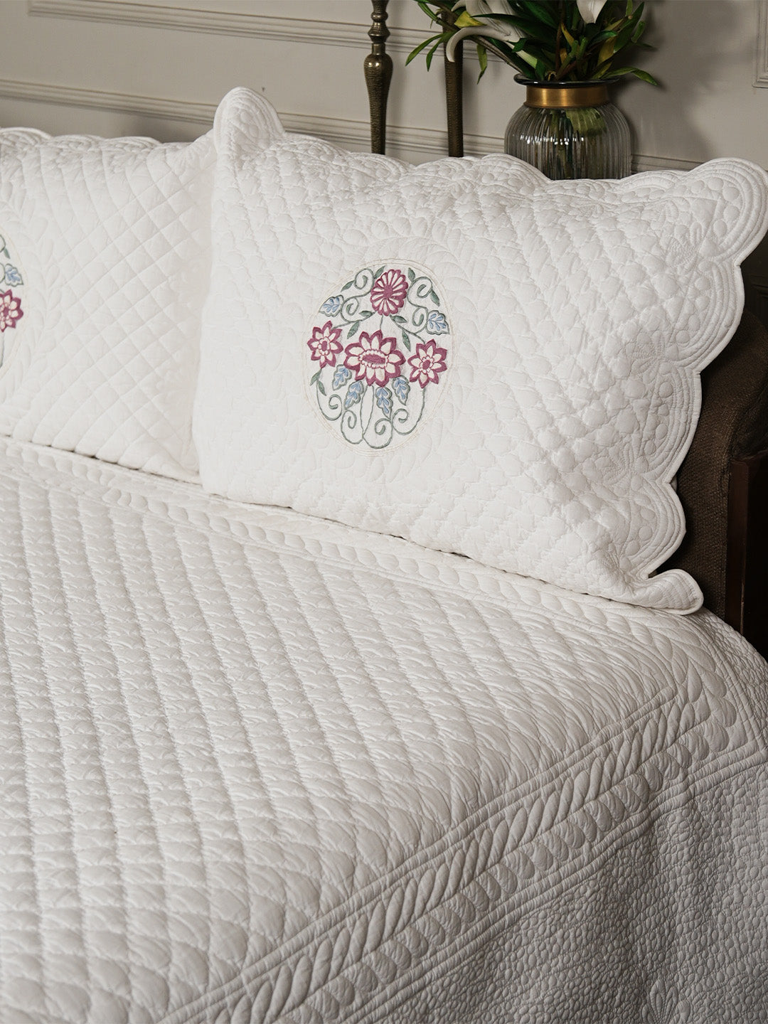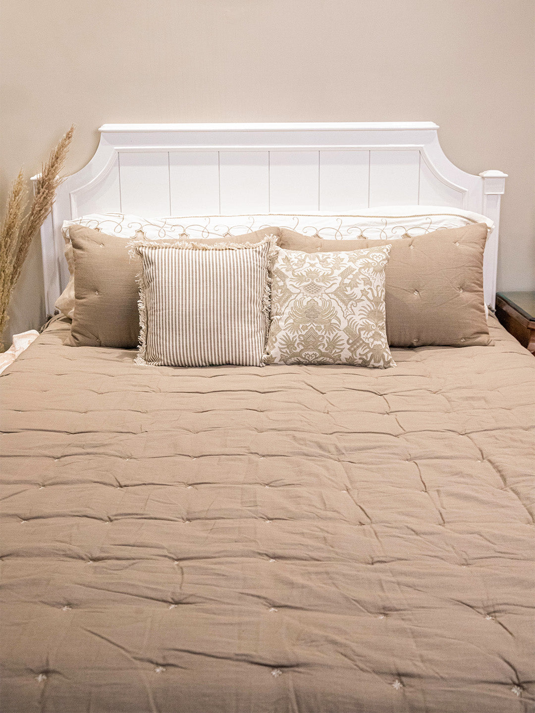 Amara Ornate Medallion Hand-Quilted King Size Bed Spread 100% Linen Cotton
