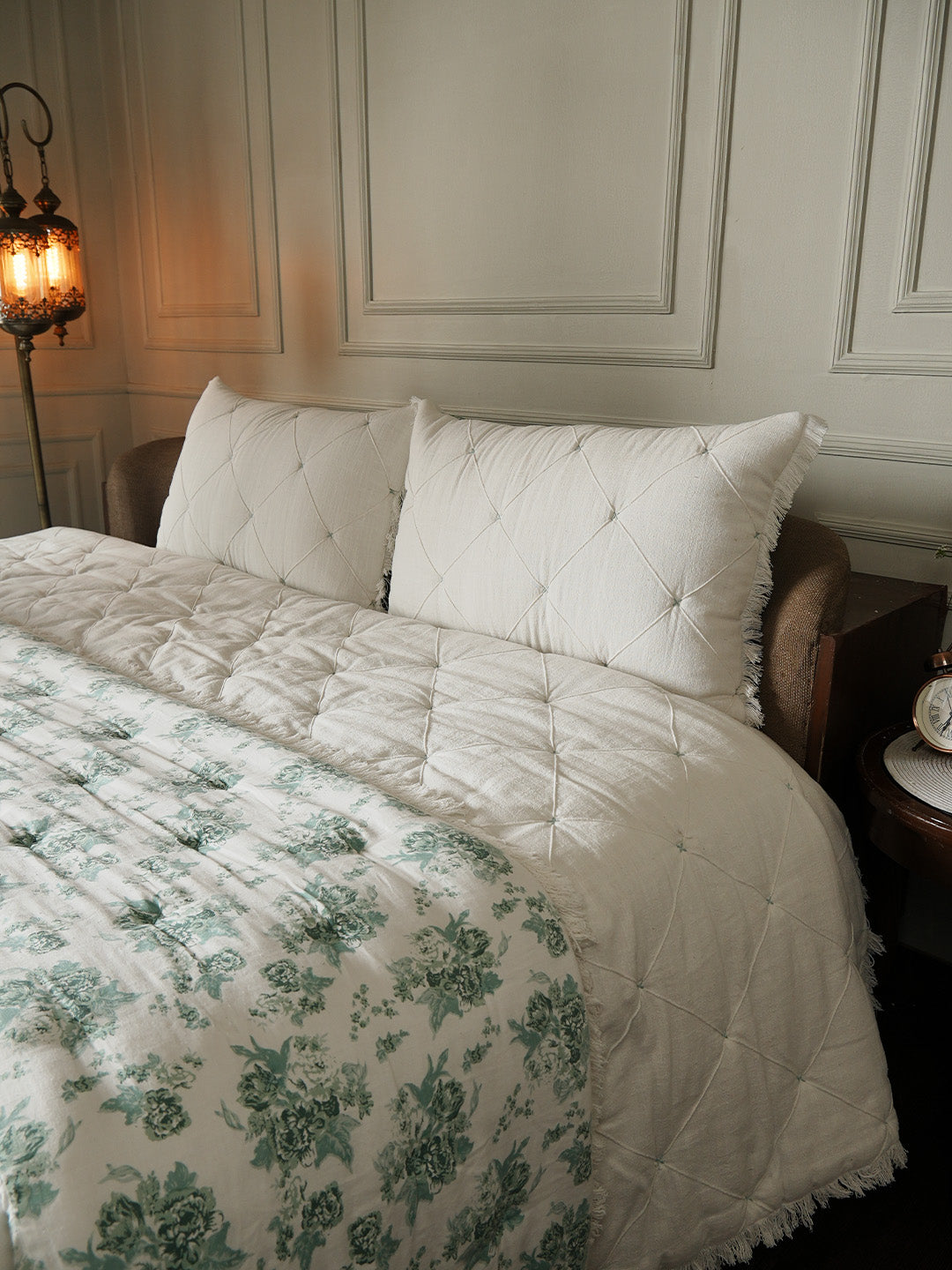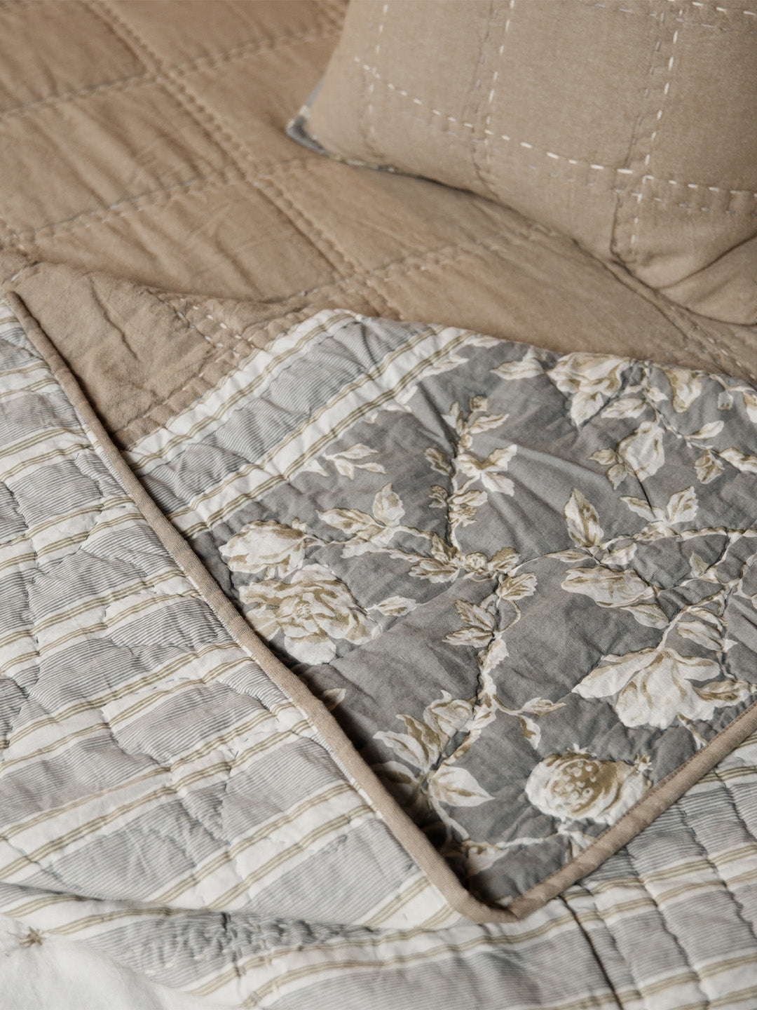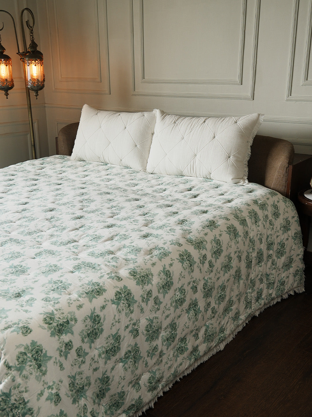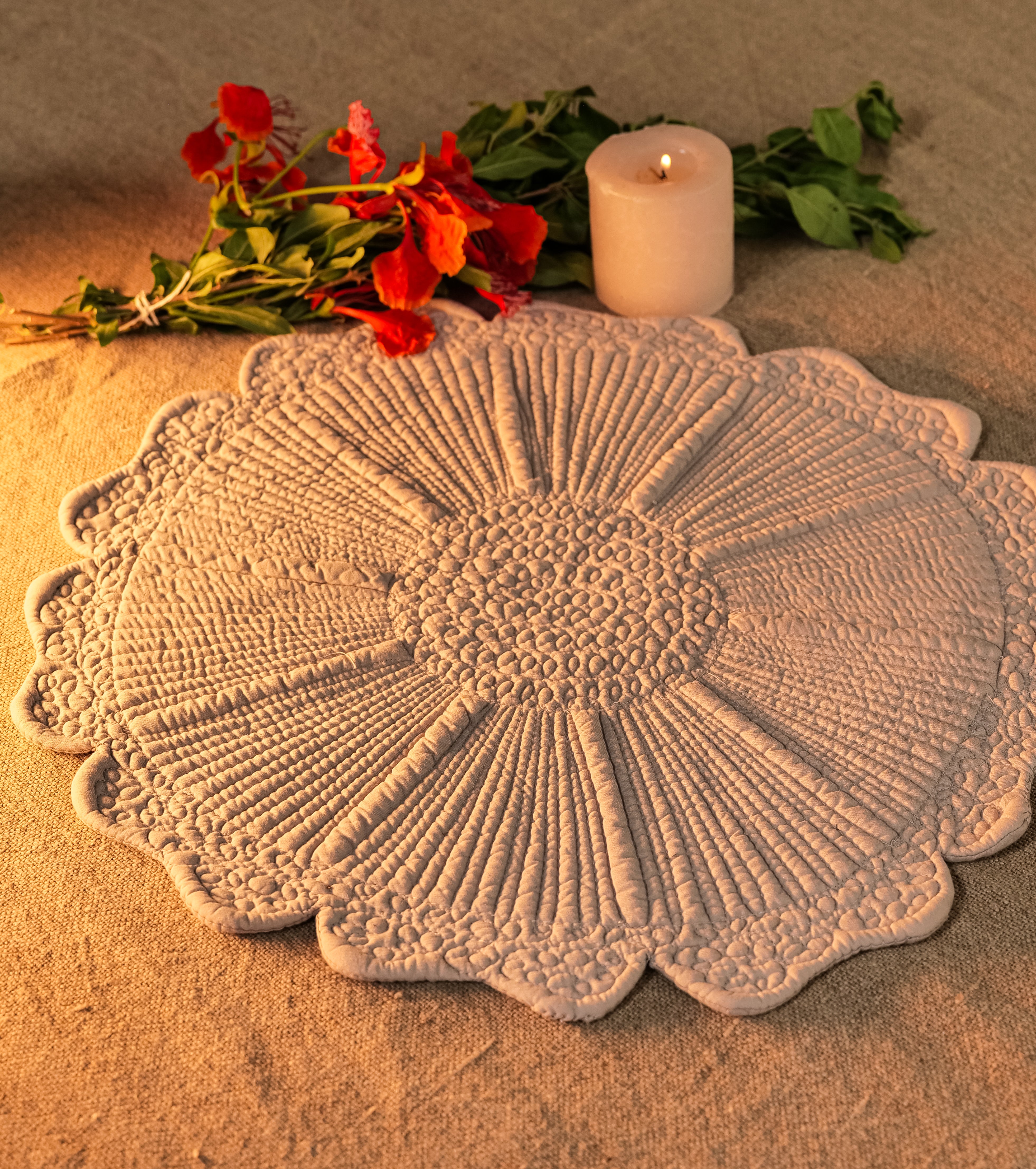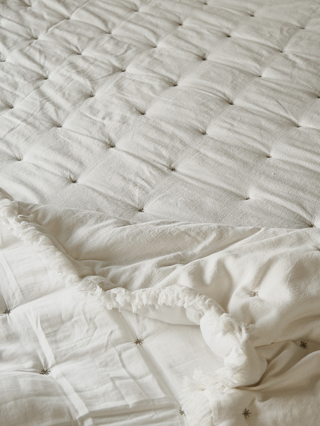 Amara Ornate Medallion Hand-Quilted King Size Bed Spread 100% Linen Cotton