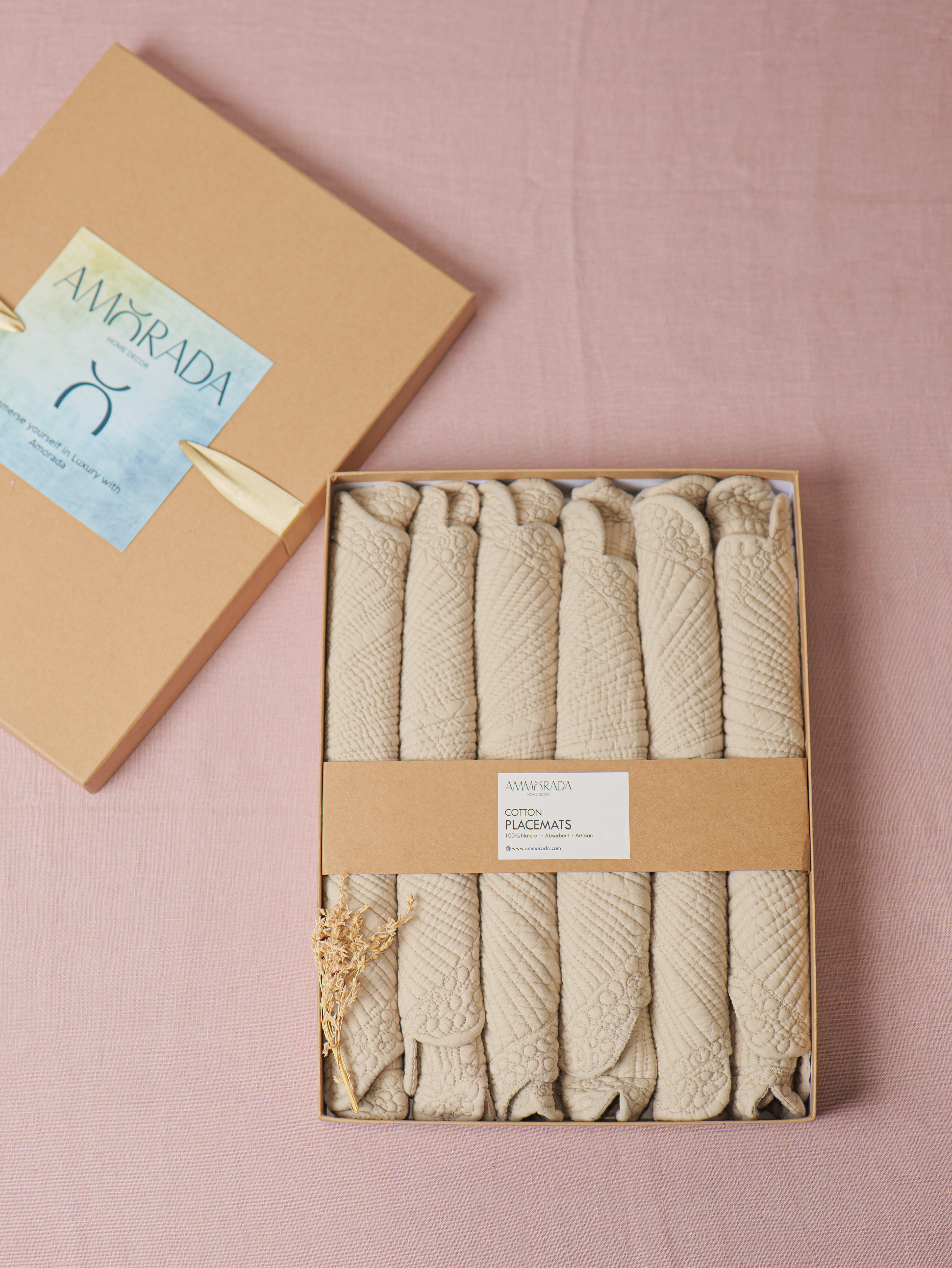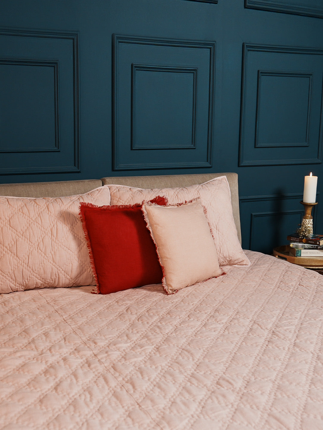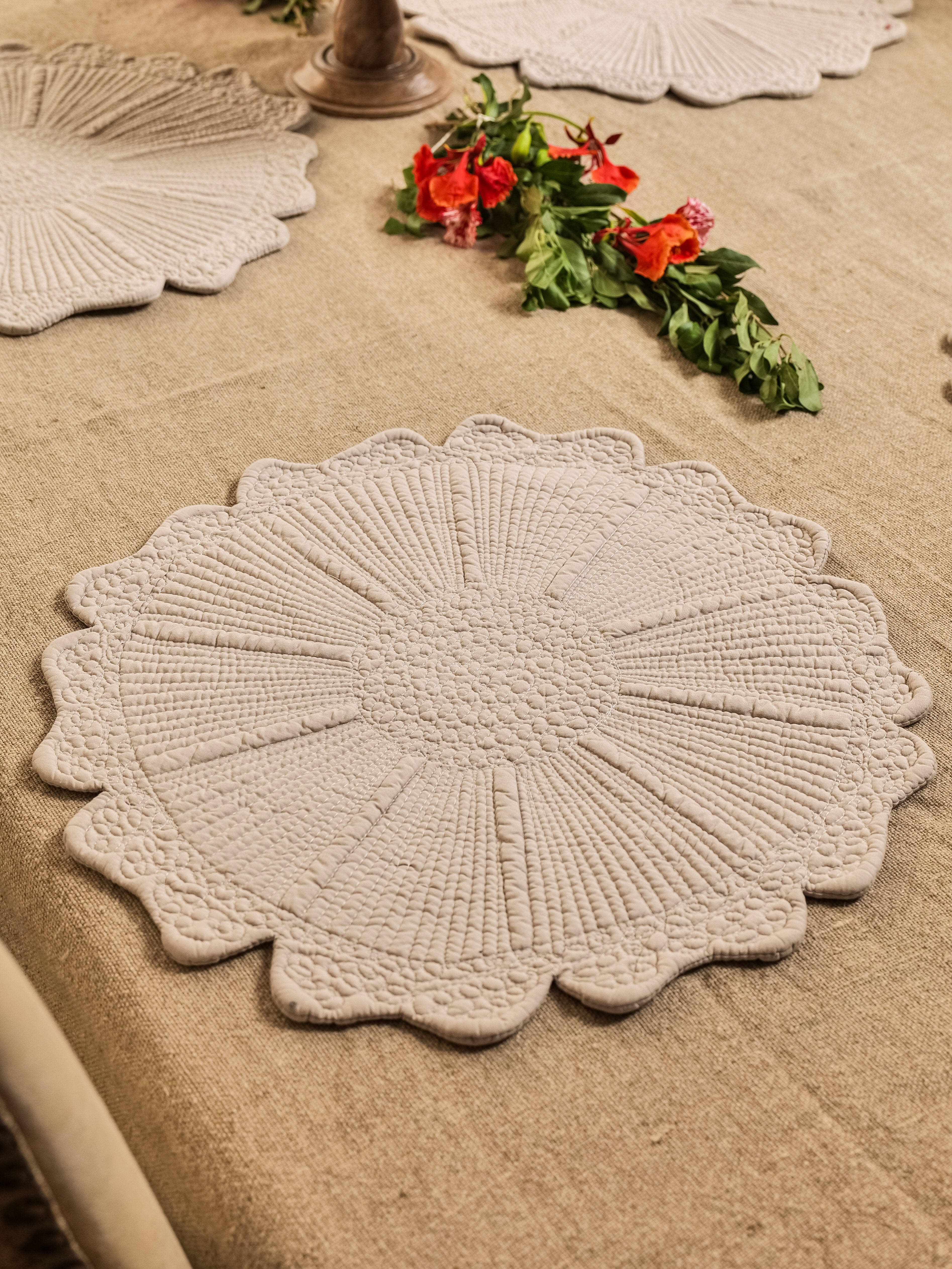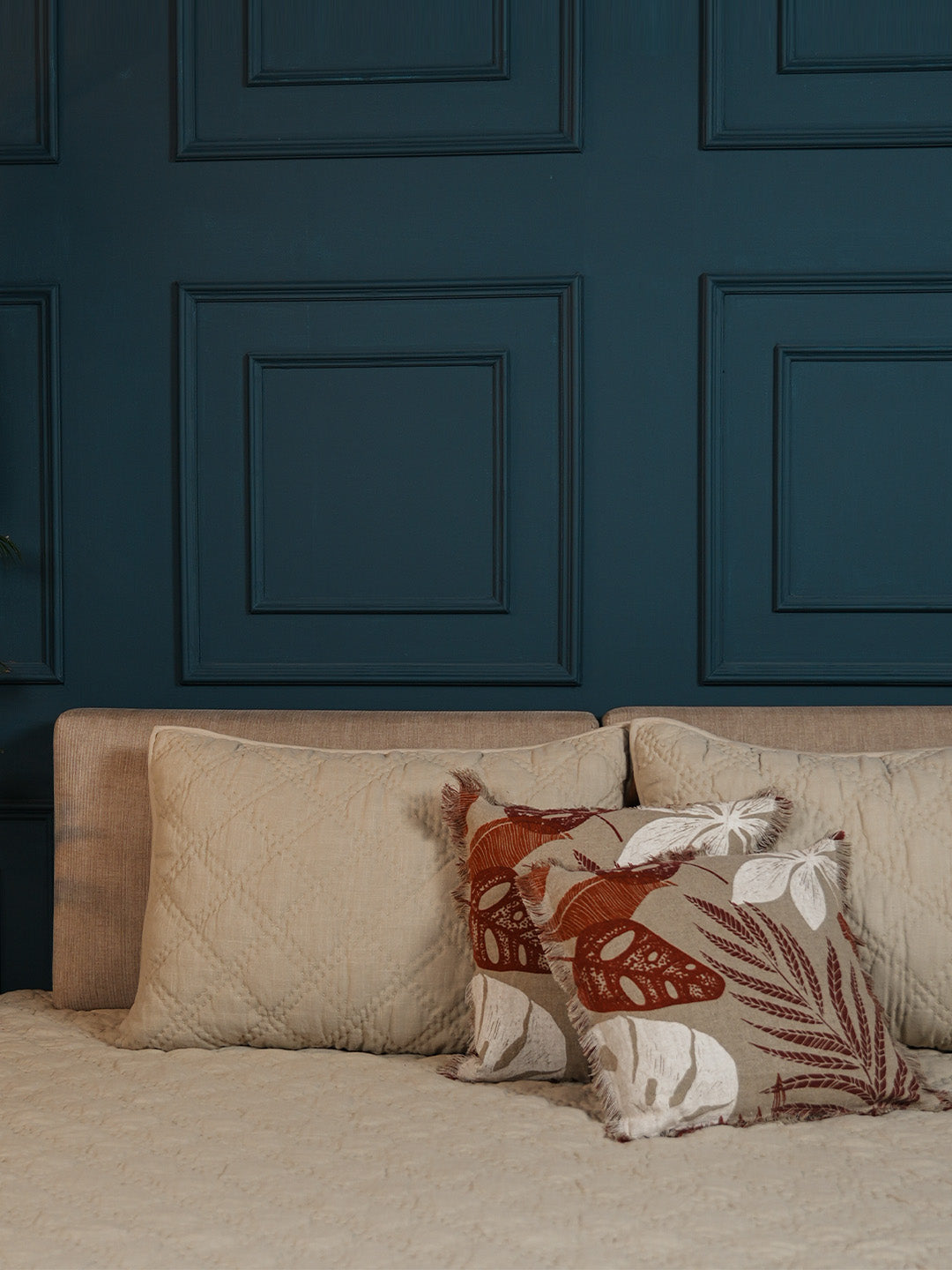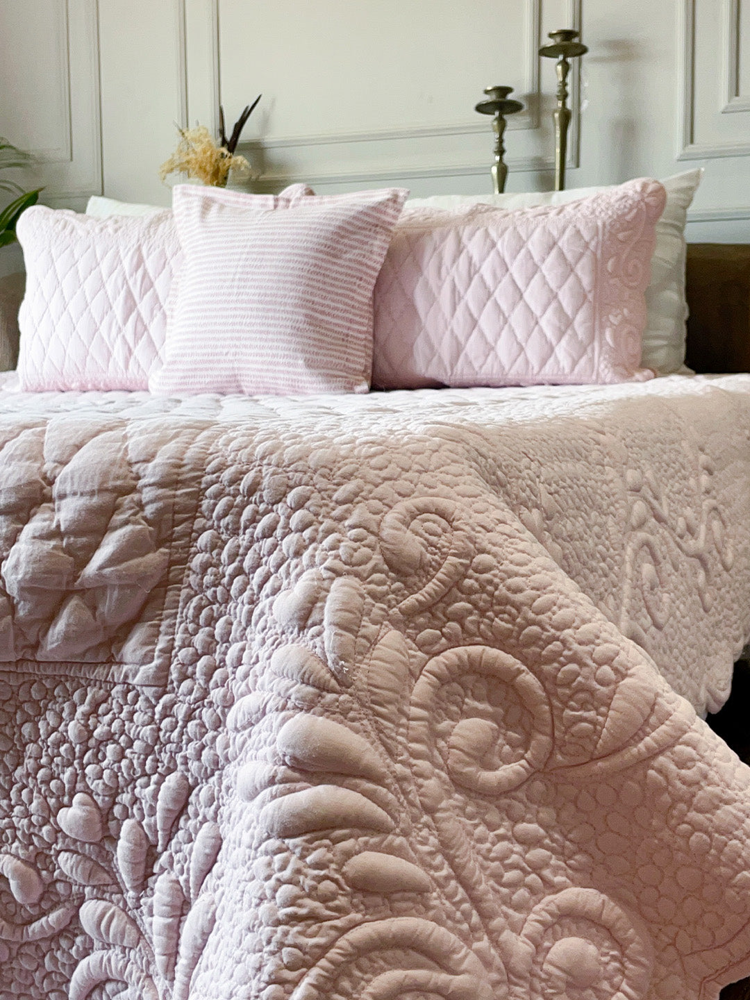 Amara Ornate Medallion Hand-Quilted King Size Bed Spread 100% Linen Cotton
