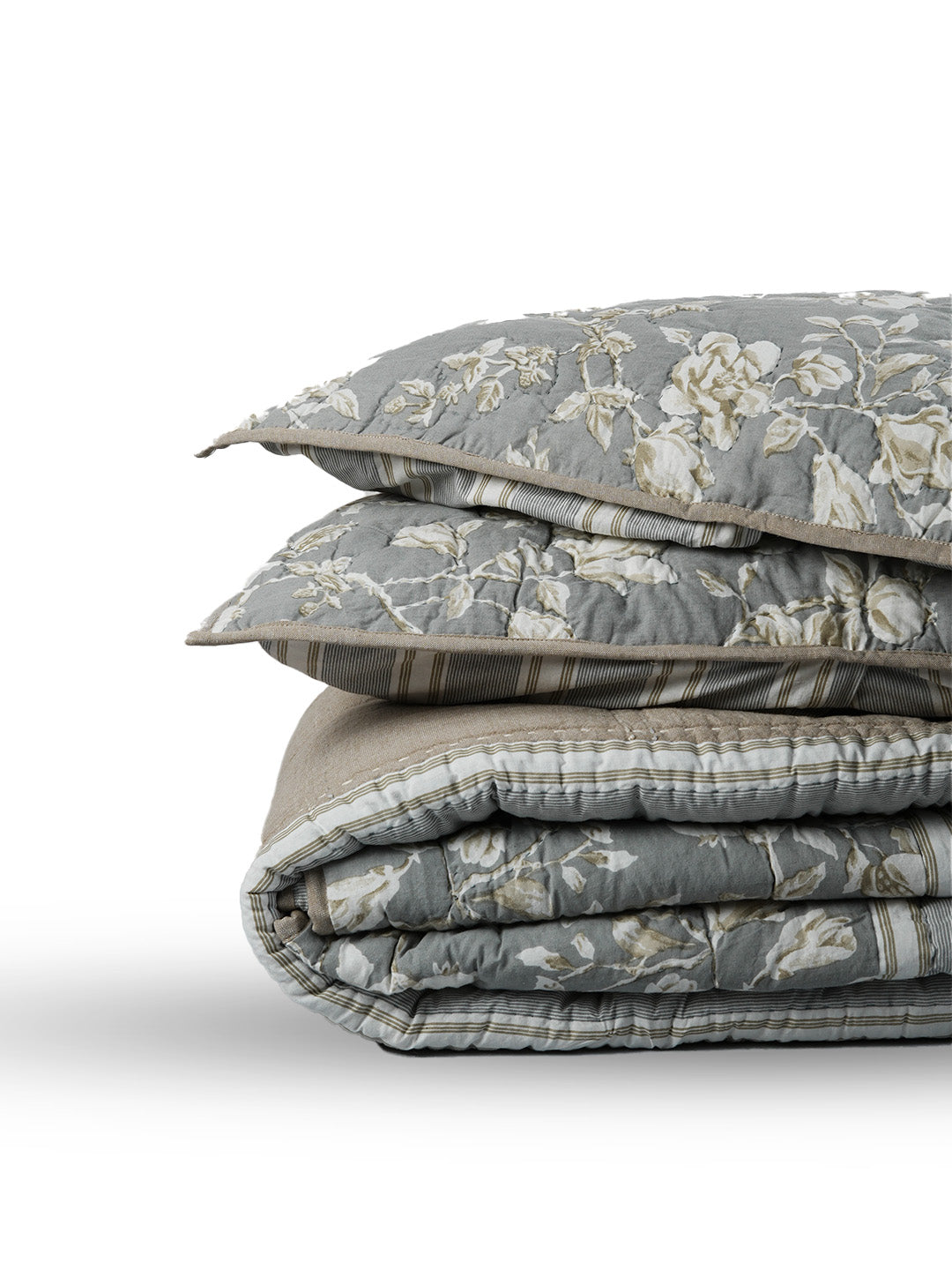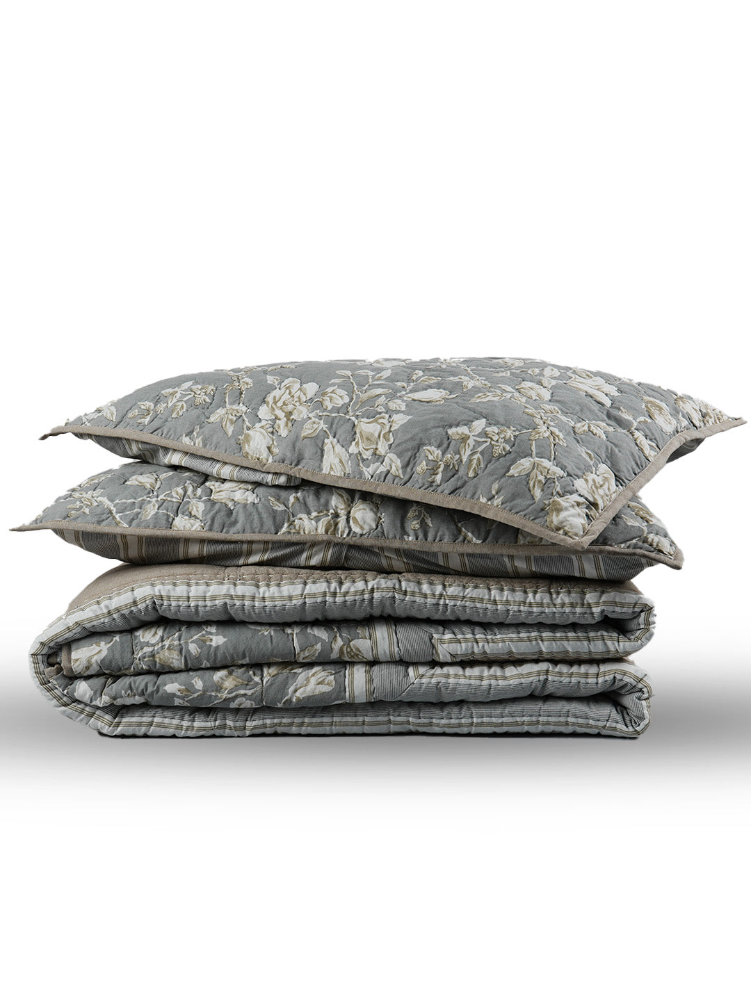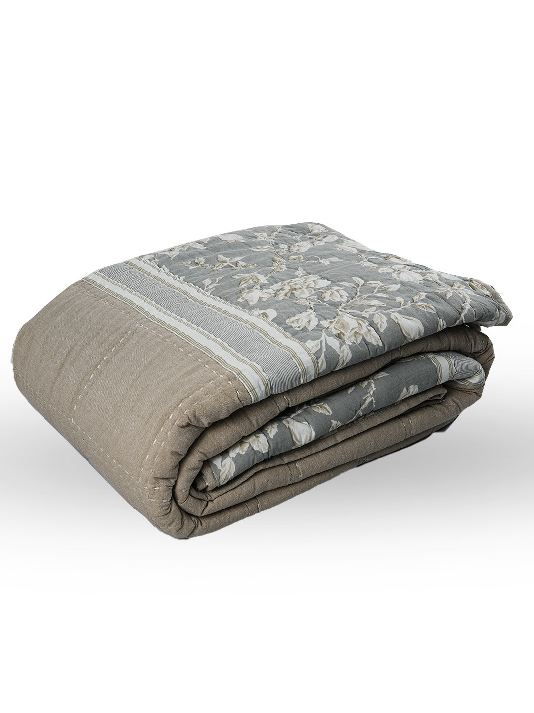 "Refresh your bedroom with the AMORADA Viana Bed Spread, a king-size piece crafted from border & back poplyene & center shambray cotton fabric for a soft, comfortable feel. Measuring 260 x 240 cm, this reversible bed spread features a beautiful floral print on one side and a stripe pattern on the reverse, with fine hand channel line work throughout the center piece. Filled with 100 GSM hypoallergenic filling, it offers a lightweight yet plush finish.