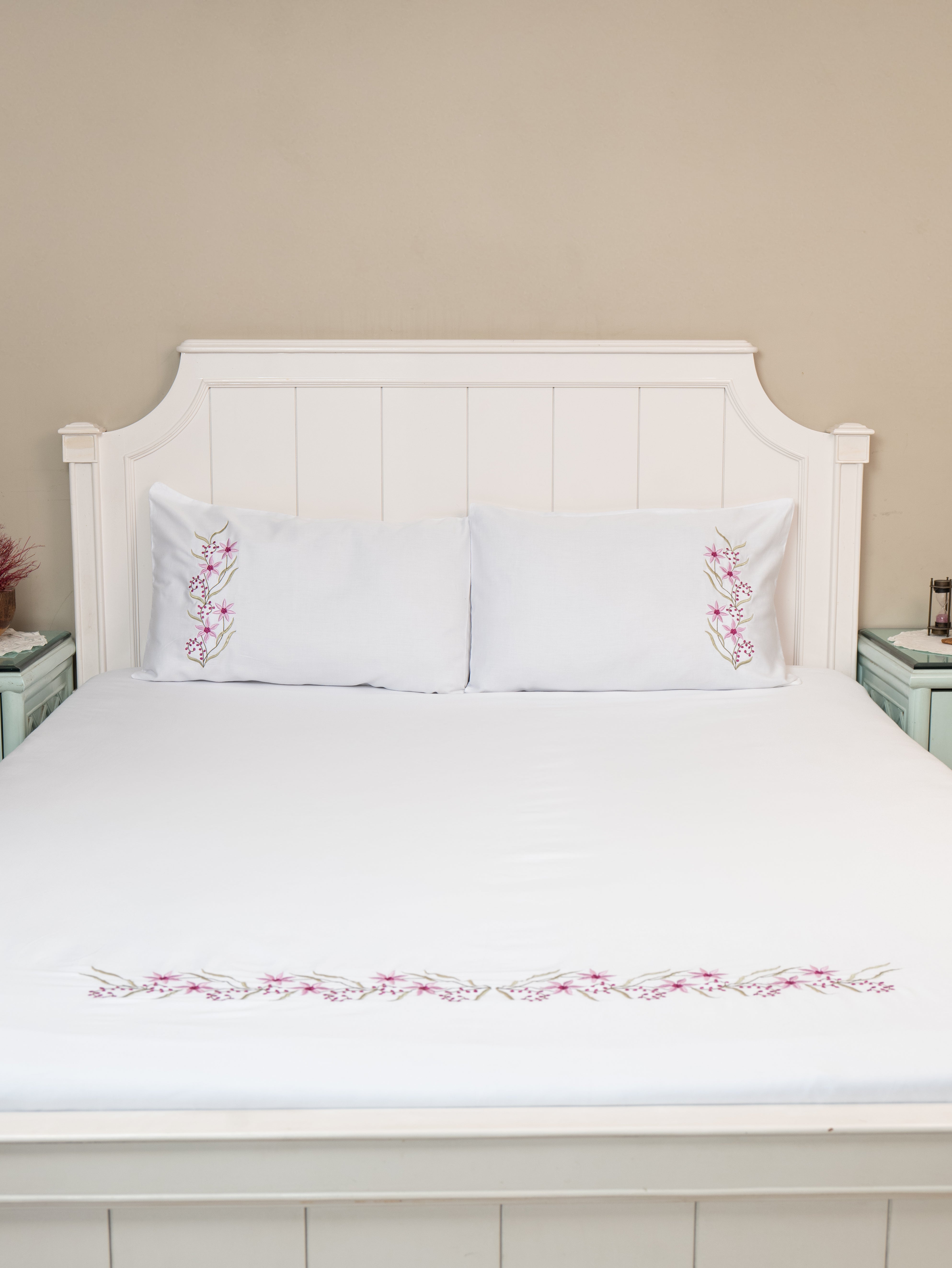 Complete Set: Includes one embroidered bed sheet and two matching pillow covers