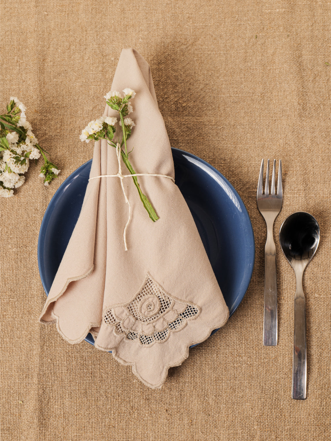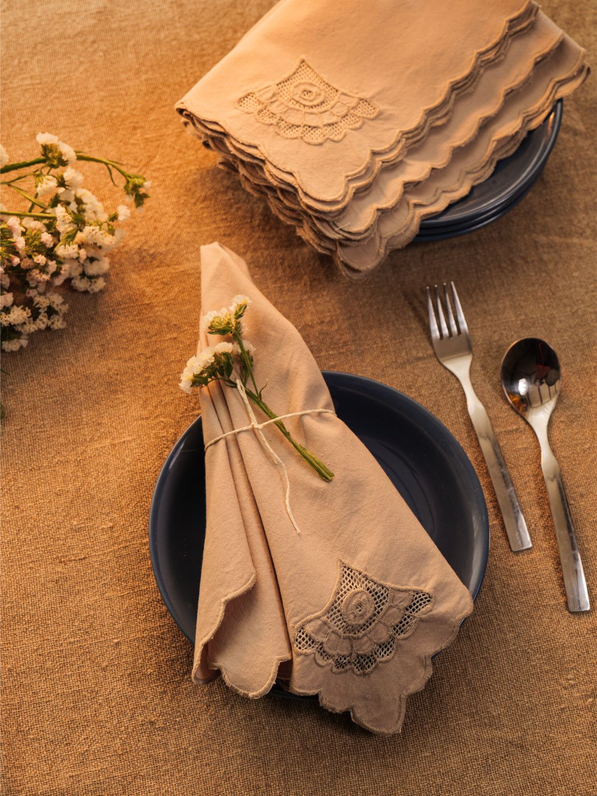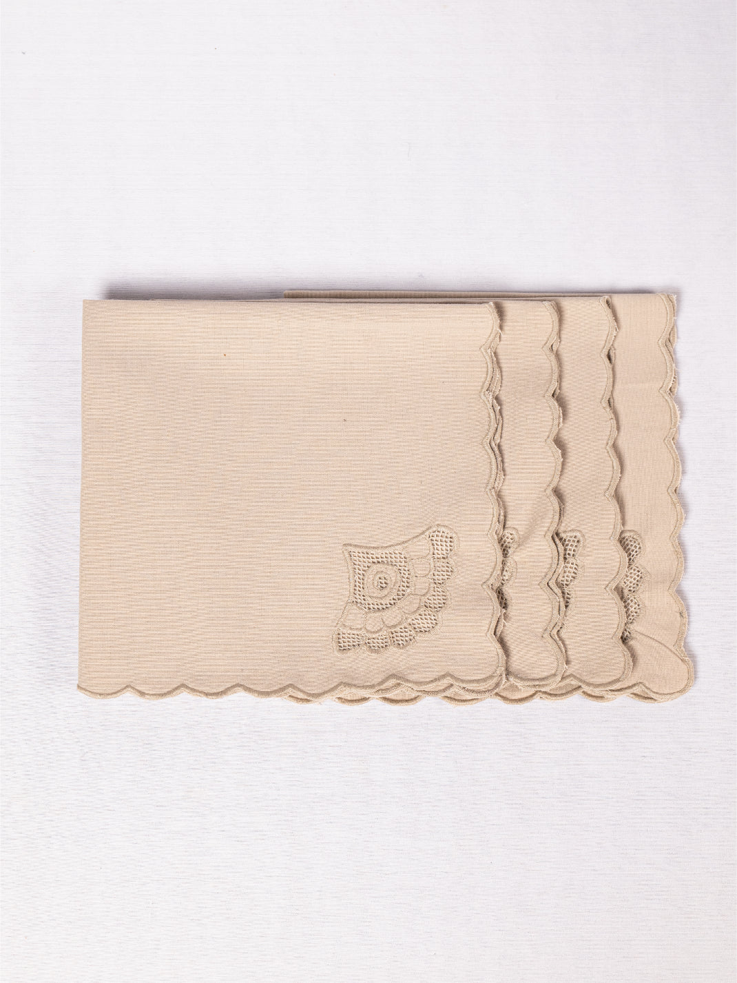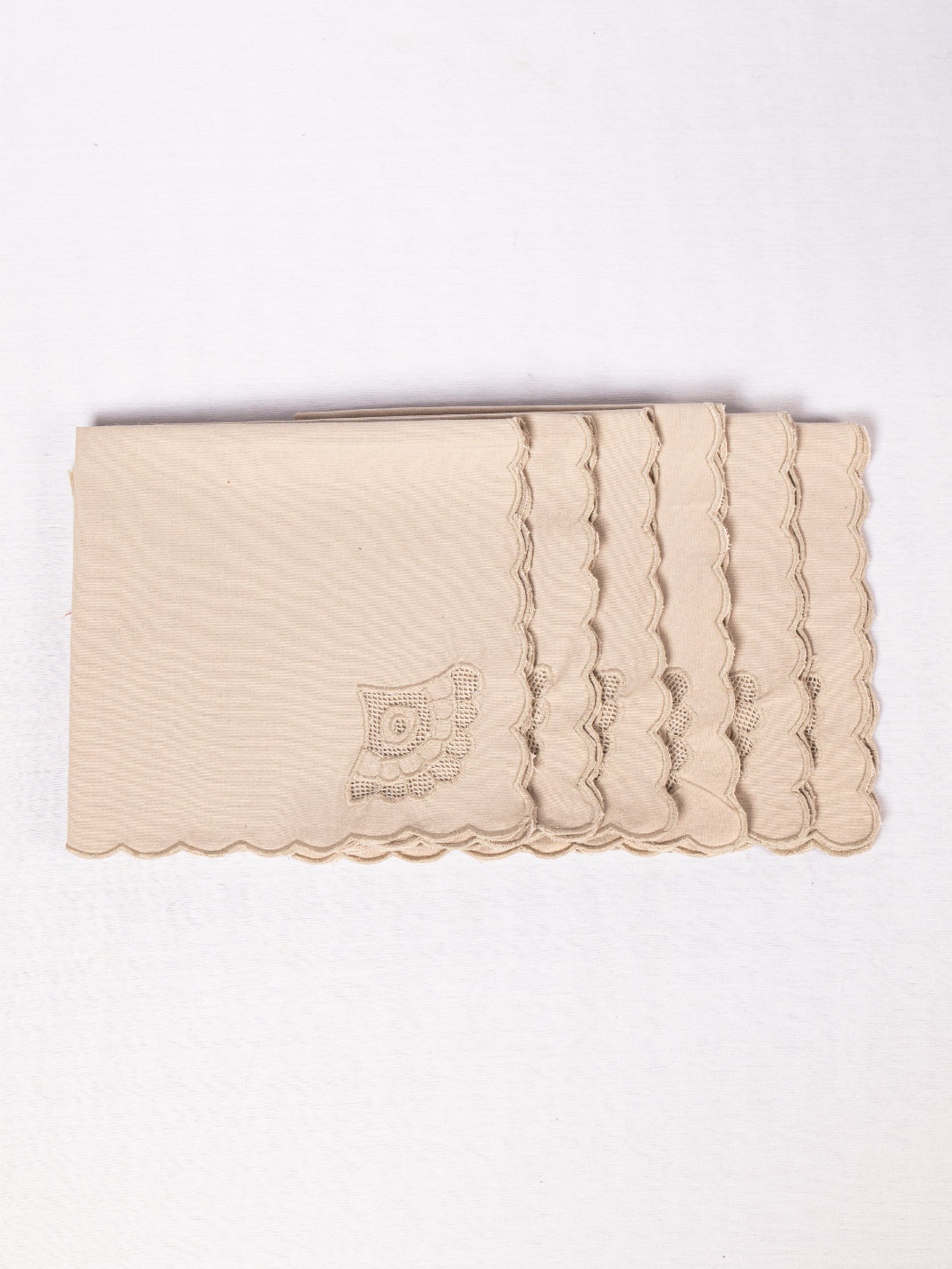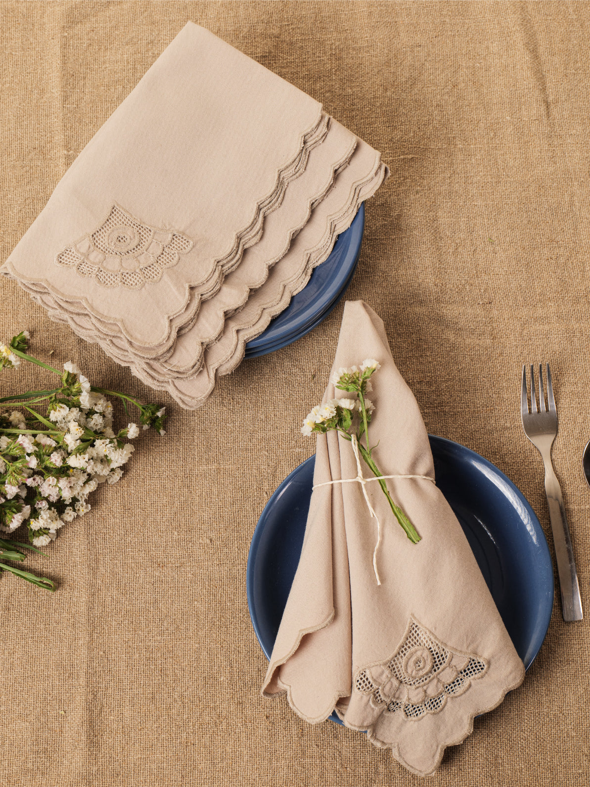 Old Charm Cotton Hand-Cut Work Napkin Set - Beige