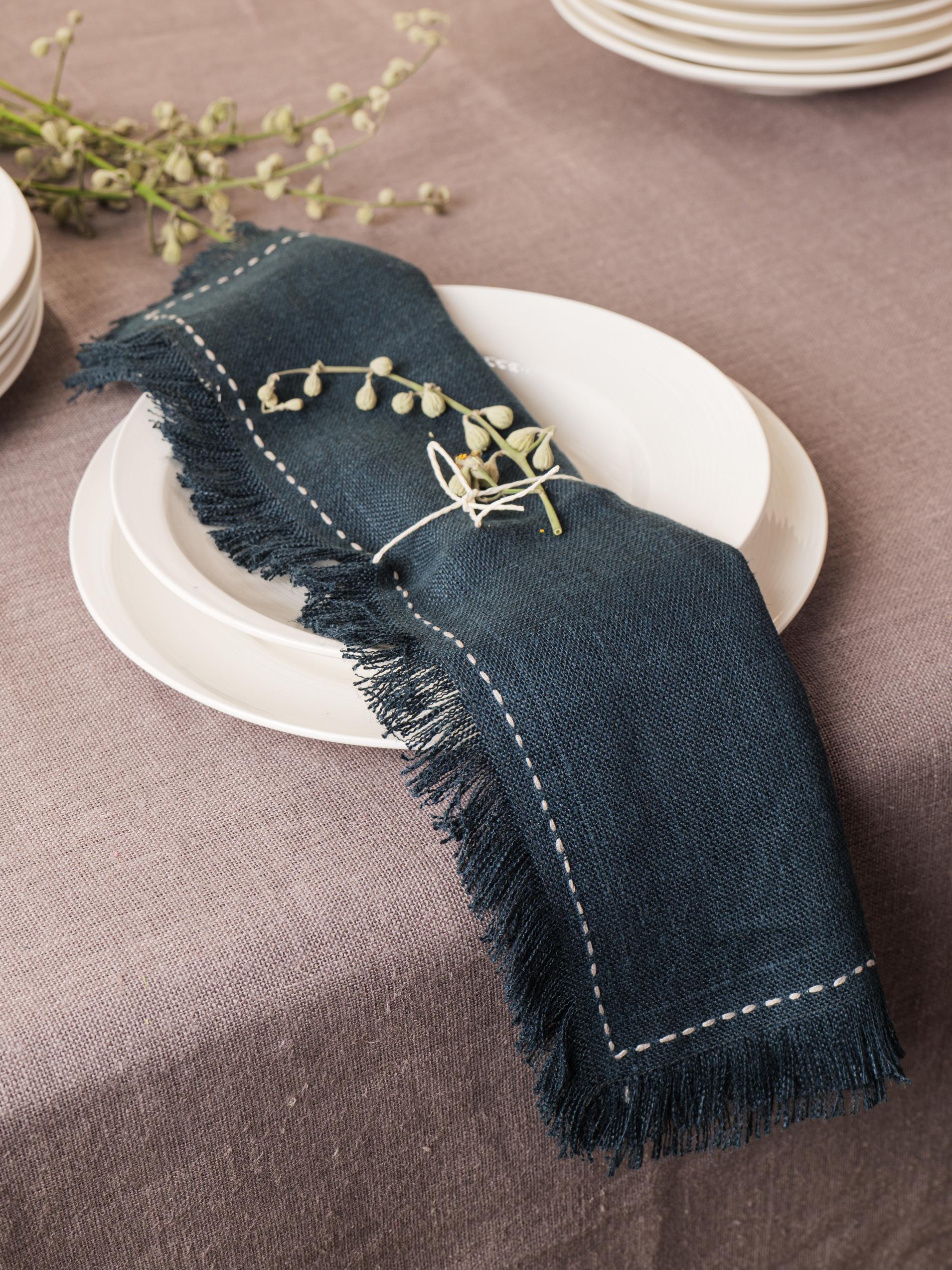 Bergamo Heavy Linen Premium Dining Napkin - Blue