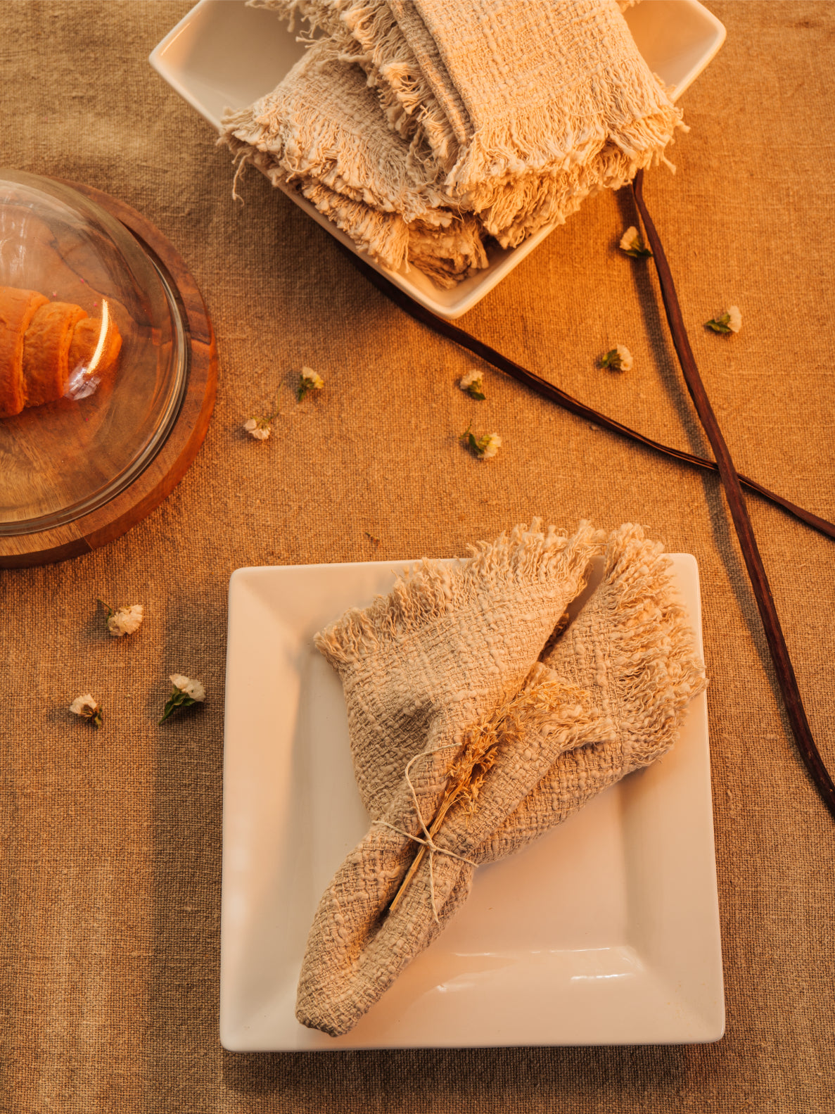 Tandem Fringe Napkin Set 100% Cotton - Beige