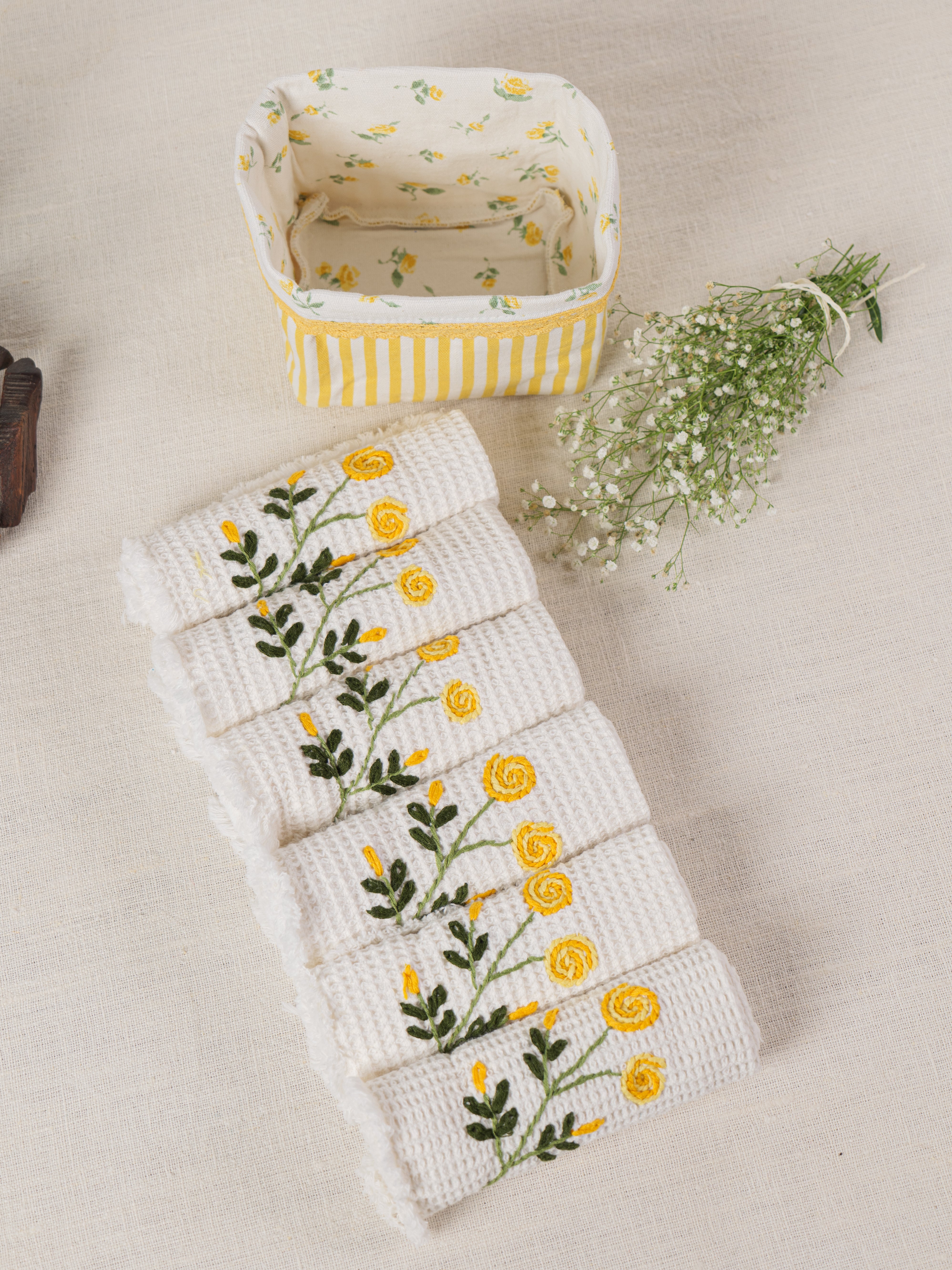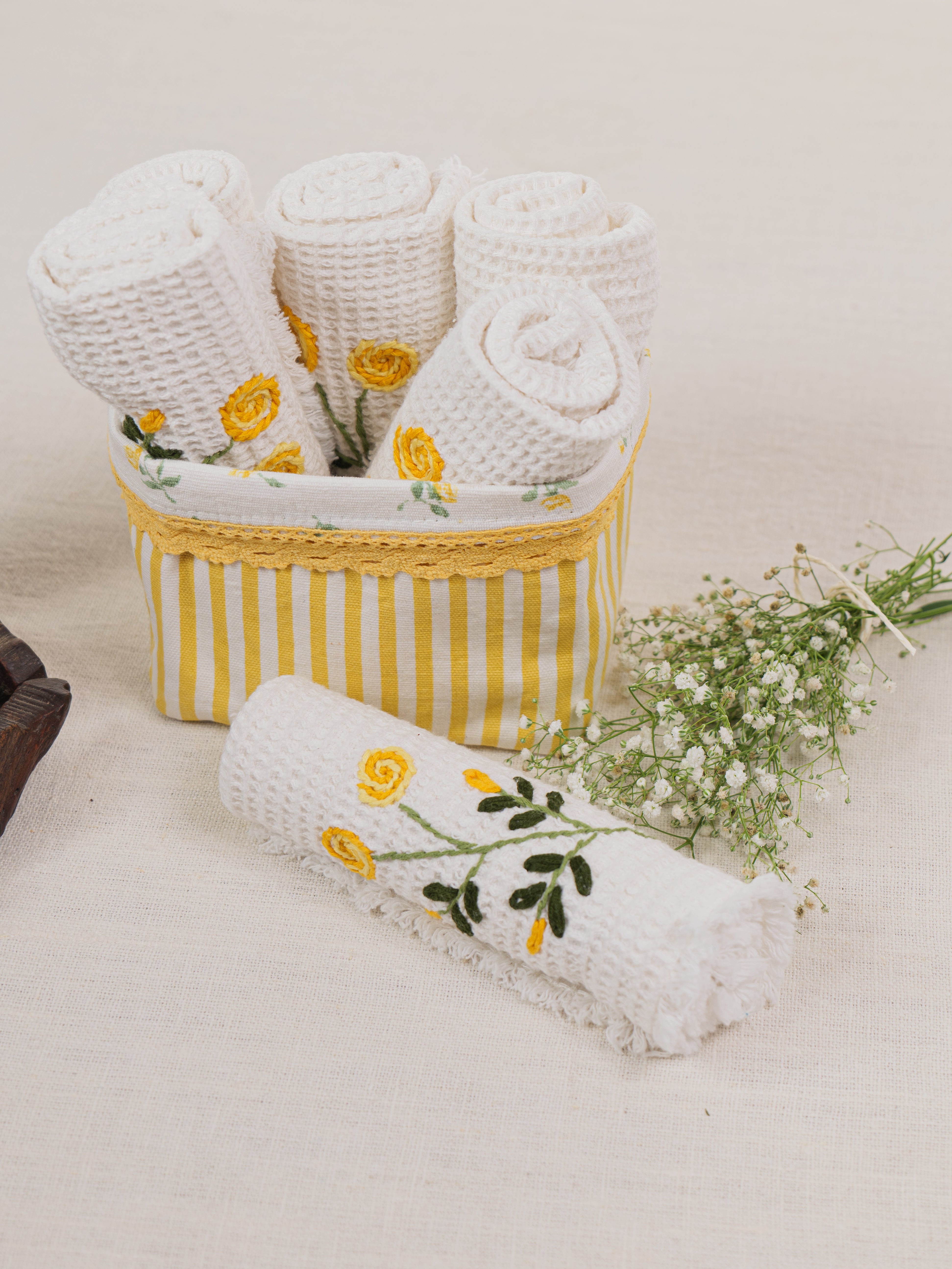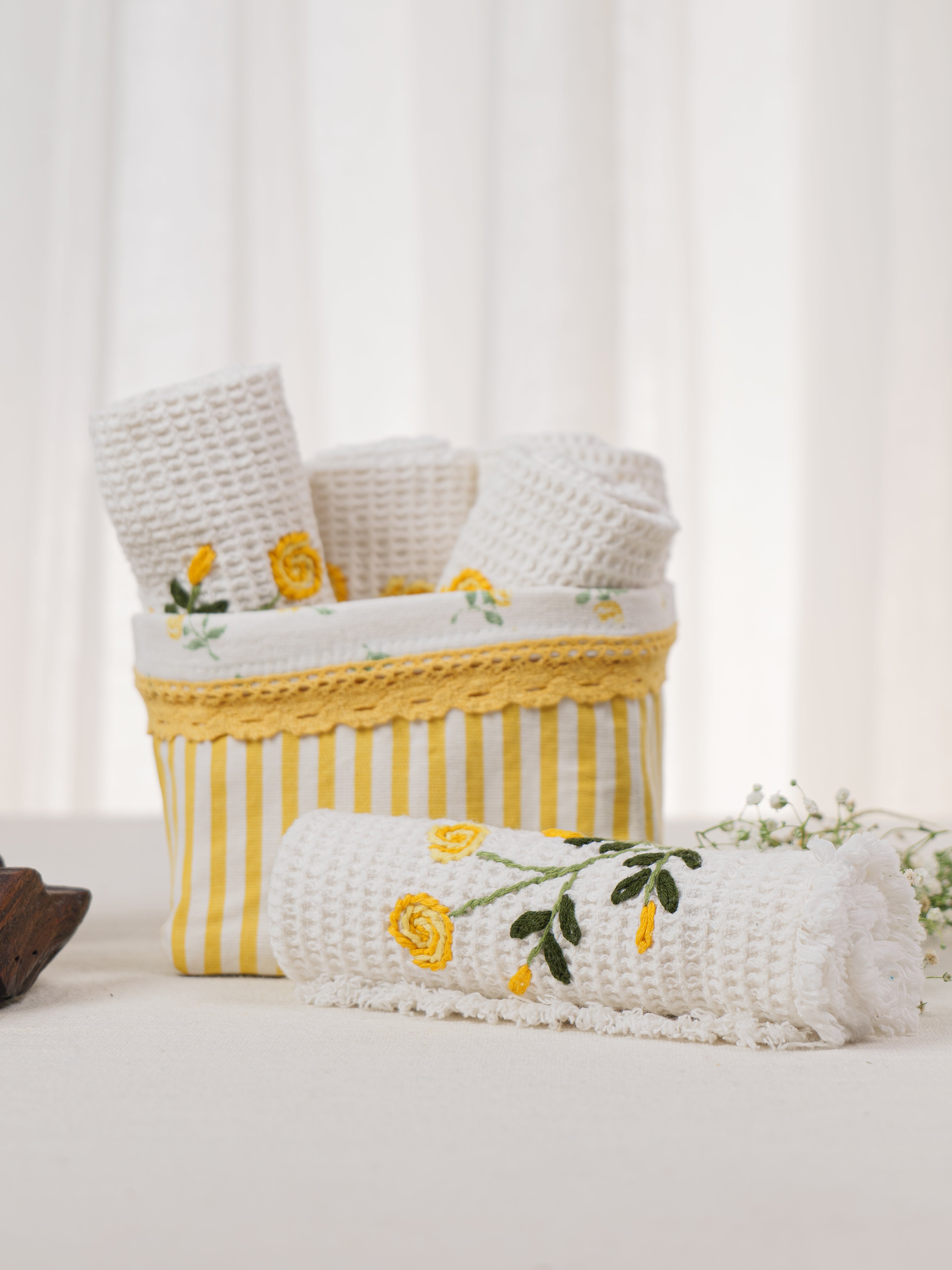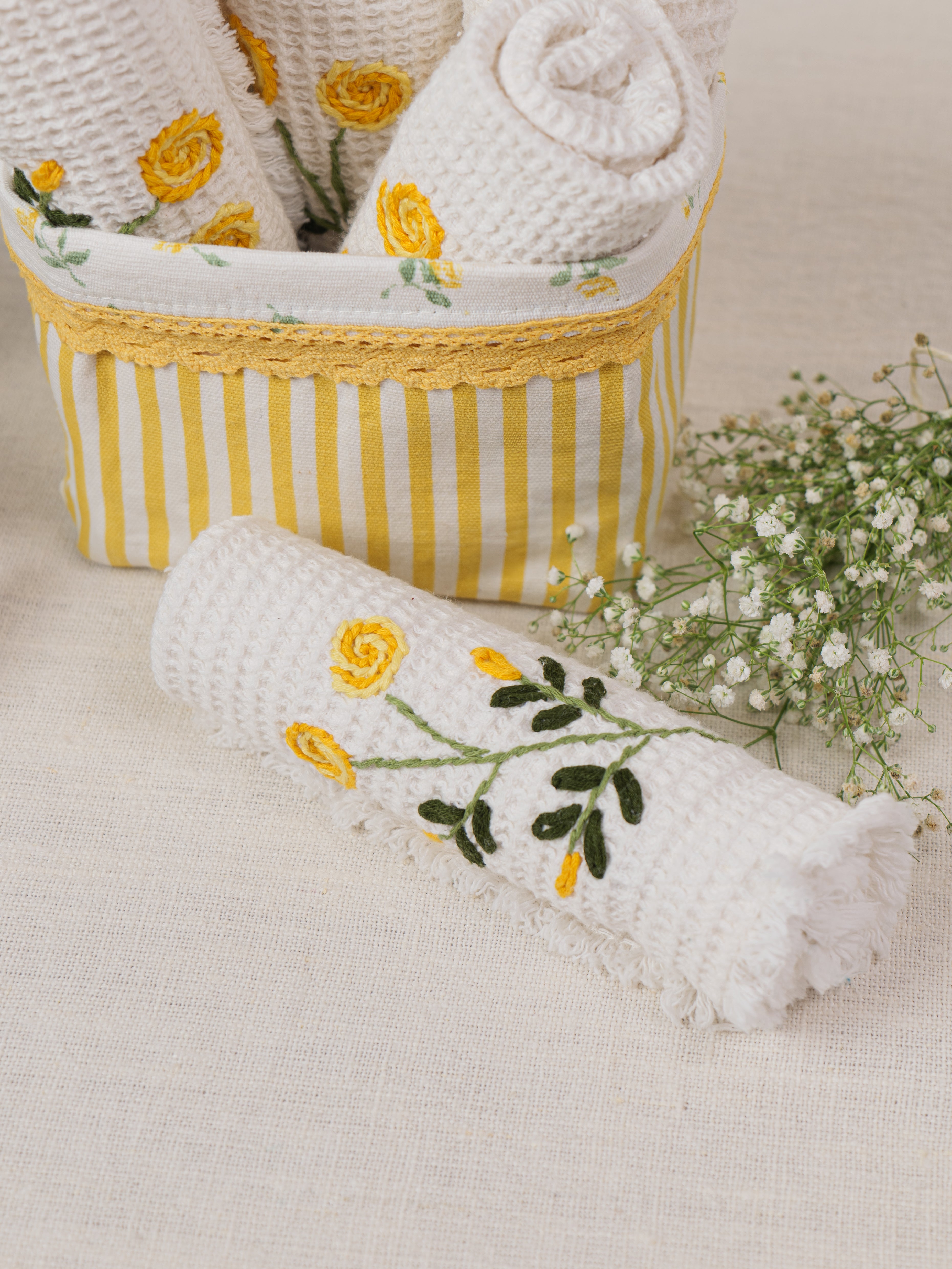 Sunshine Yellow Tiny Rose Embroidered Bun Basket