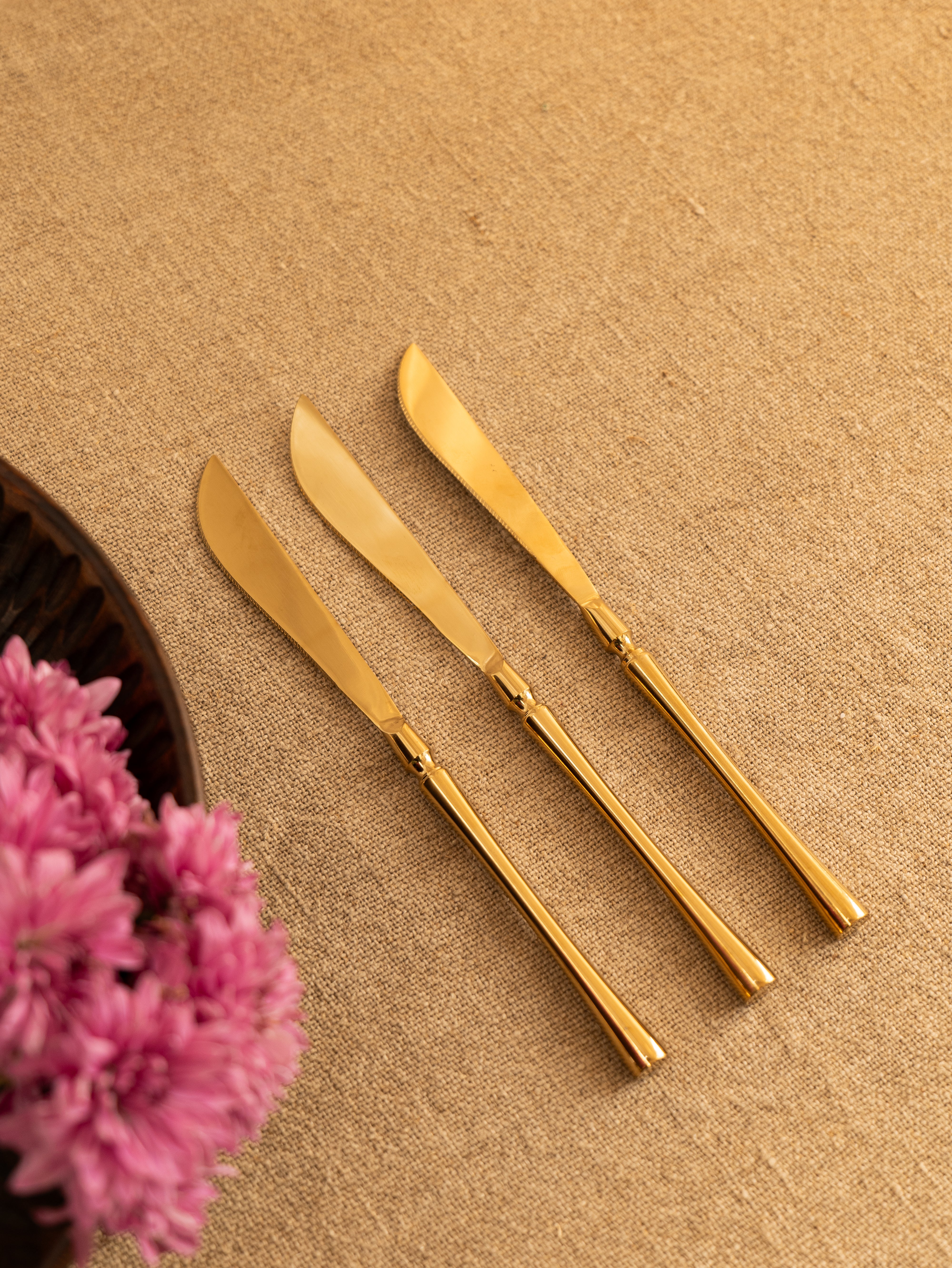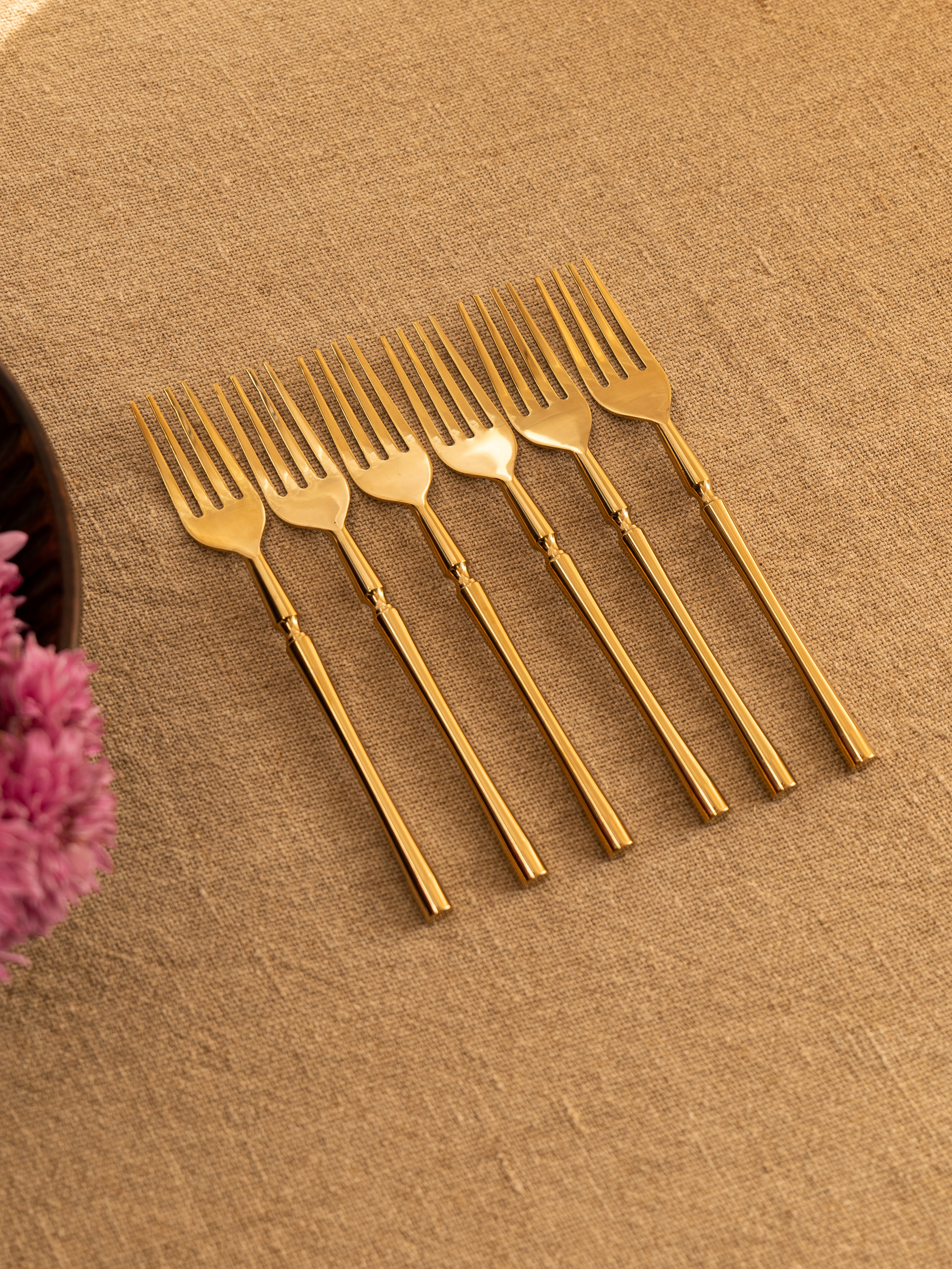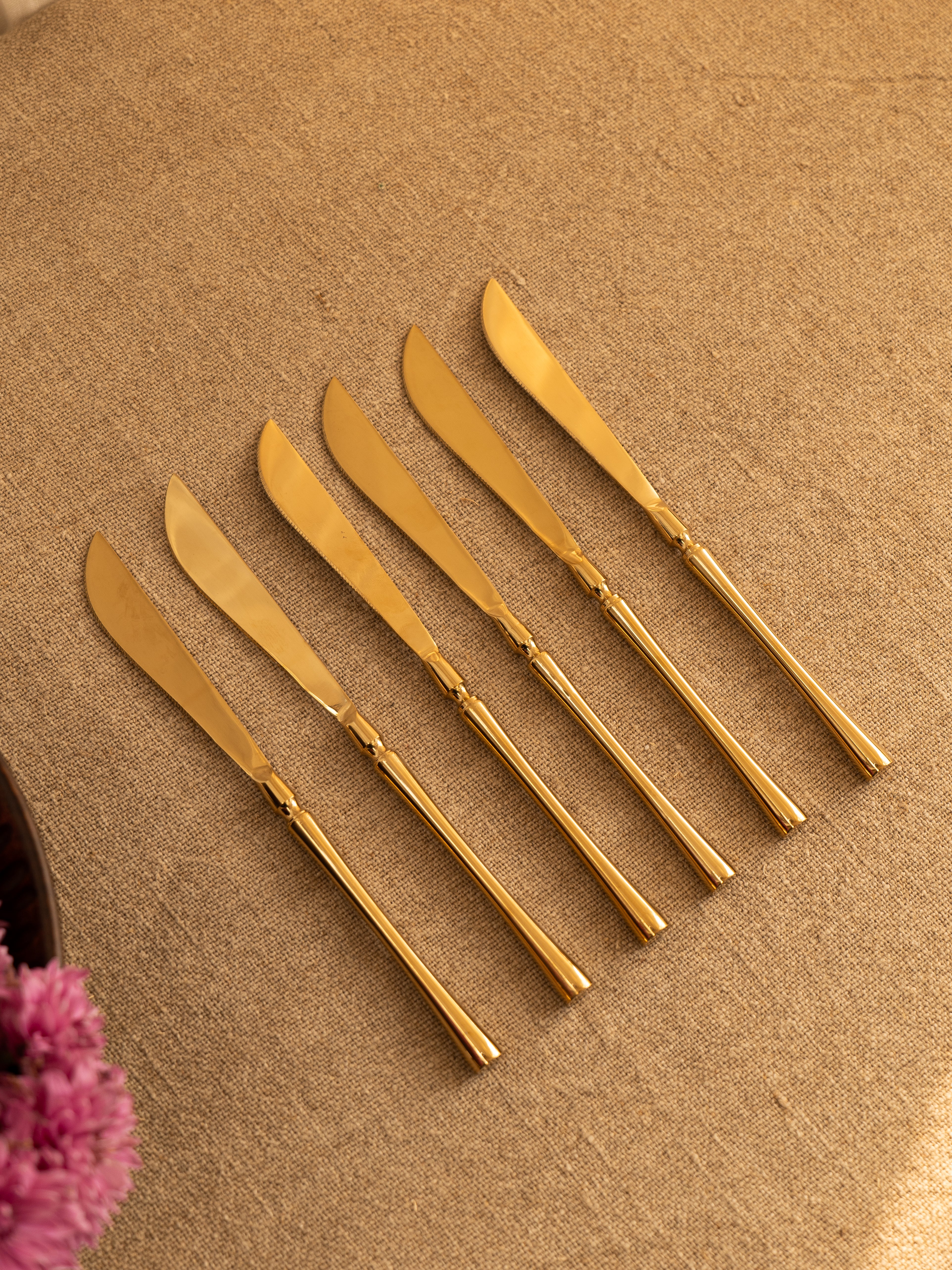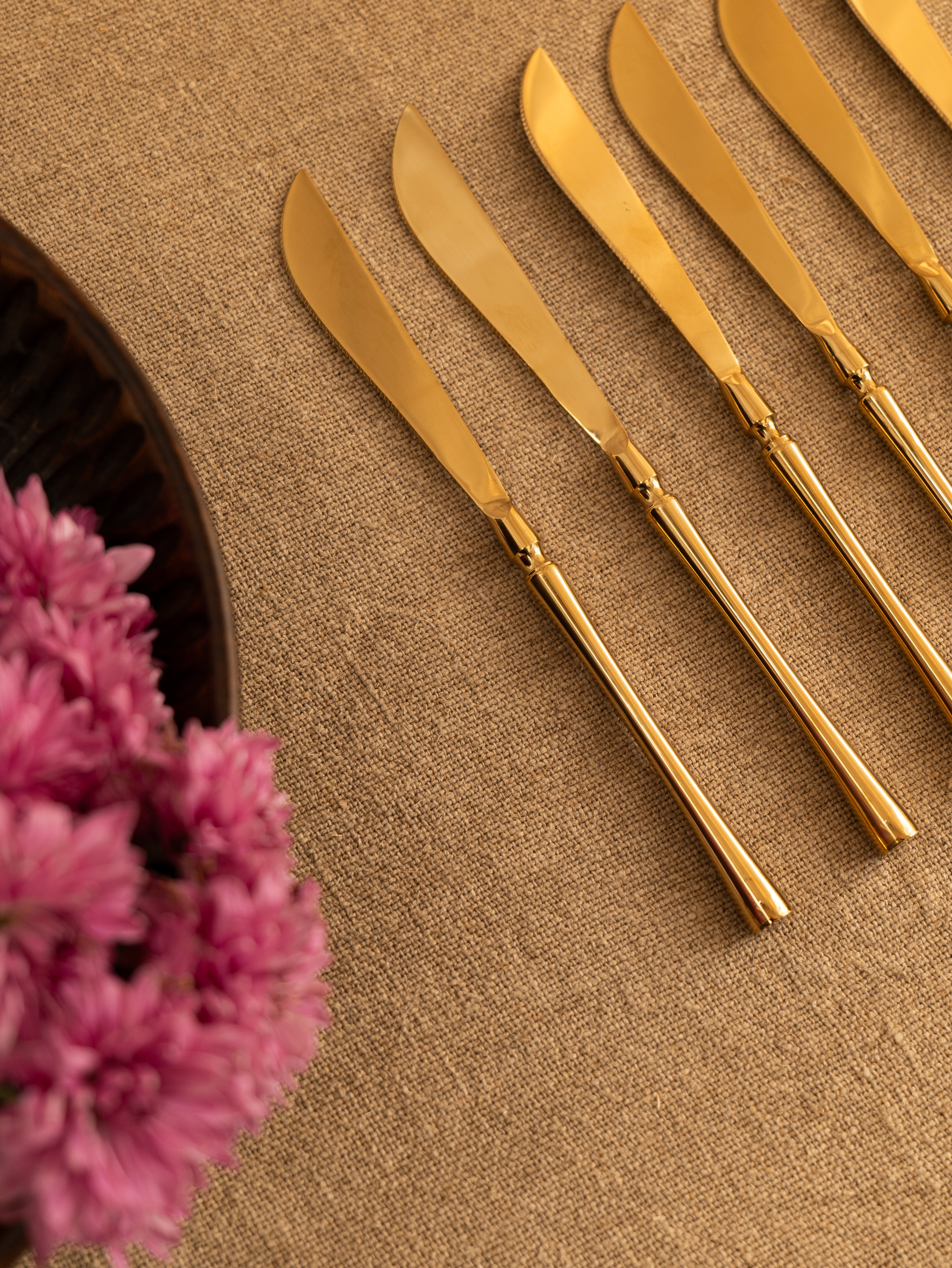 The Sestina Flatware Collection embodies timeless elegance and modern craftsmanship, designed to elevate every dining occasion. Crafted from brushed gold stainless steel with a luxurious glossy matte PVD finish, each piece blends durability with sophistication, making it suitable for both classic and contemporary settings. Handcrafted with precision, the flatware offers comfort, balance, and refined detailing, ensuring both beauty and functionality. Available in 16- or 24-piece sets, including dinner forks, dinner knives, tablespoons, and teaspoons, it provides all the dining essentials. Presented in an elegant branded gift box, the Sestina Flatware makes an ideal gift for weddings, housewarmings, or luxury celebrations.