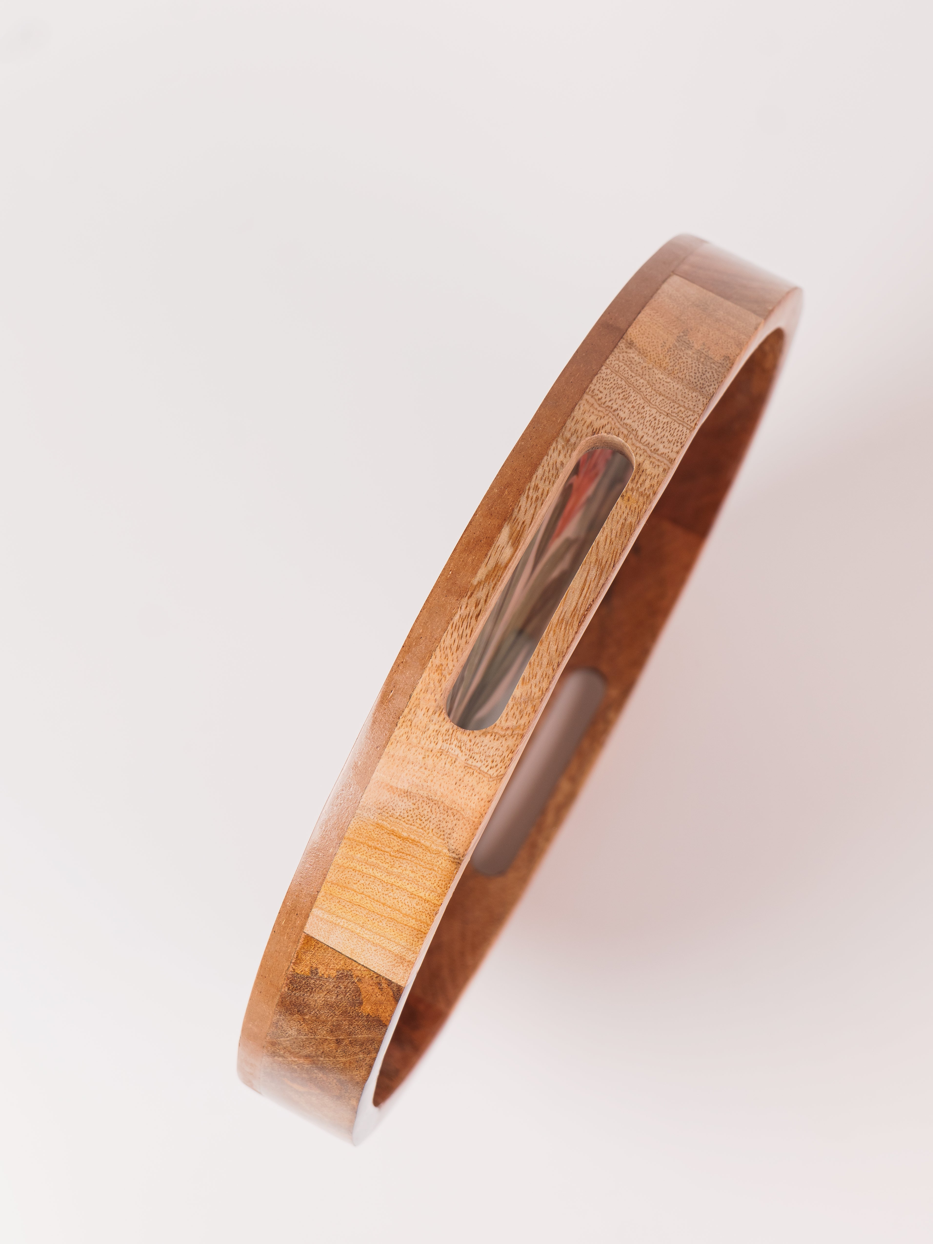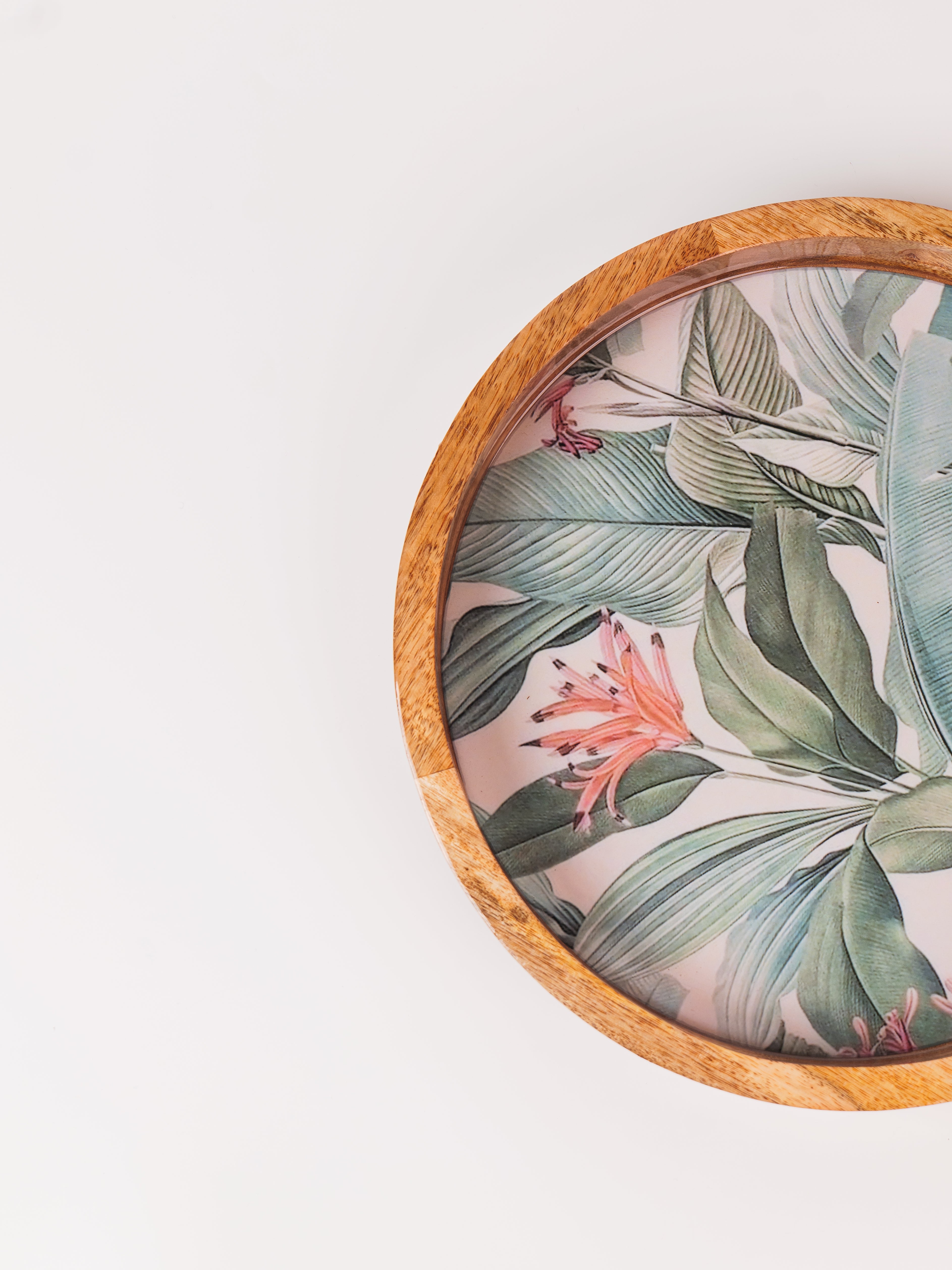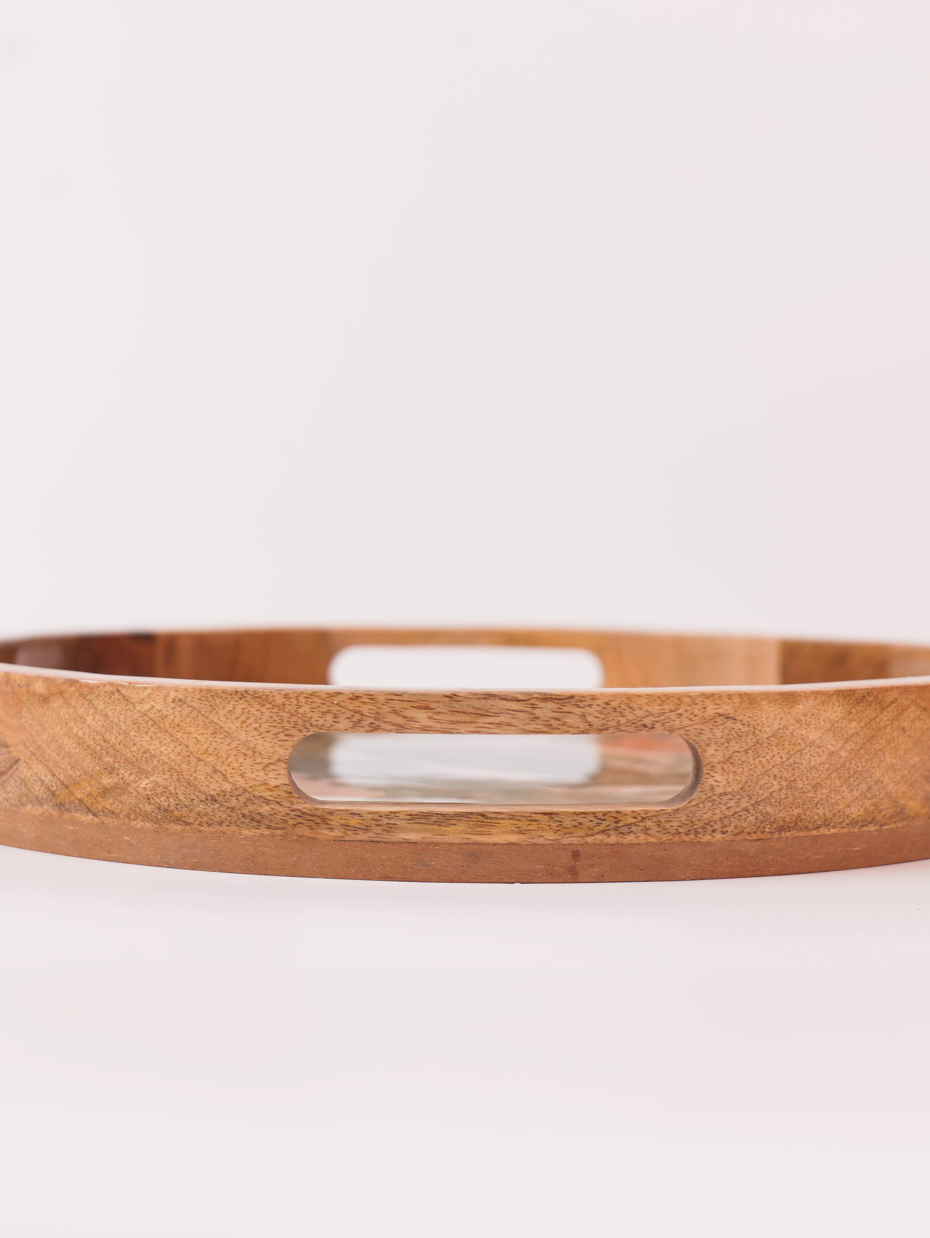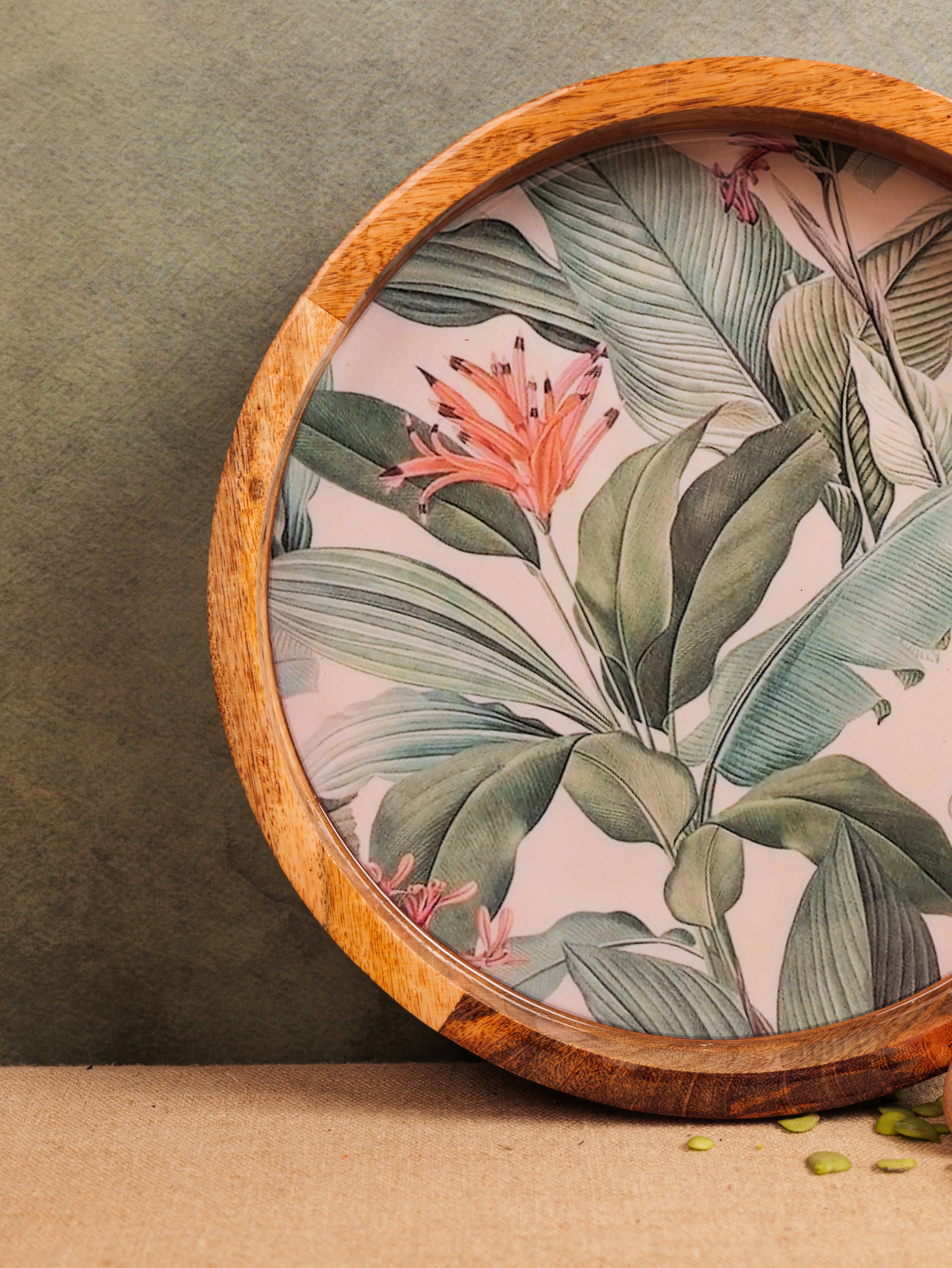 Elevate your serving experience with the Forest Walk Epoxy Tray, beautifully handcrafted from premium mango wood. This round tray (14" x 14") showcases a mesmerizing forest walk leaf design, meticulously crafted with food-grade epoxy resin, blending nature’s charm with artistic elegance. Its smooth finish and sturdy construction make it perfect for serving beverages, snacks, or desserts in style. The tray’s natural wood grain, combined with the vibrant epoxy detailing, adds a unique aesthetic touch to any setting. Ideal for both everyday use and special occasions, this tray is a perfect fusion of functionality, durability, and exquisite craftsmanship.