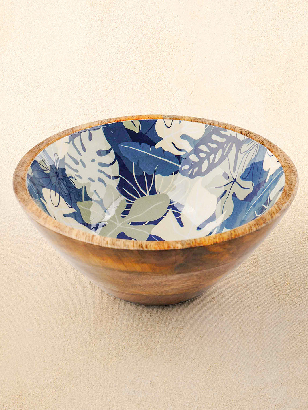 Tropical Leaf Mango Wood Epoxy Resin Salad Bowl Set - Multi