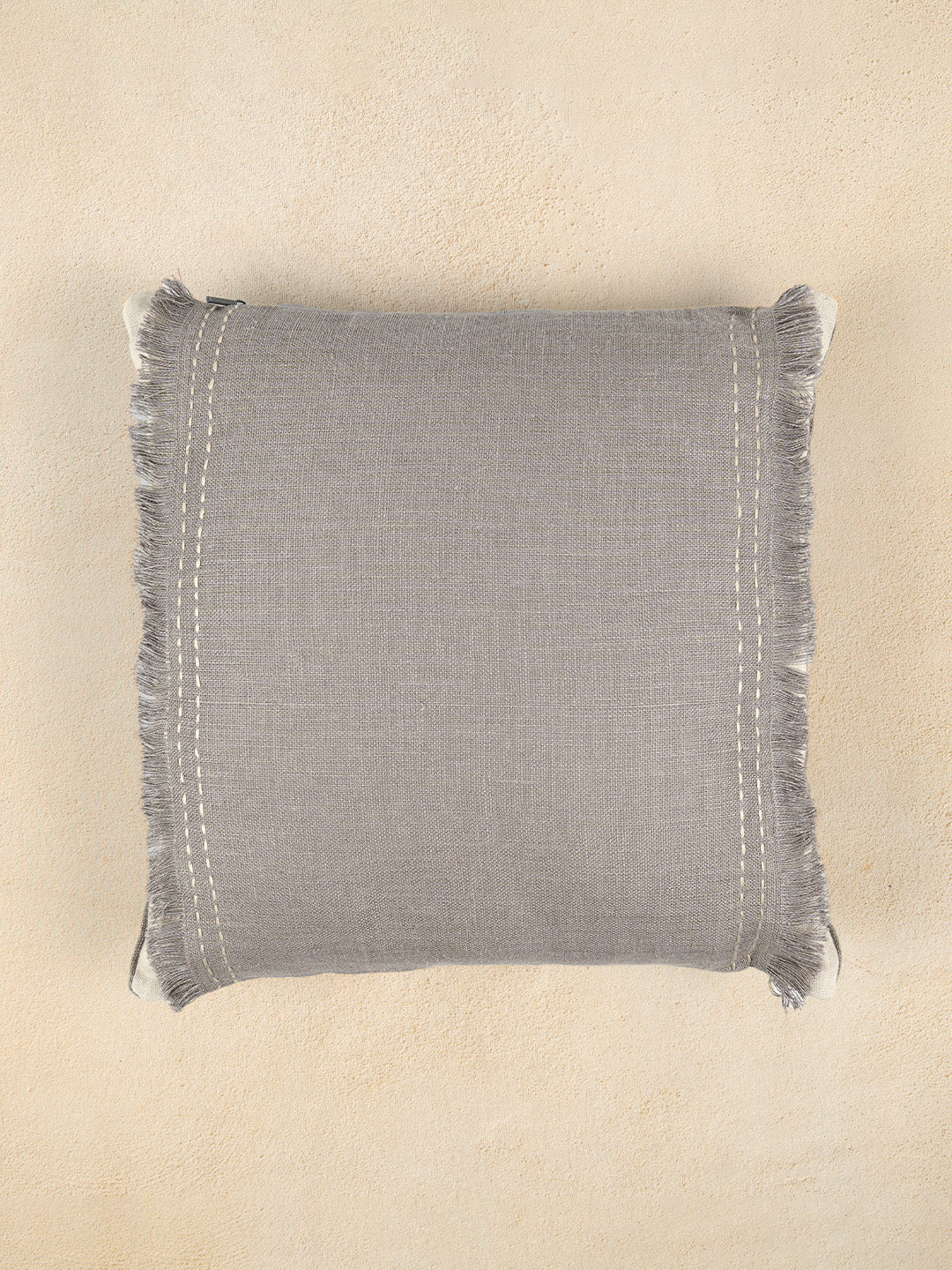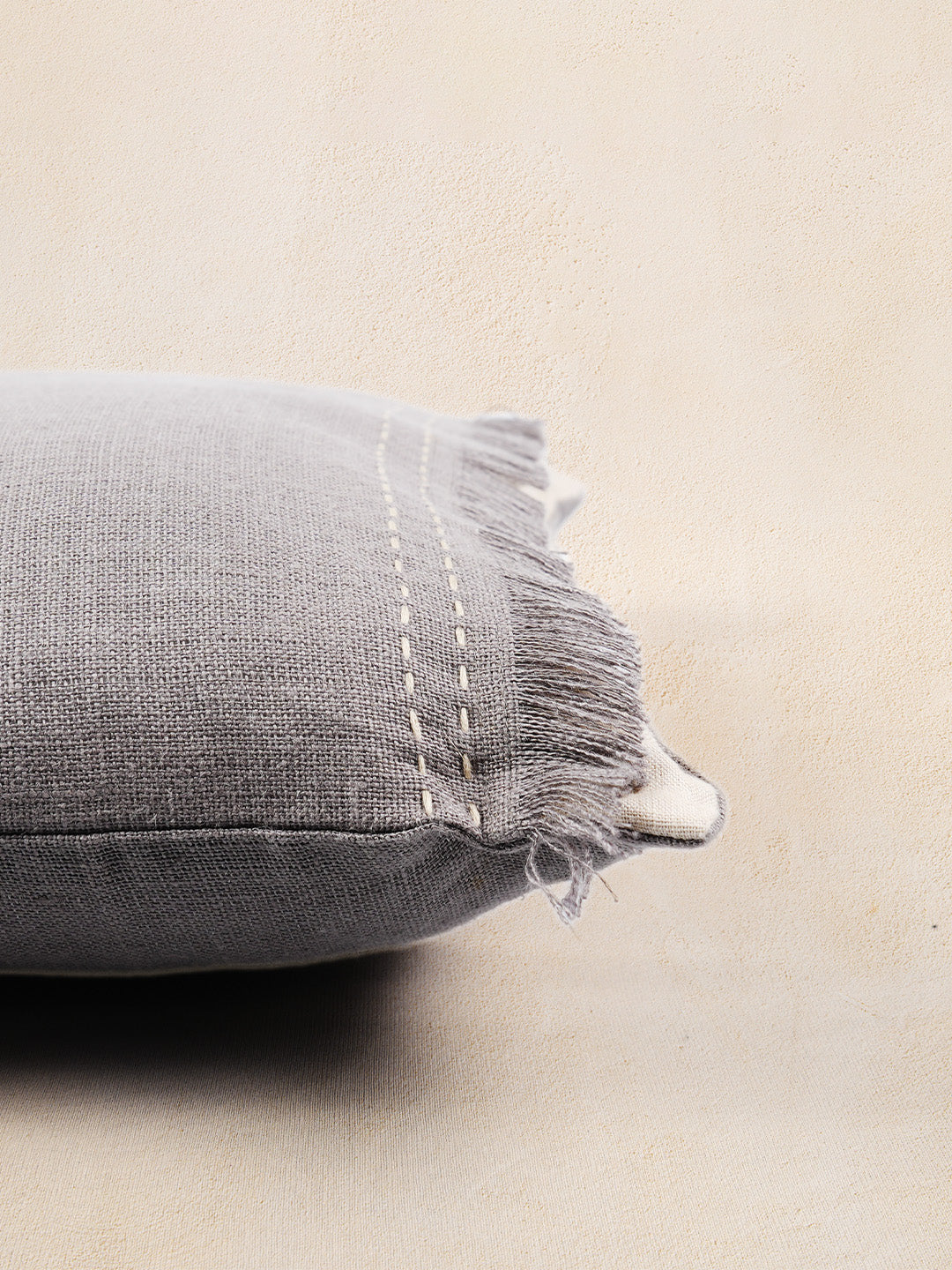 Add sophisticated texture to your living space with the Bergamo Cushion Cover in Dark Grey, crafted from premium 25 Lea heavy linen for exceptional quality and durability. This elegant cushion cover features decorative linen fringes on two sides and distinctive channel line work that adds dimension and visual interest. The rich dark grey tone offers dramatic styling potential, creating a bold accent for various décor schemes. Featuring a hidden zipper closure for a seamless look and easy maintenance, this cushion cover is as practical as it is stylish.