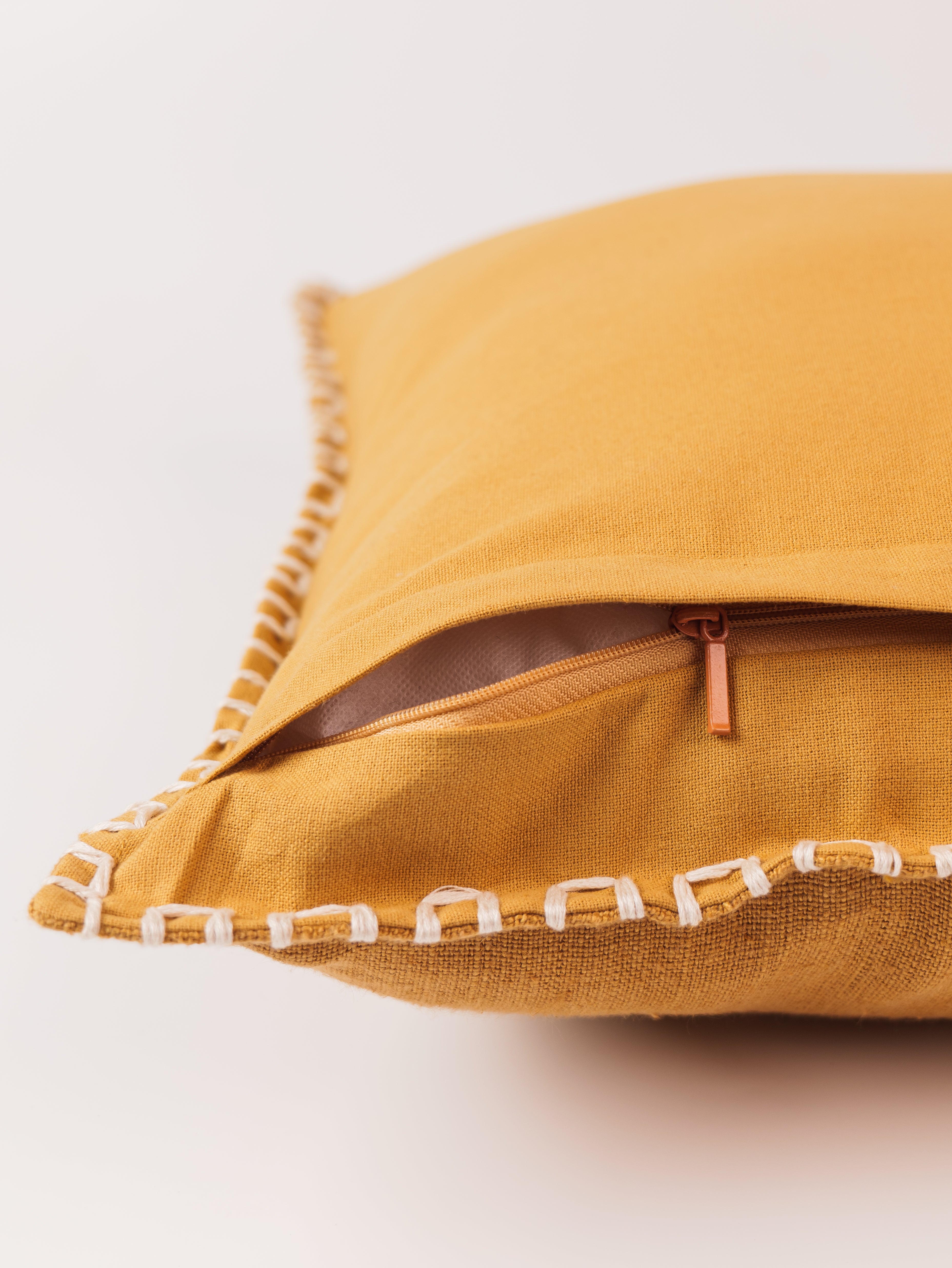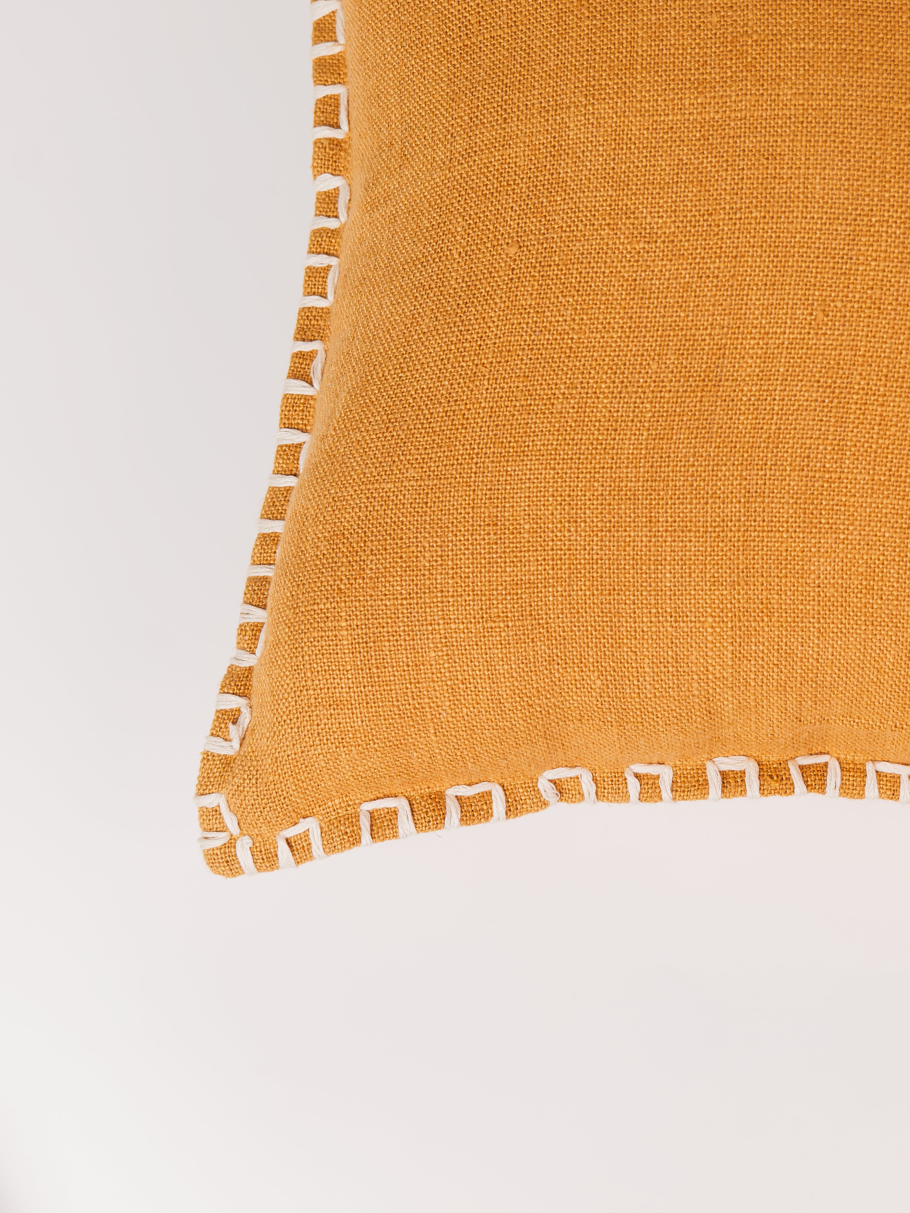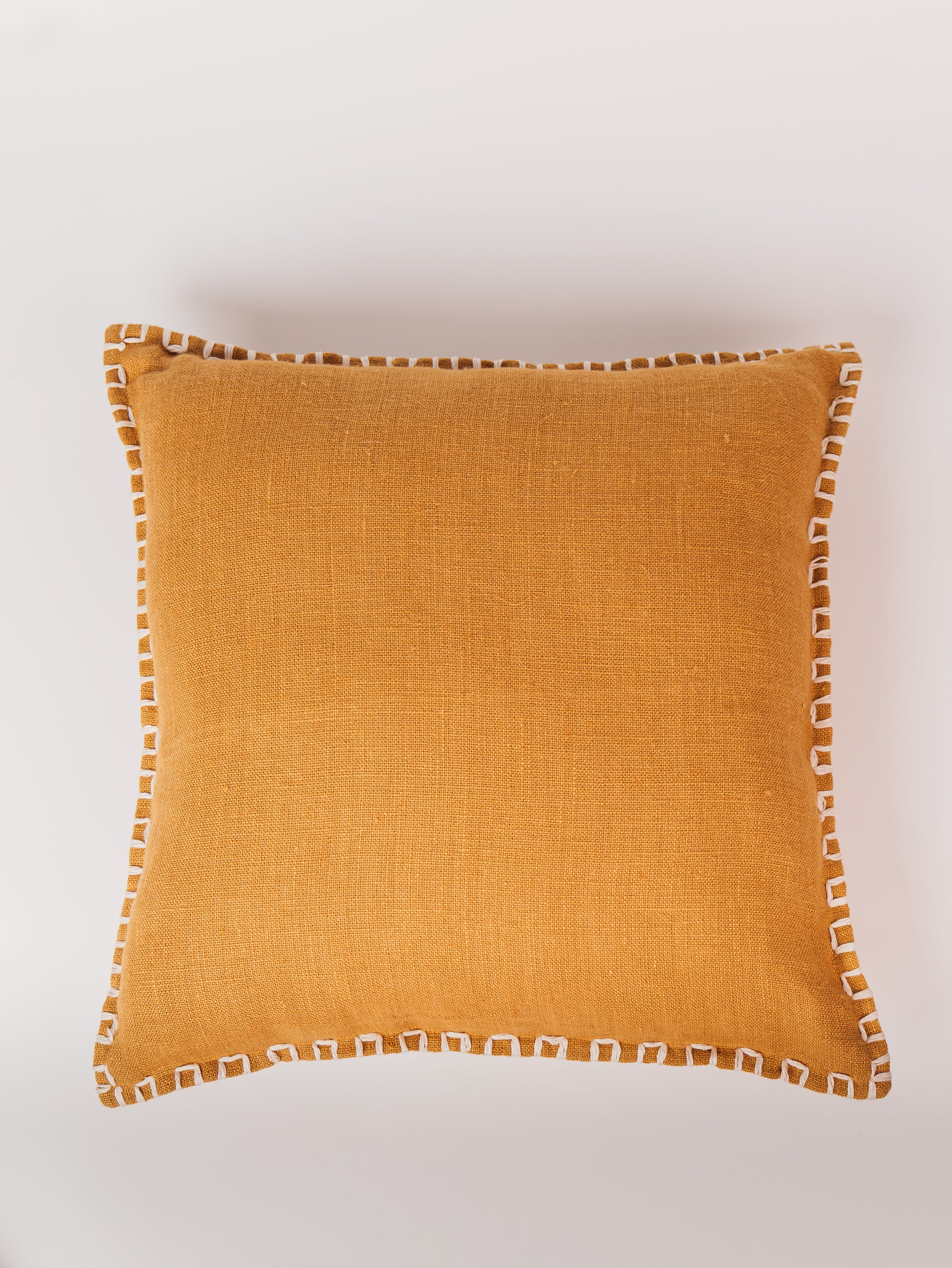 Finch Channel Line (Kantha) Cushion Cover 100% Linen - Mustard