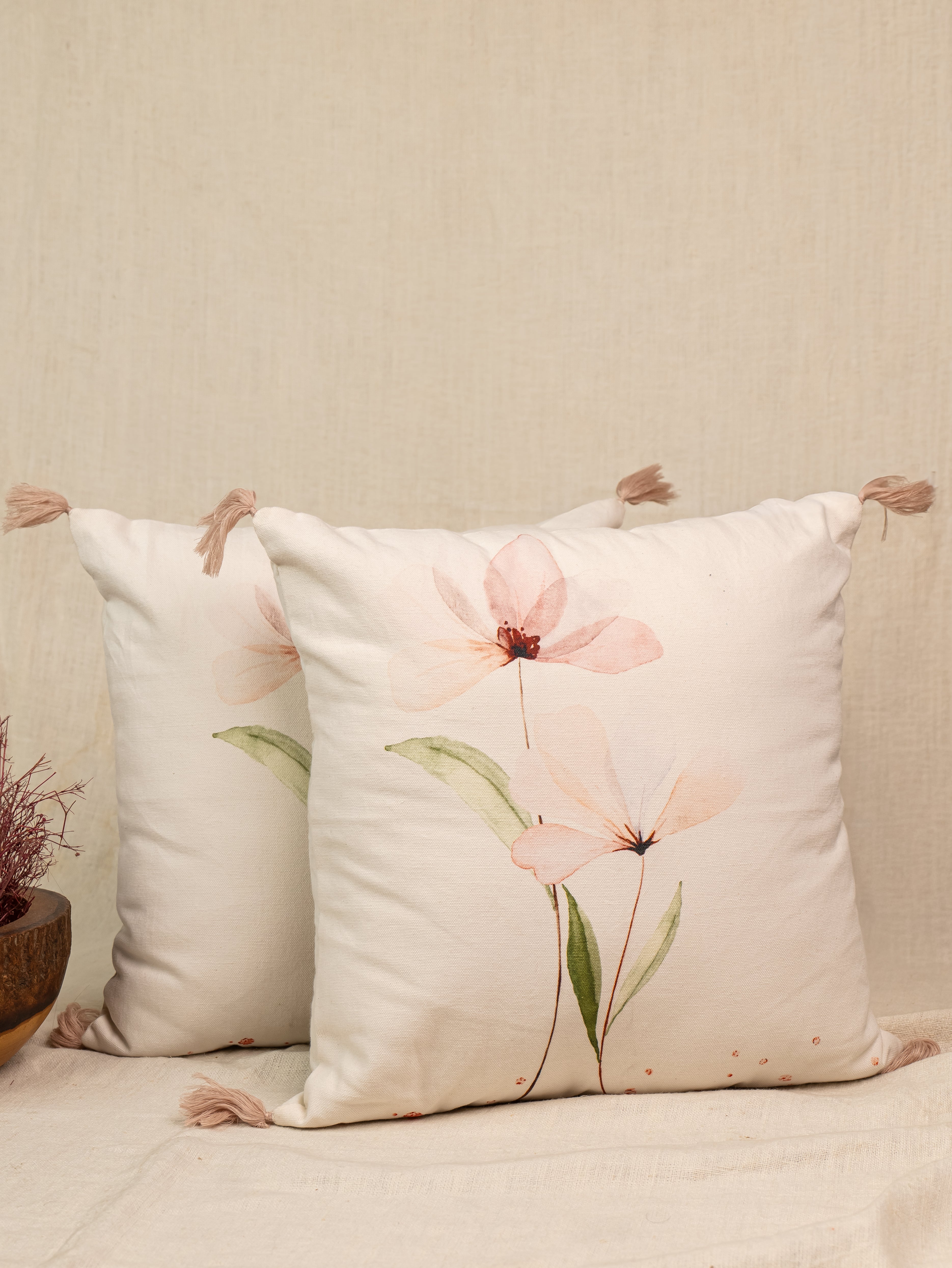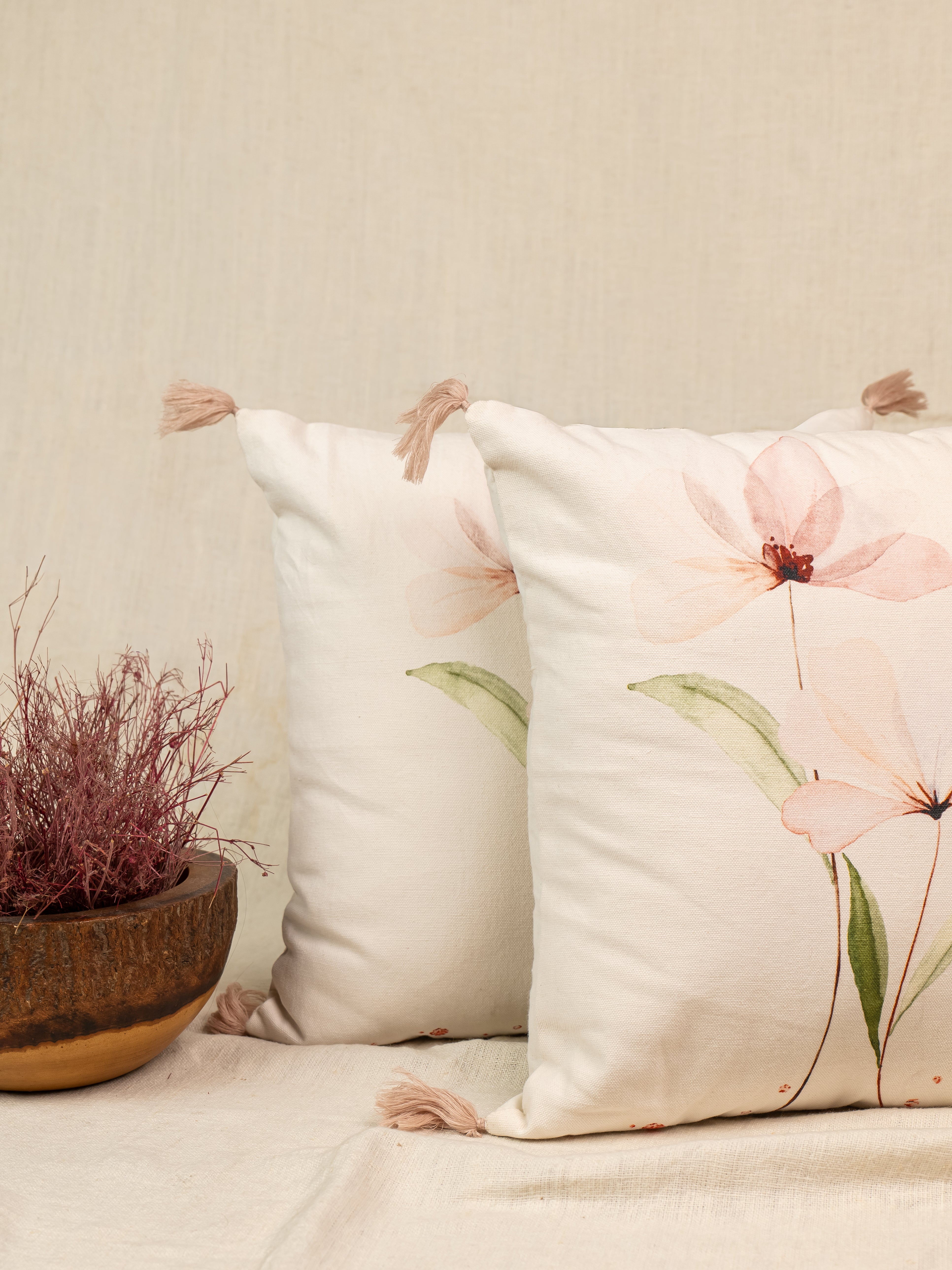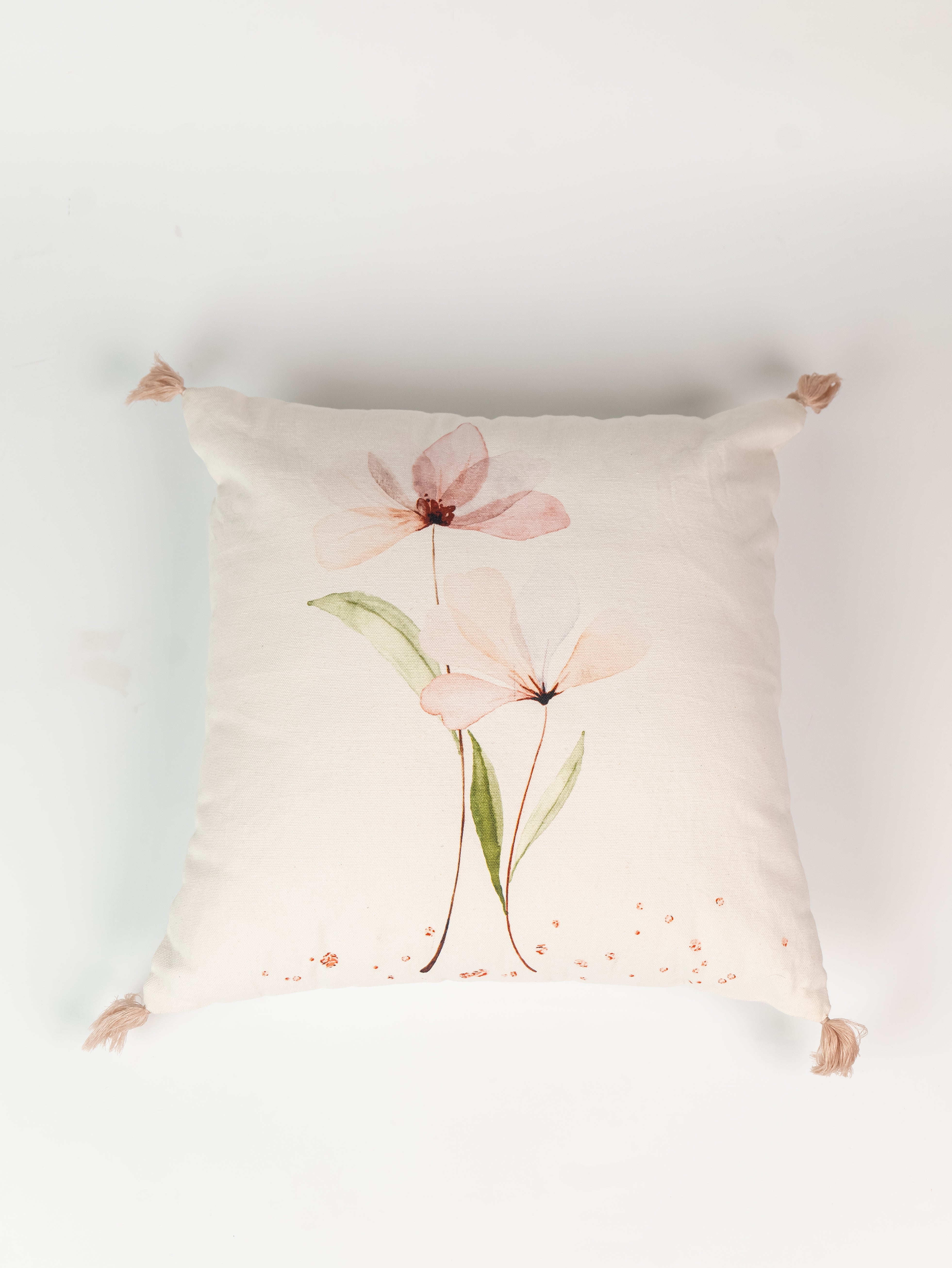 Ammorada’s Noorbelle Cushion Cover brings timeless elegance and a touch of charm to any living space. Crafted from 100% premium cotton, this 16 x 16 inch cover features a soft ivory base adorned with a delicate pink floral print, perfectly blending subtlety and style. The cushion is enhanced with playful tassels on all four sides, adding a chic, bohemian flair. Soft, durable, and easy to maintain, it’s ideal for sofas, beds, or lounge areas. Elegant yet practical, the Noorbelle Cushion Cover effortlessly refreshes your décor, combining comfort, sophistication, and a stylish accent for any room.