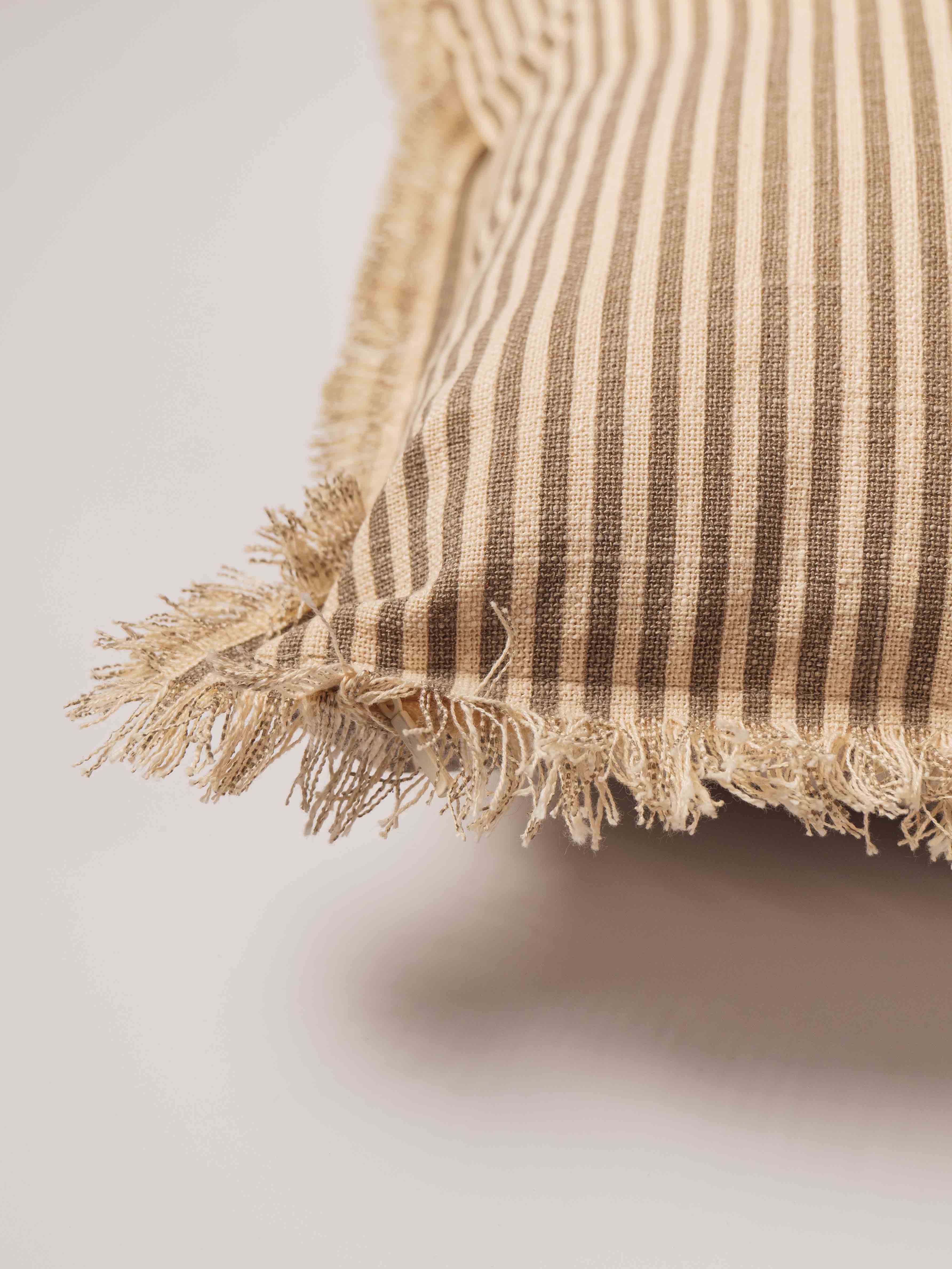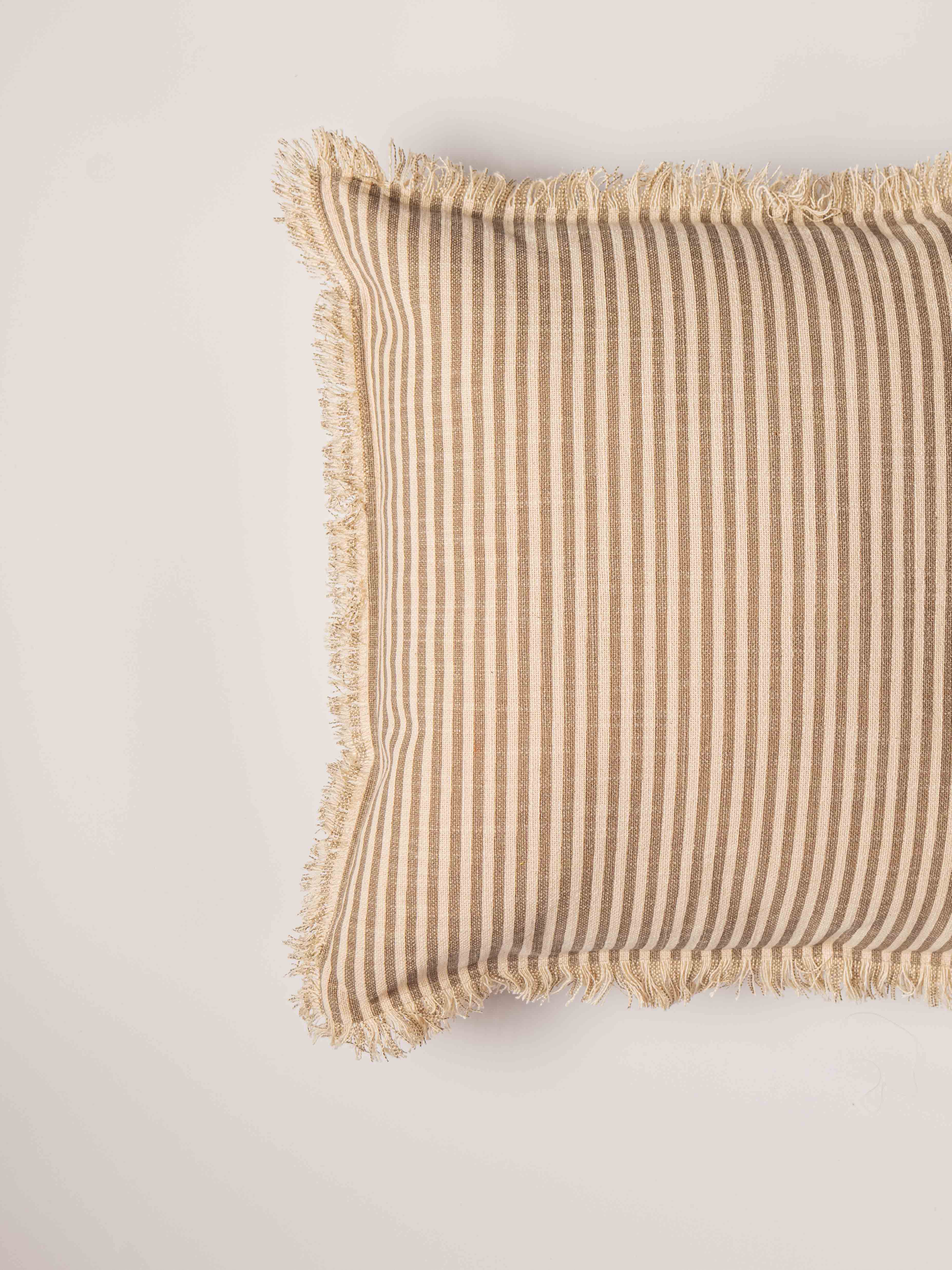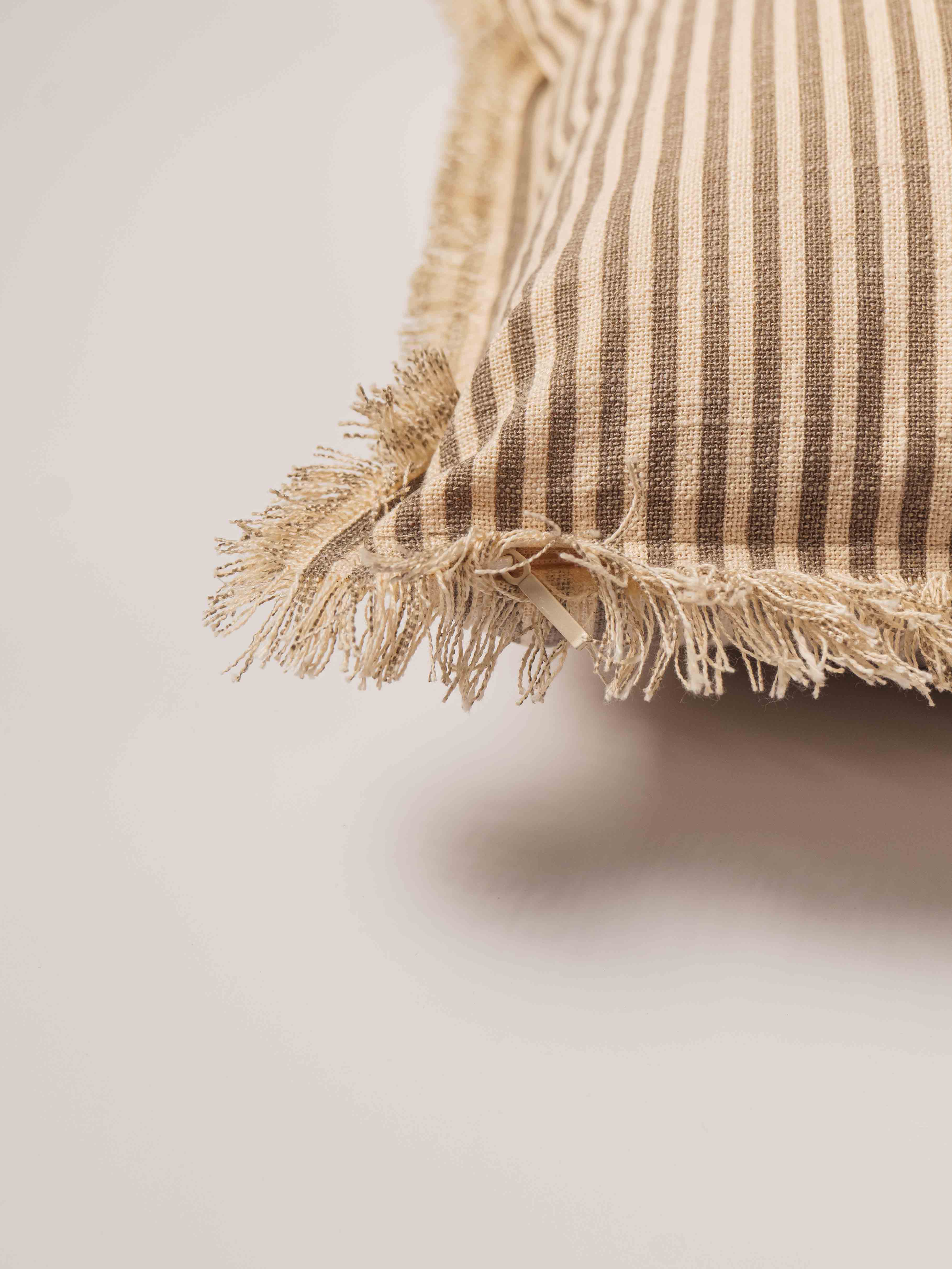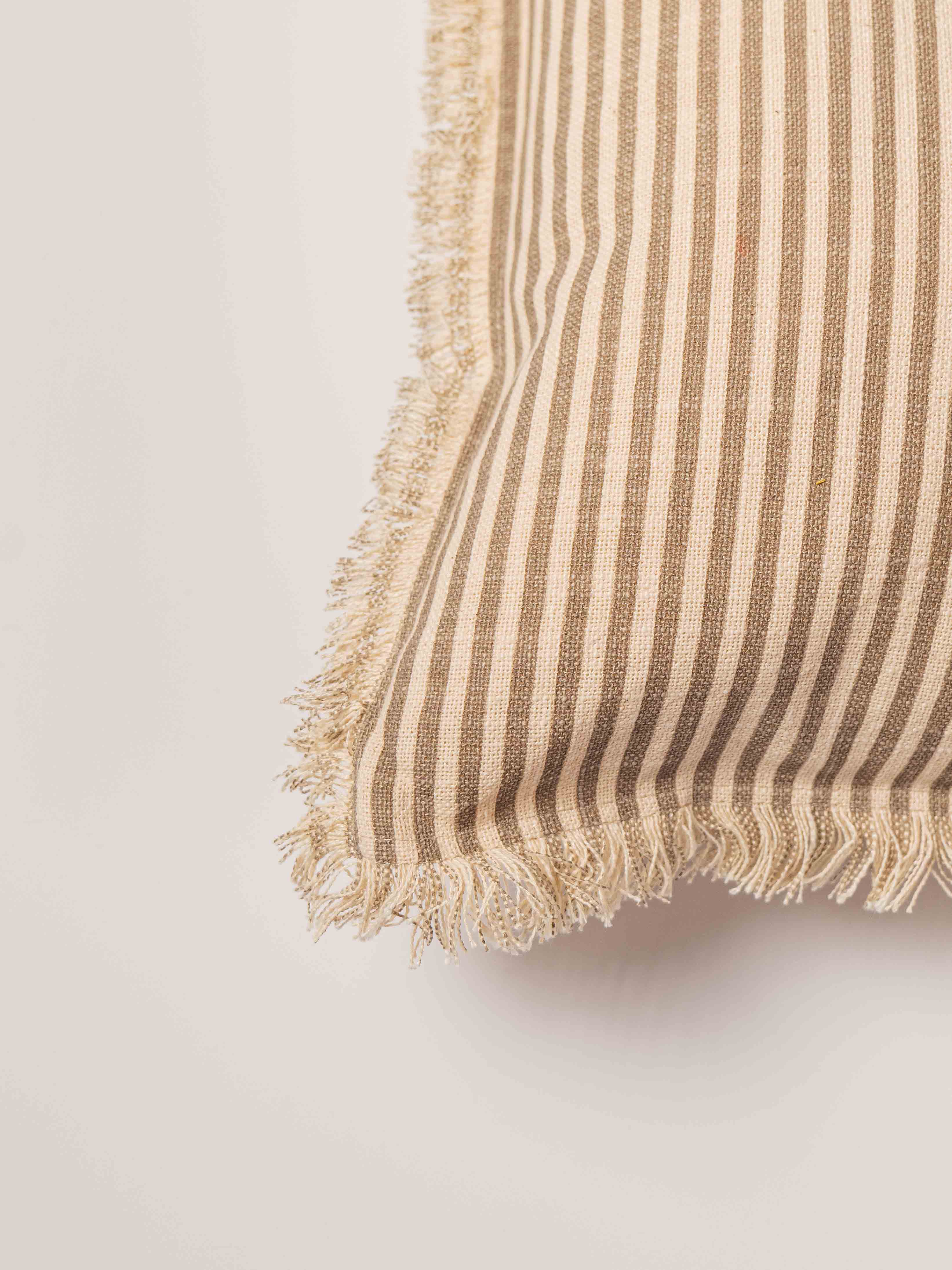 Stripe Fringe Cushion Cover 100% Cotton - Beige