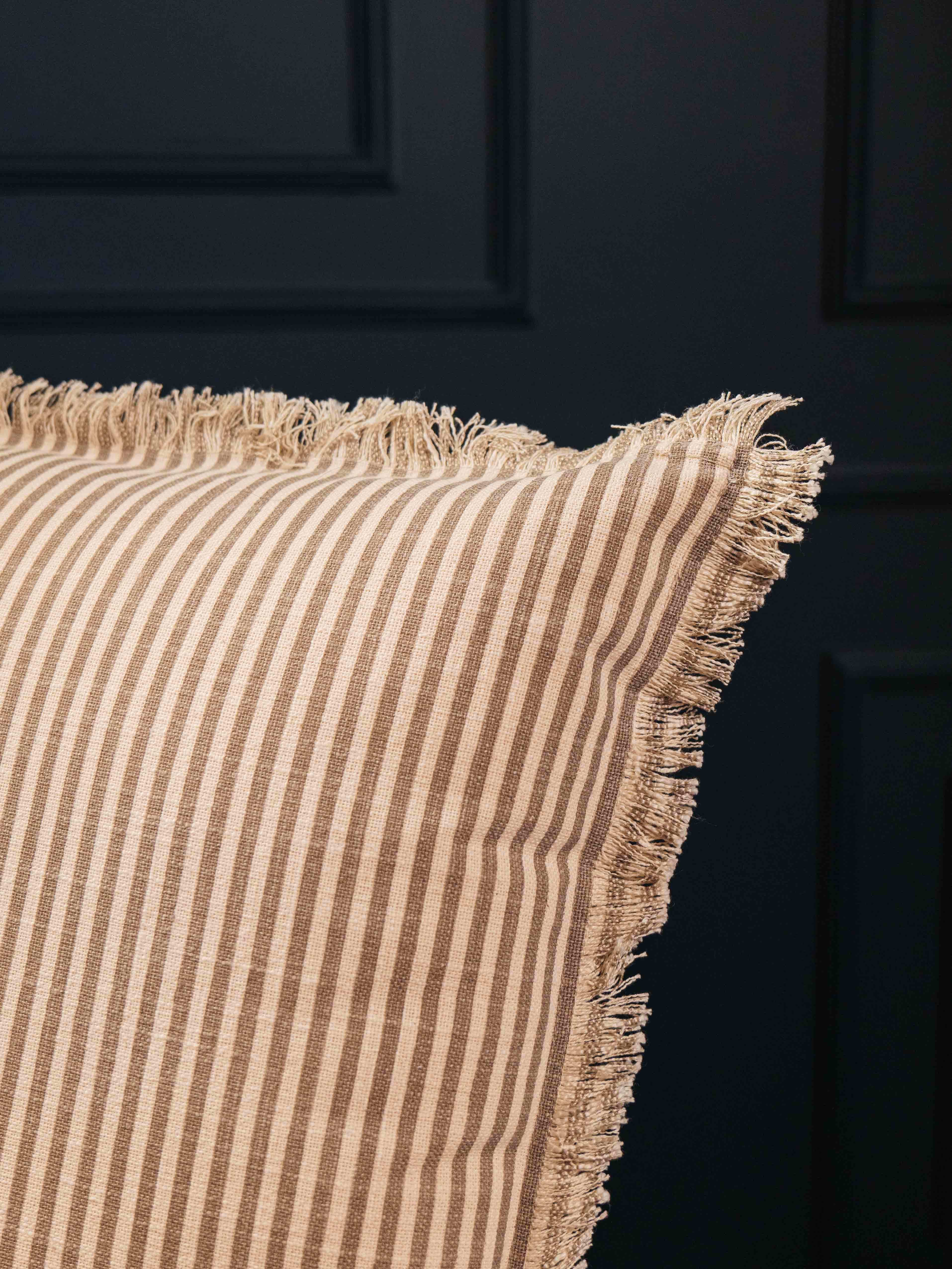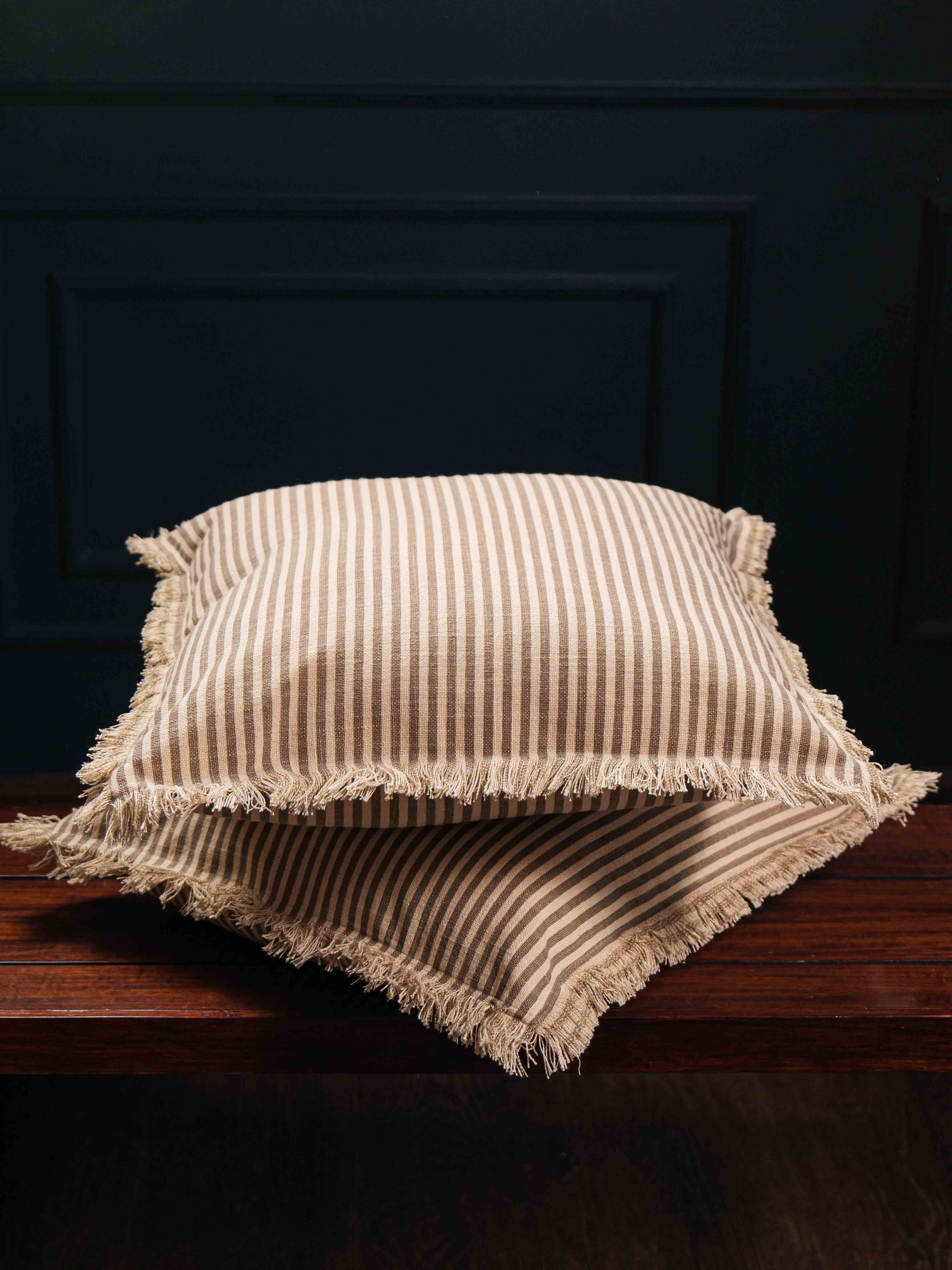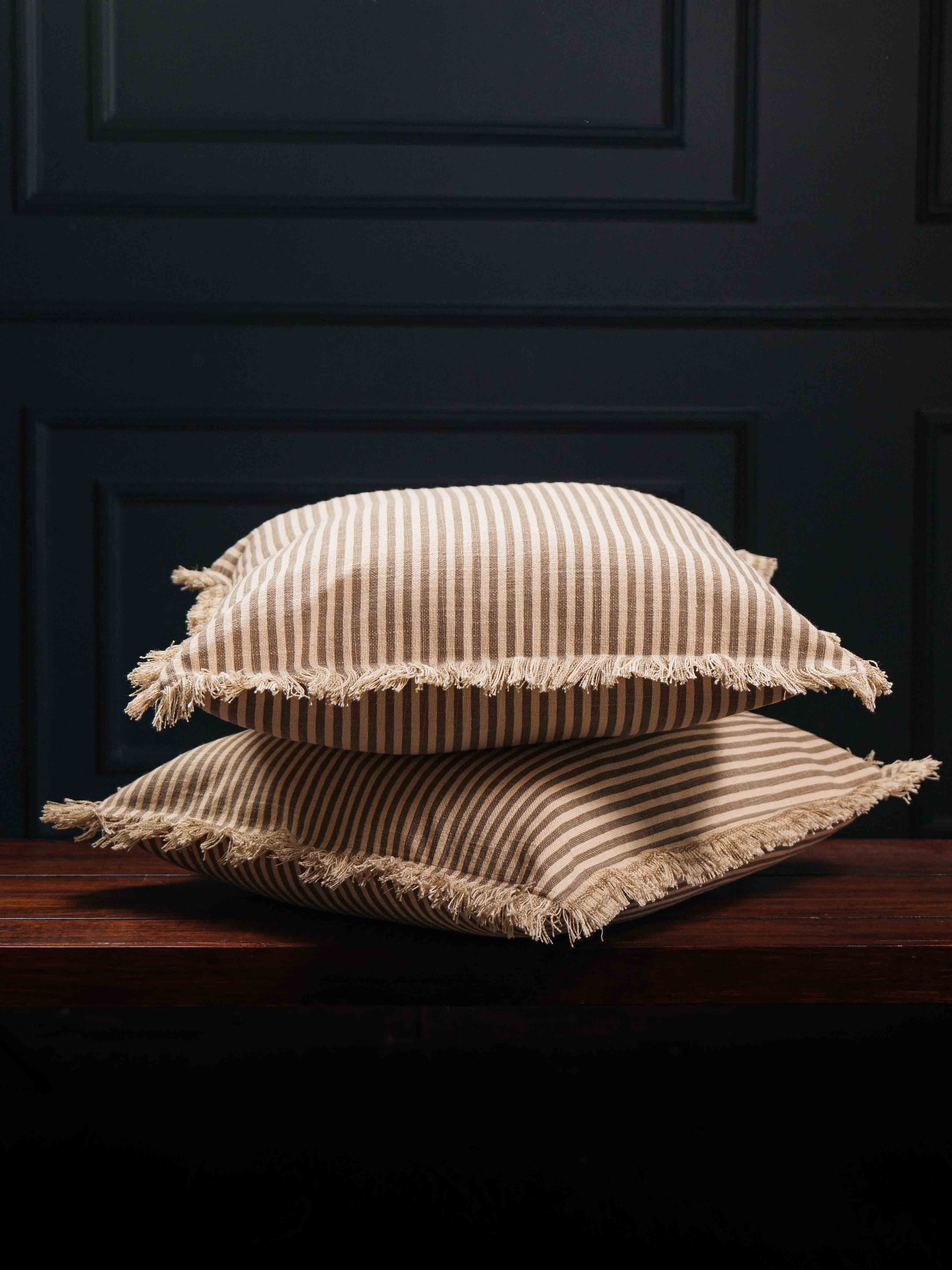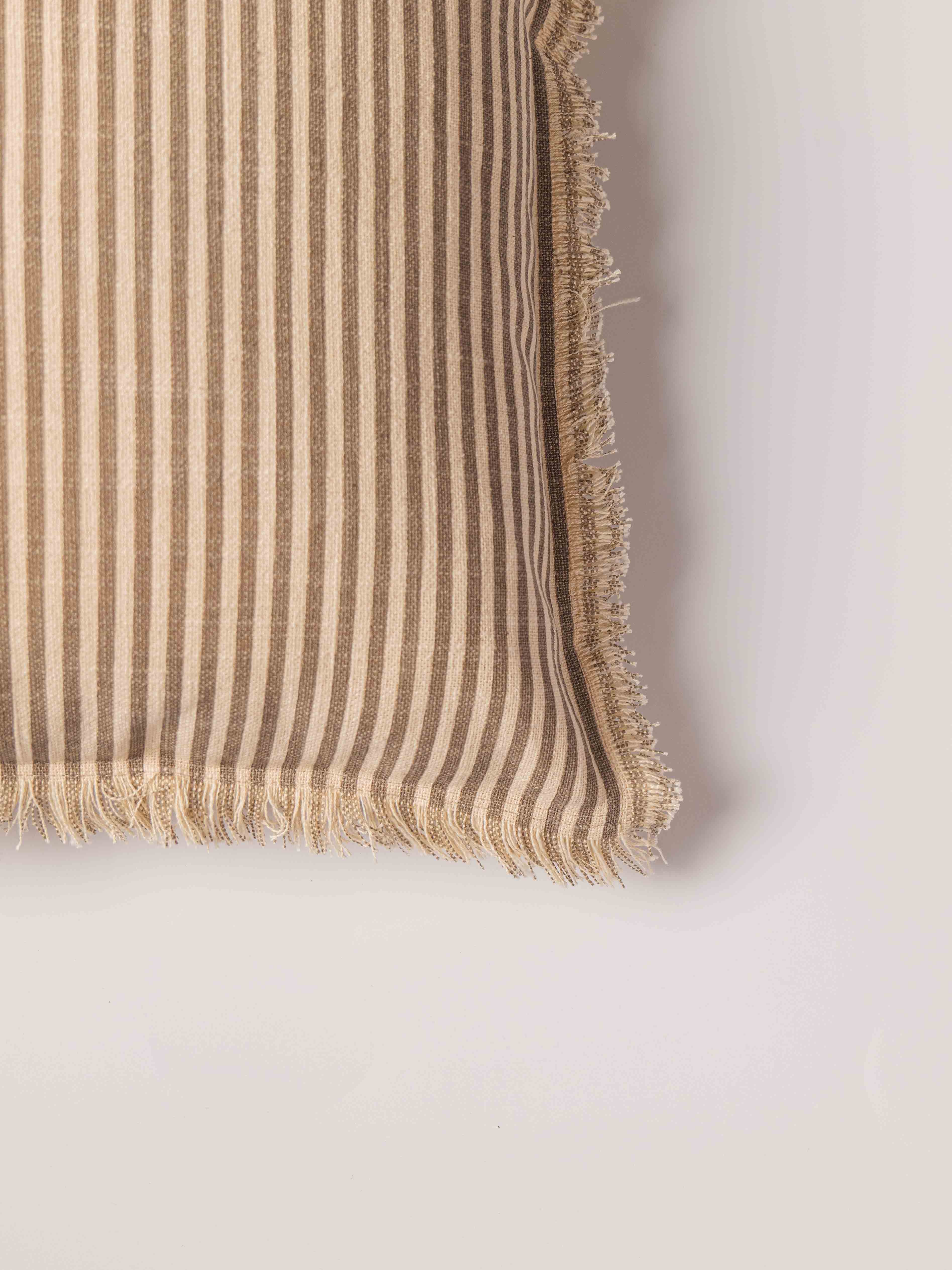 Stripe Fringe Cushion Cover 100% Cotton - Beige