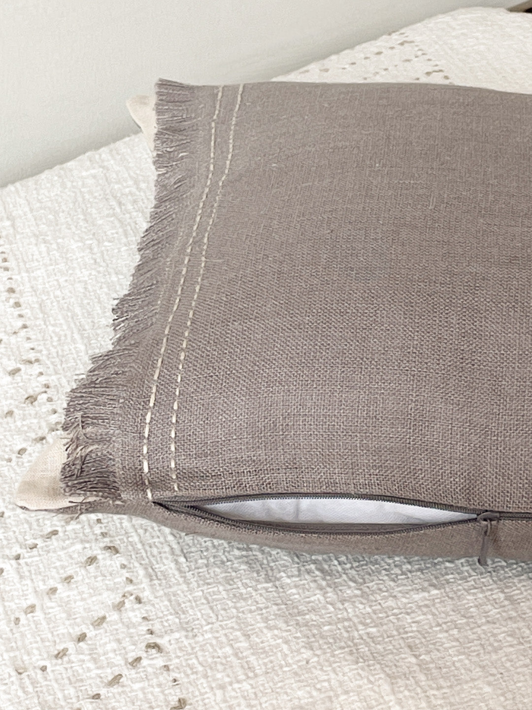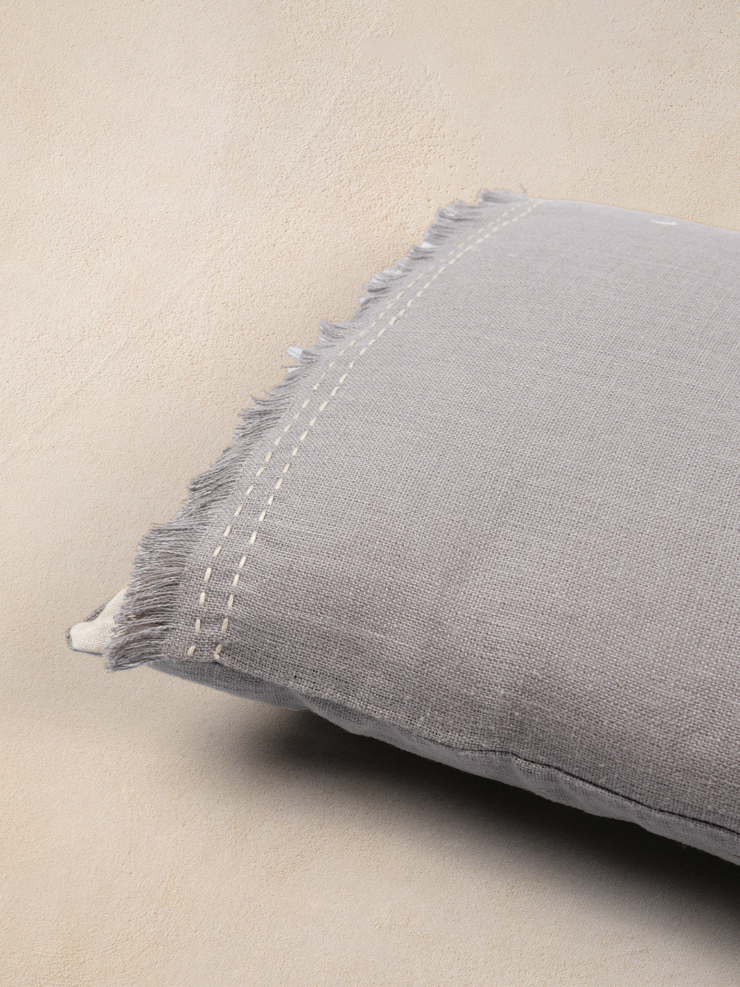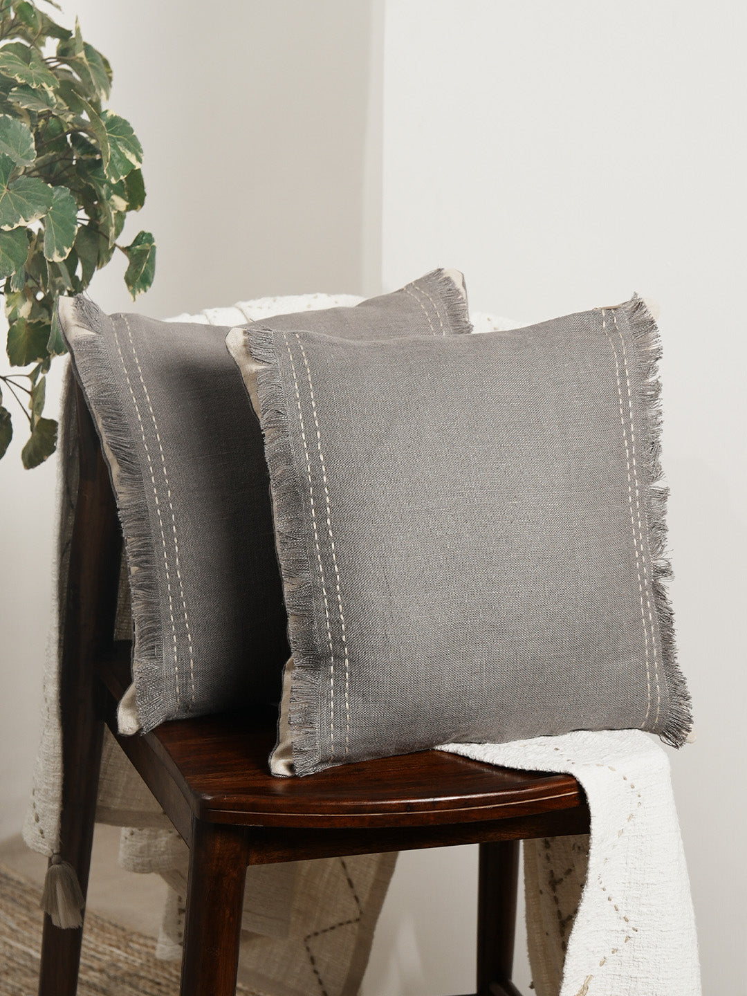 Add sophisticated texture to your living space with the Bergamo Cushion Cover in Dark Grey, crafted from premium 25 Lea heavy linen for exceptional quality and durability. This elegant cushion cover features decorative linen fringes on two sides and distinctive channel line work that adds dimension and visual interest. The rich dark grey tone offers dramatic styling potential, creating a bold accent for various décor schemes. Featuring a hidden zipper closure for a seamless look and easy maintenance, this cushion cover is as practical as it is stylish.