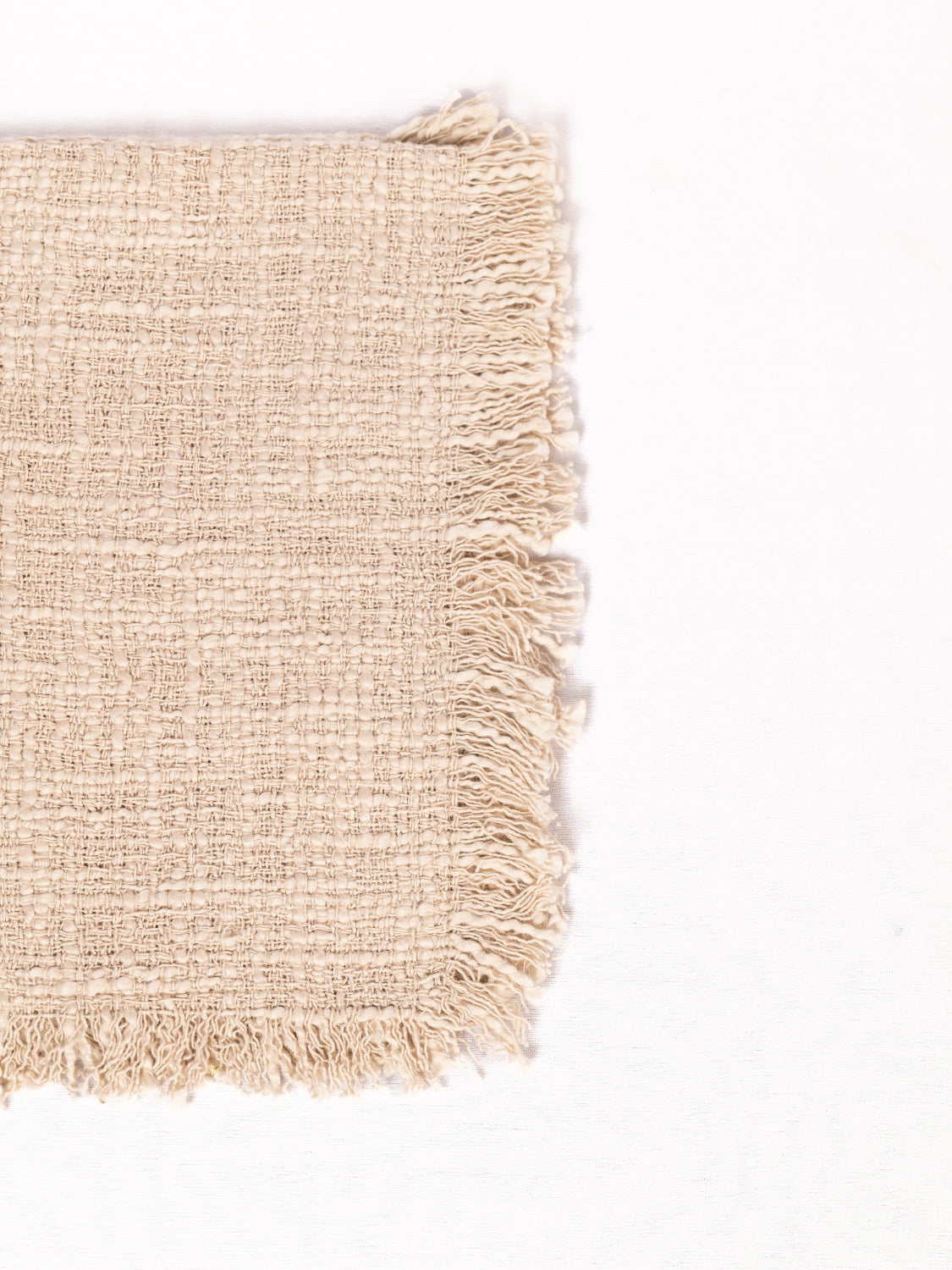 Elevate your dining experience with the AMORADA Tandem Napkin Set, crafted from high-quality 100% cotton for exceptional softness and durability. Available in sets of 4 and 6, each napkin measures 45 cm x 45 cm and features charming fringes that add texture and visual interest to your table setting. The soothing beige color complements any dining décor, making these napkins a versatile addition to both everyday meals and special occasions.