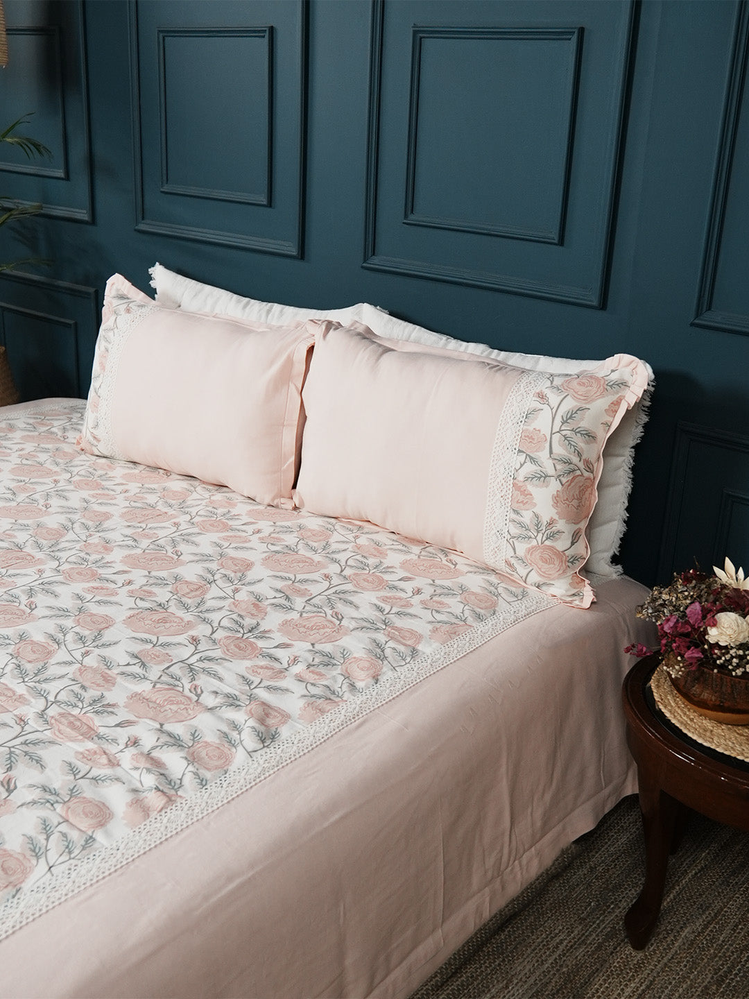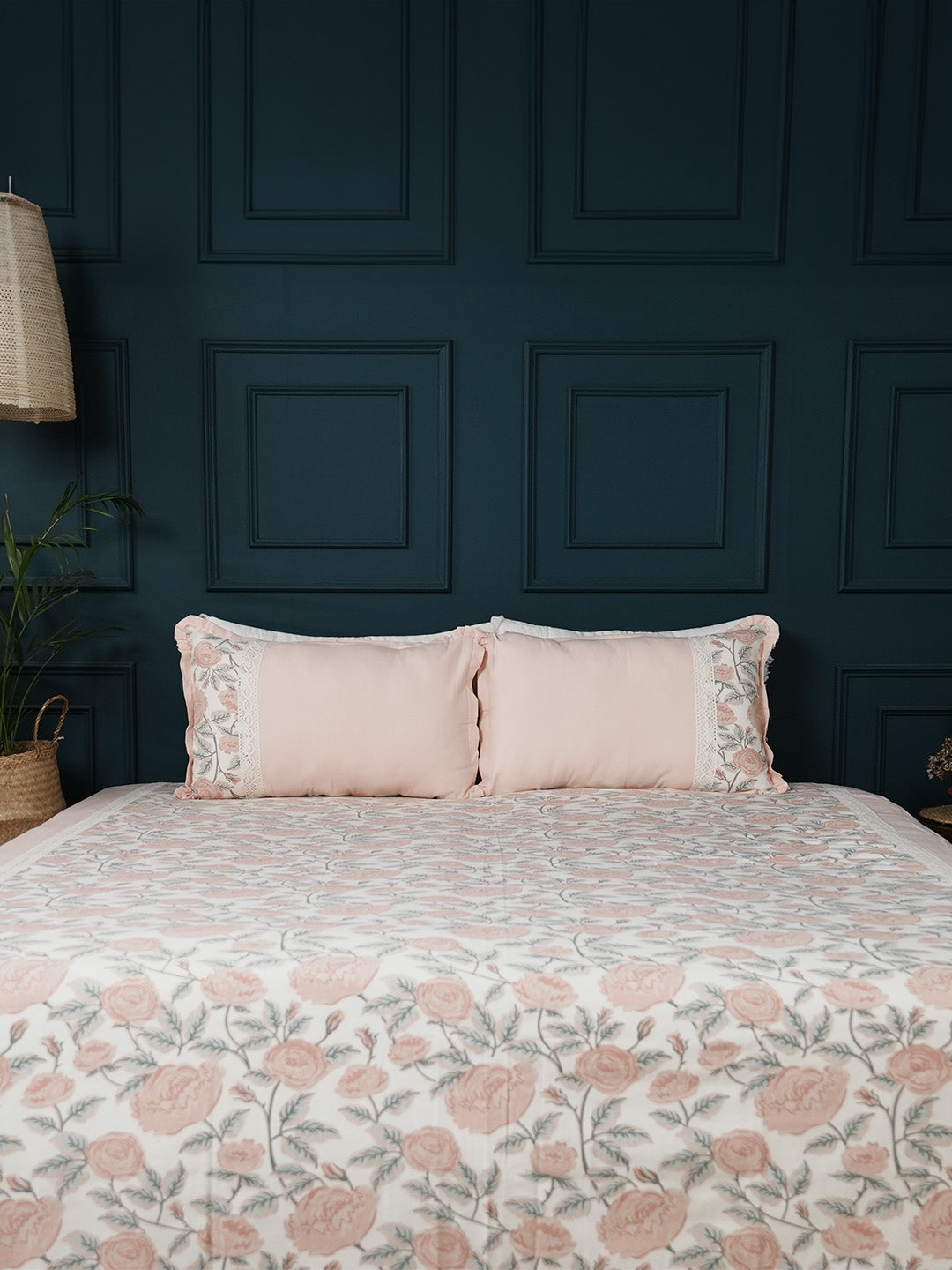 Envelop yourself in cloud-like comfort with our AMORADA Blossom Peach Down-Filled Luxury Quilt. This exceptional bedding features premium down filling encased in buttery-soft light pink fabric, creating the perfect balance of weightless warmth and delicate beauty. The subtle peach blossom pattern adds gentle visual interest while maintaining a sophisticated, serene aesthetic.