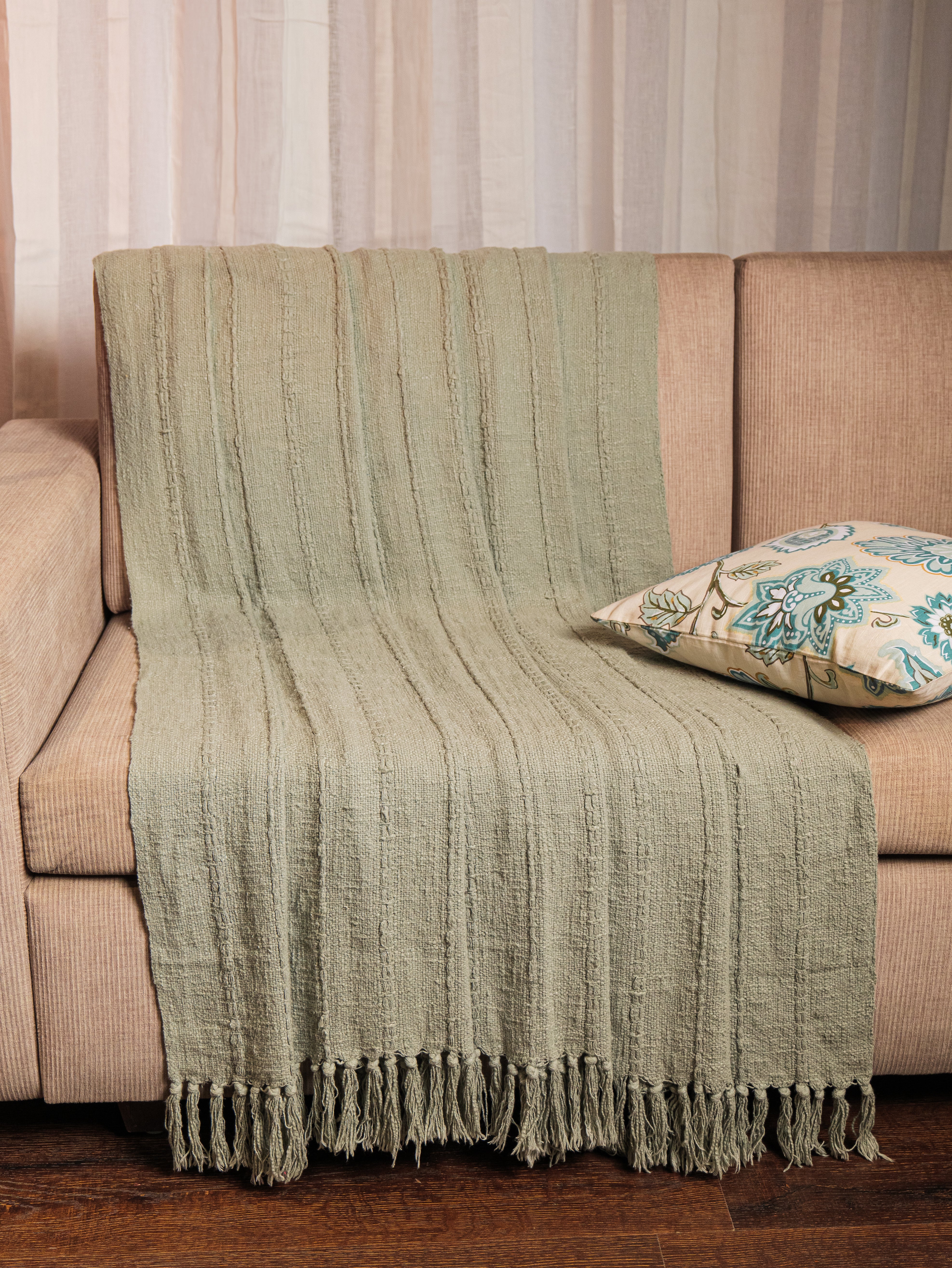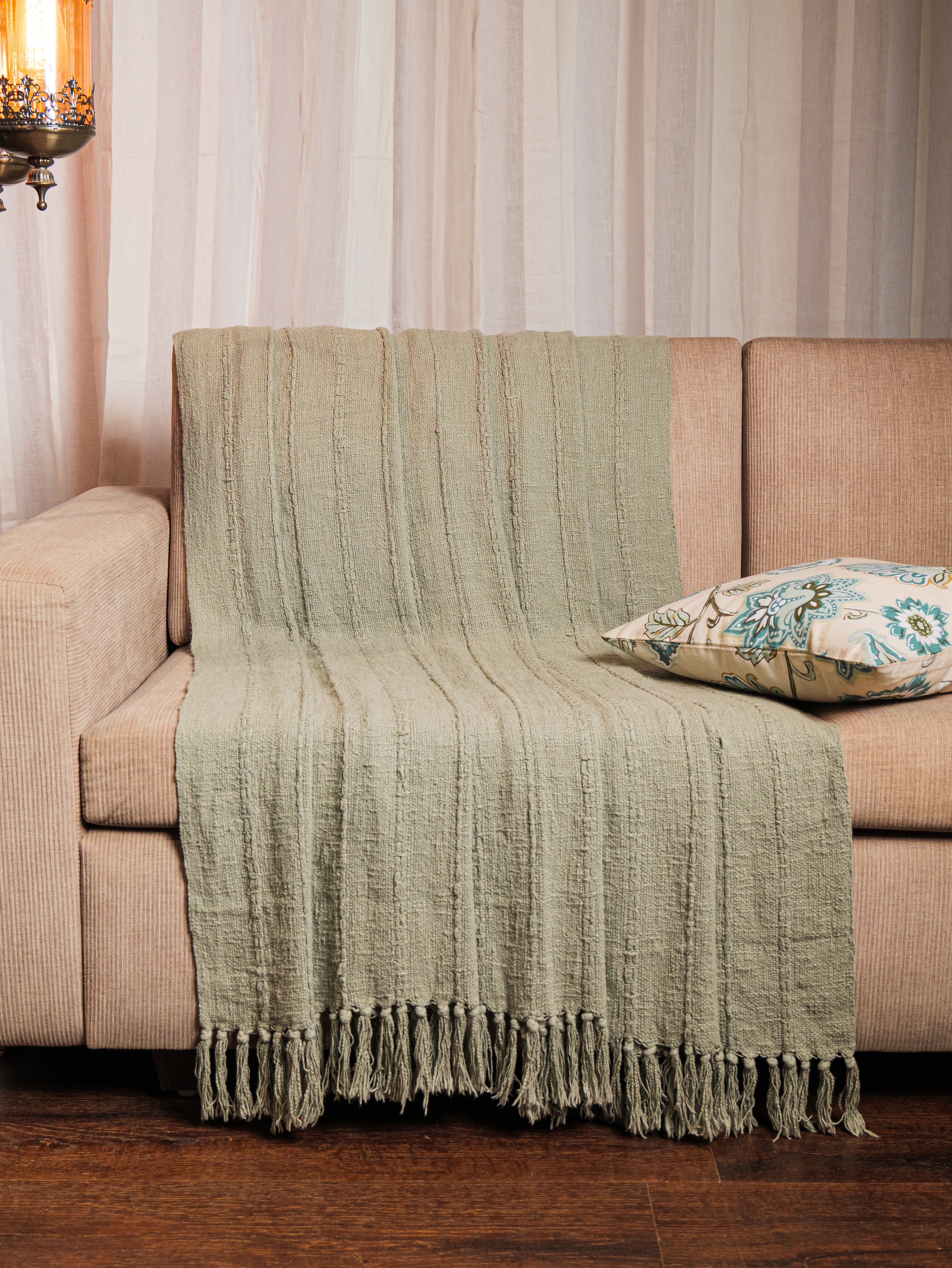 Add a touch of sophisticated comfort to your home with the Textured Cotton Woven Throw Blanket in Sage. This elegant throw is crafted from 100% premium cotton, featuring intricate textured patterns and finished with a luxurious long tassel fringe for added visual interest. Measuring a generous 260 cm x 170 cm, this versatile blanket provides ample coverage whether used on a sofa, chair, or bed.