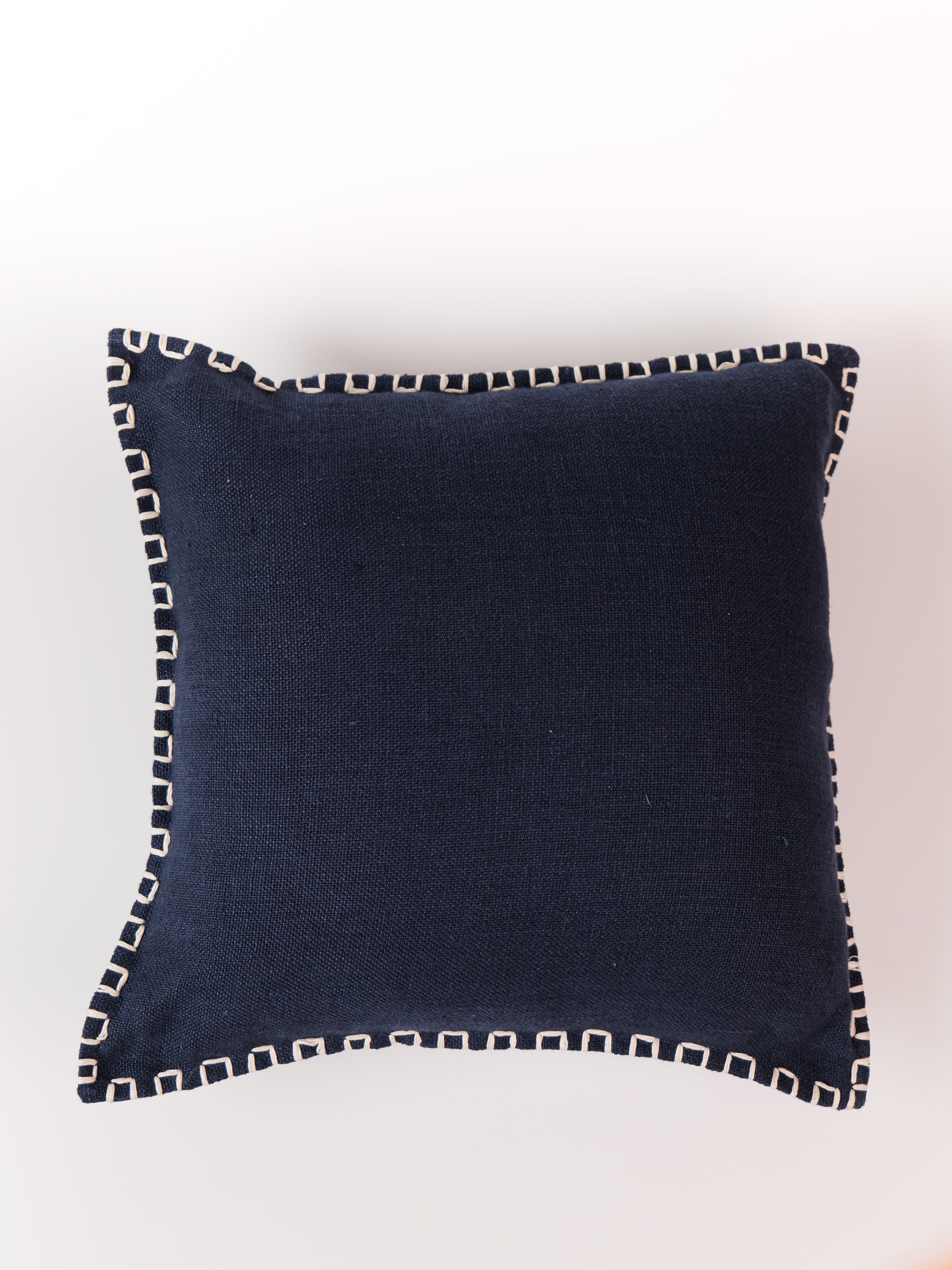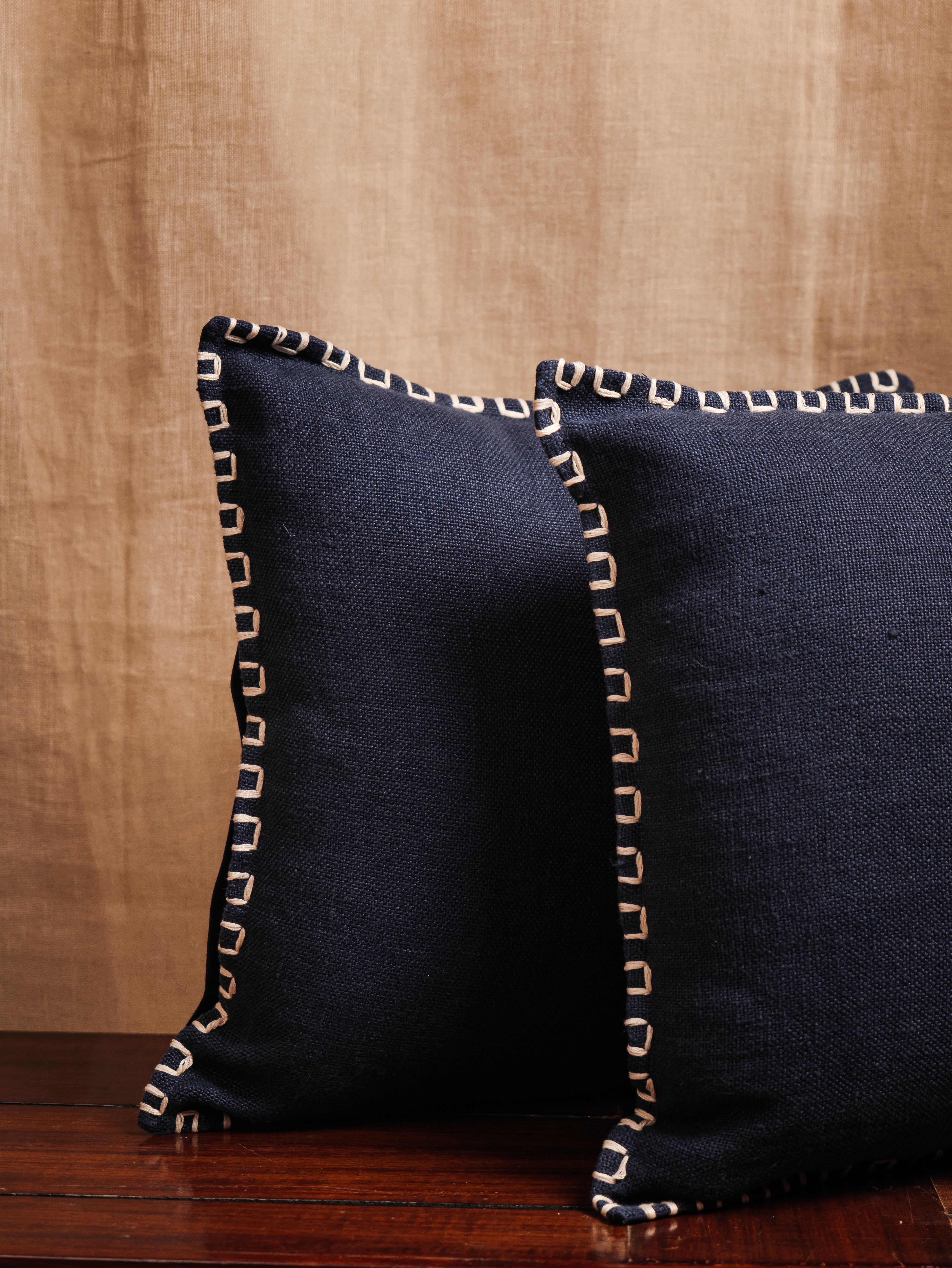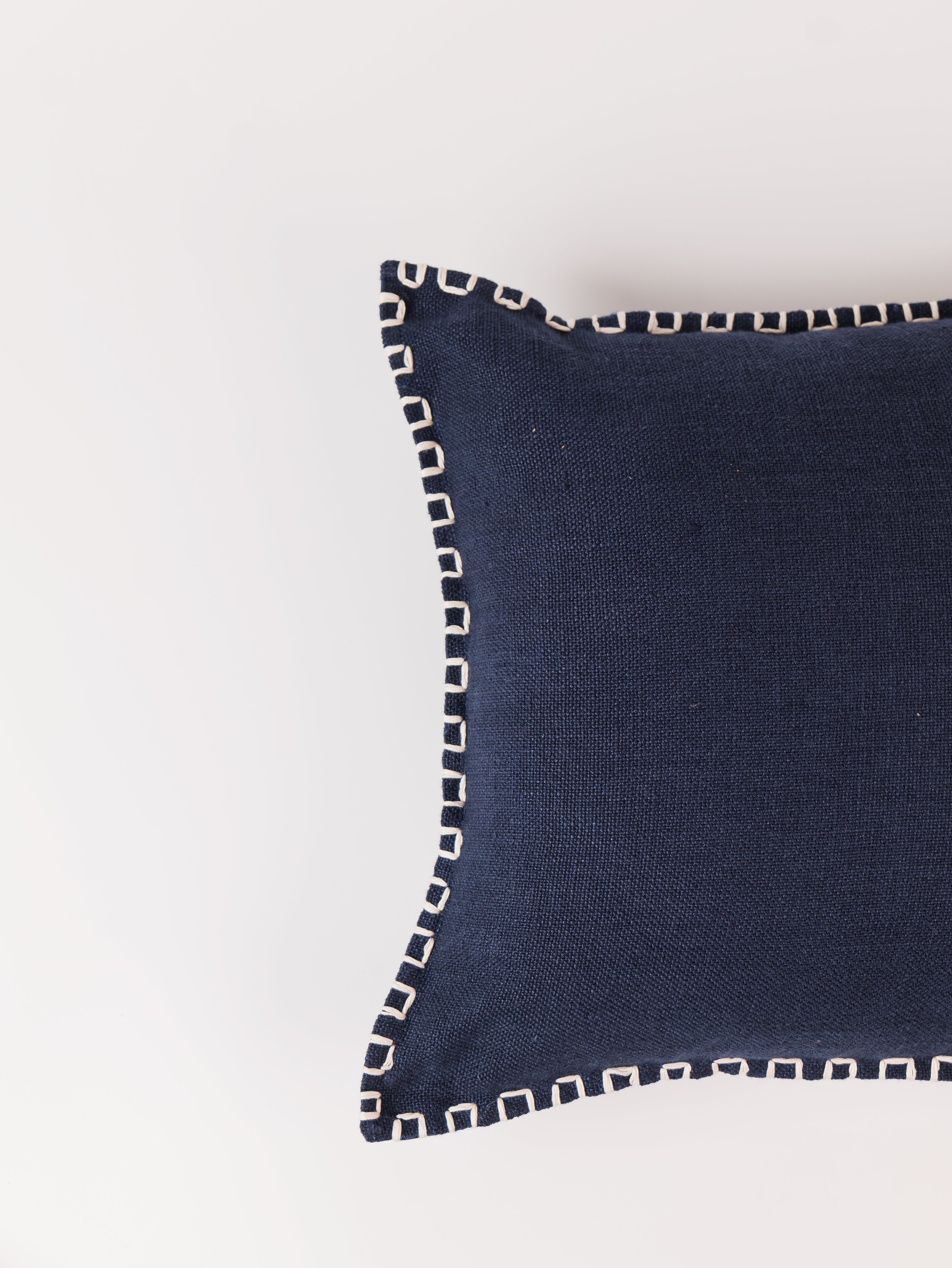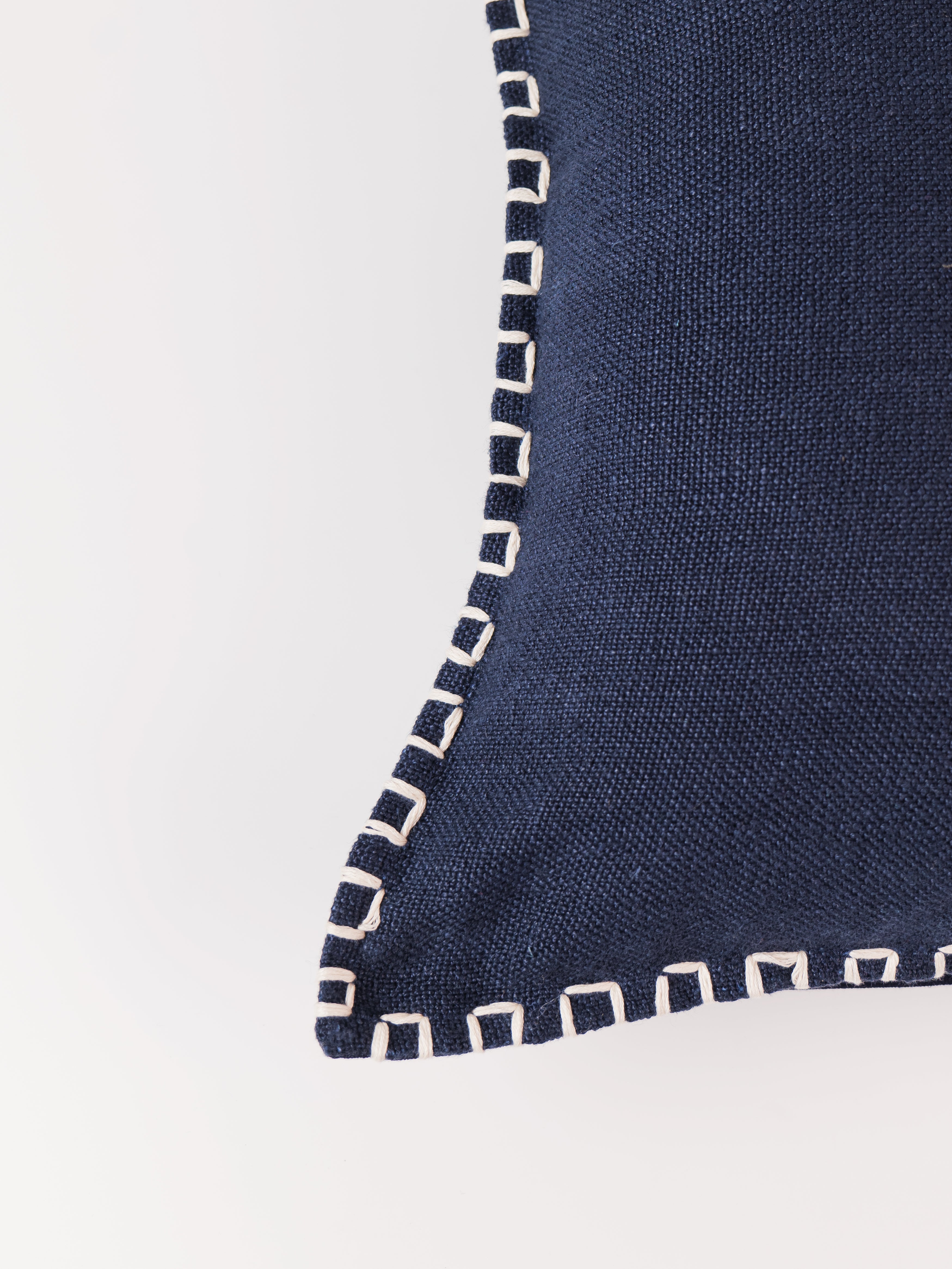 Finch Channel Line (Kantha) Cushion Cover 100% Linen - Blue