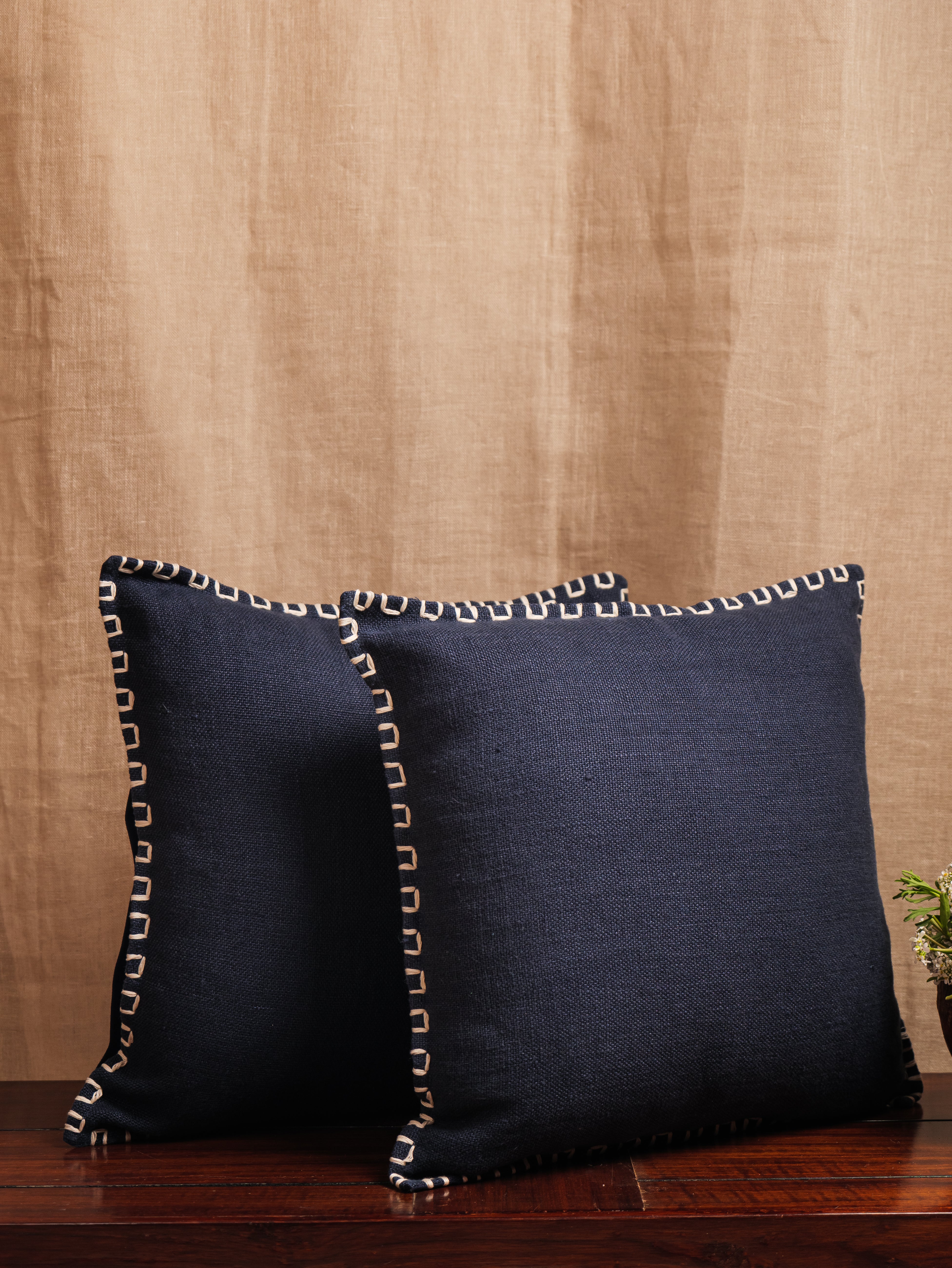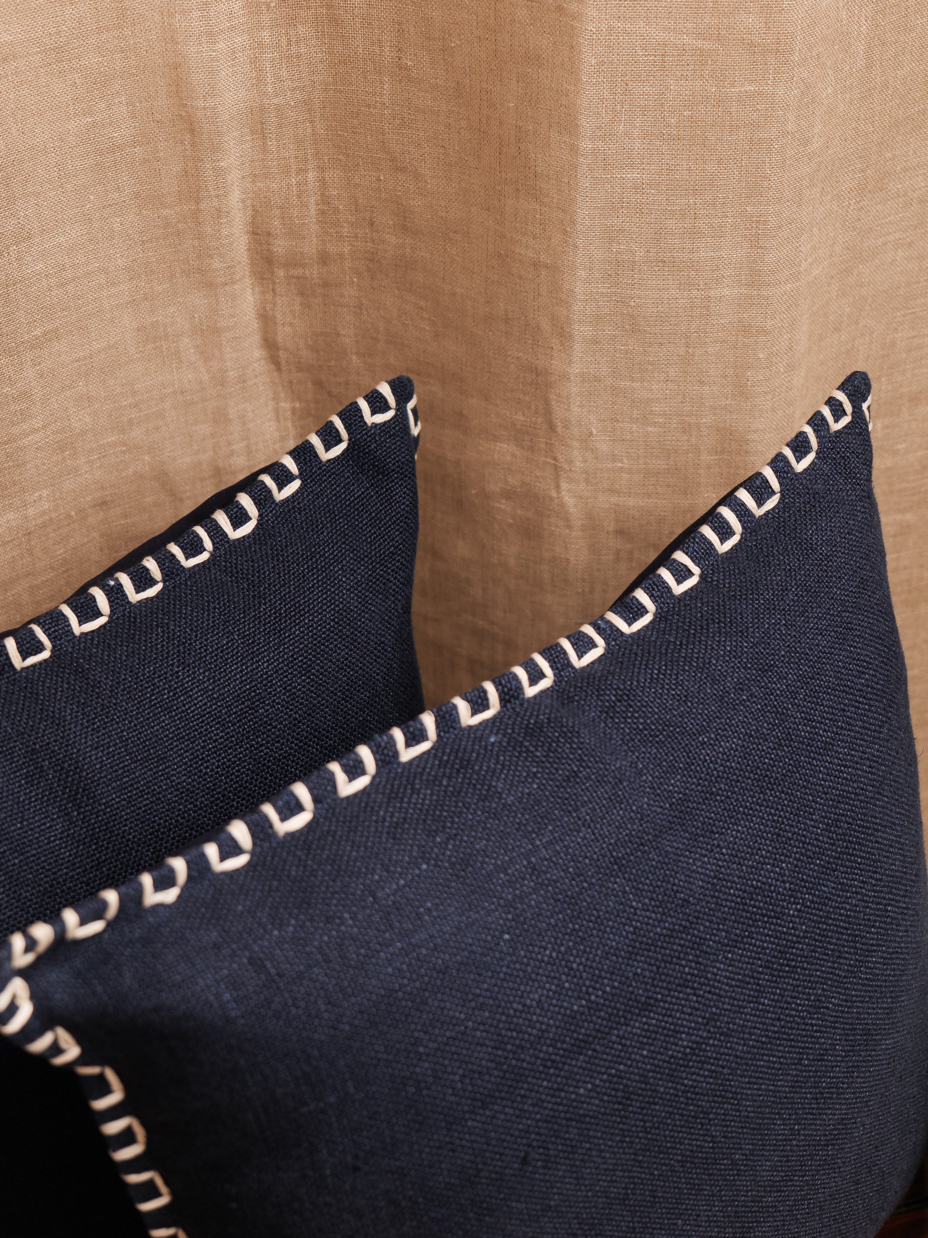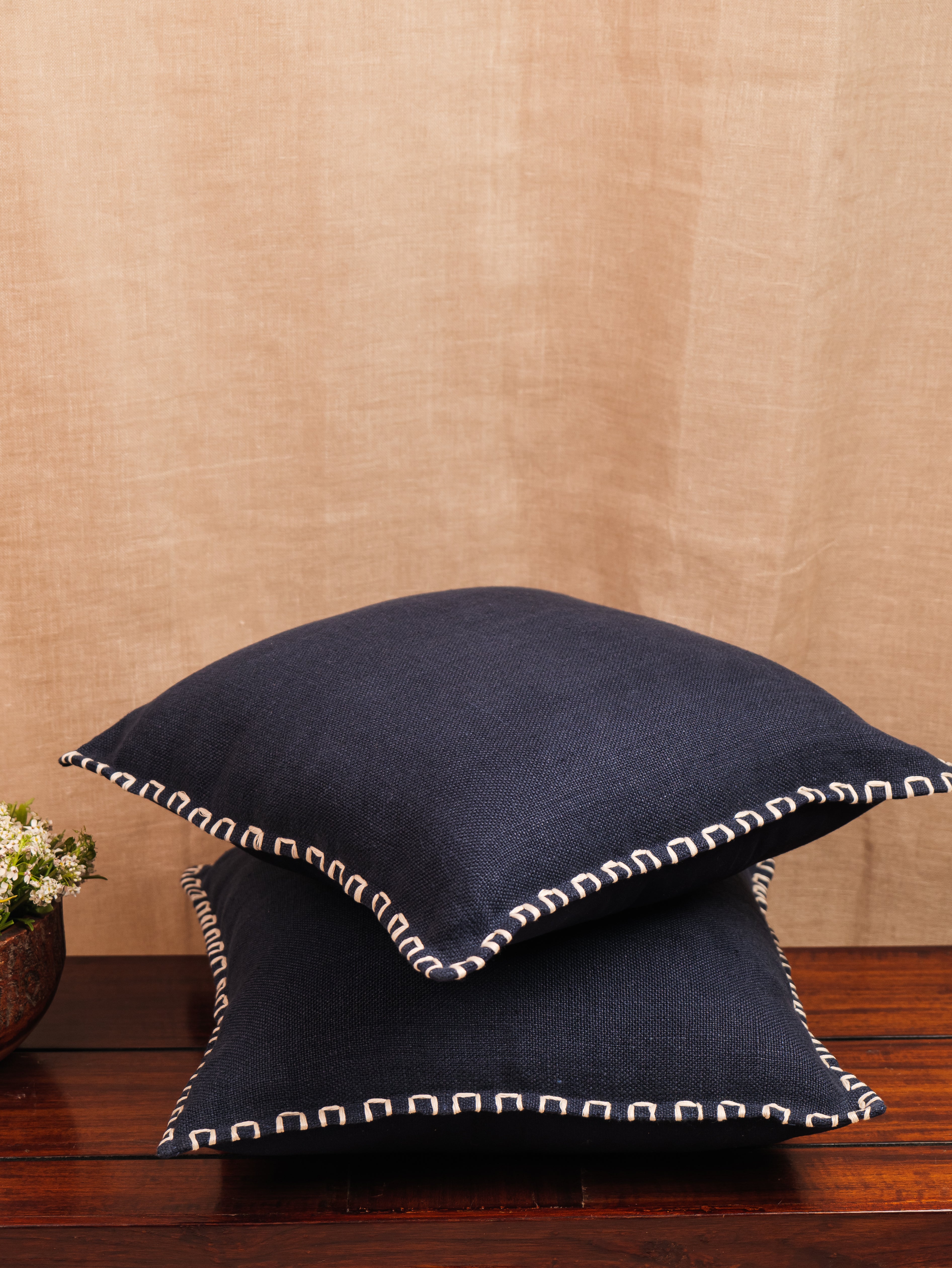 Finch Channel Line (Kantha) Cushion Cover 100% Linen - Blue