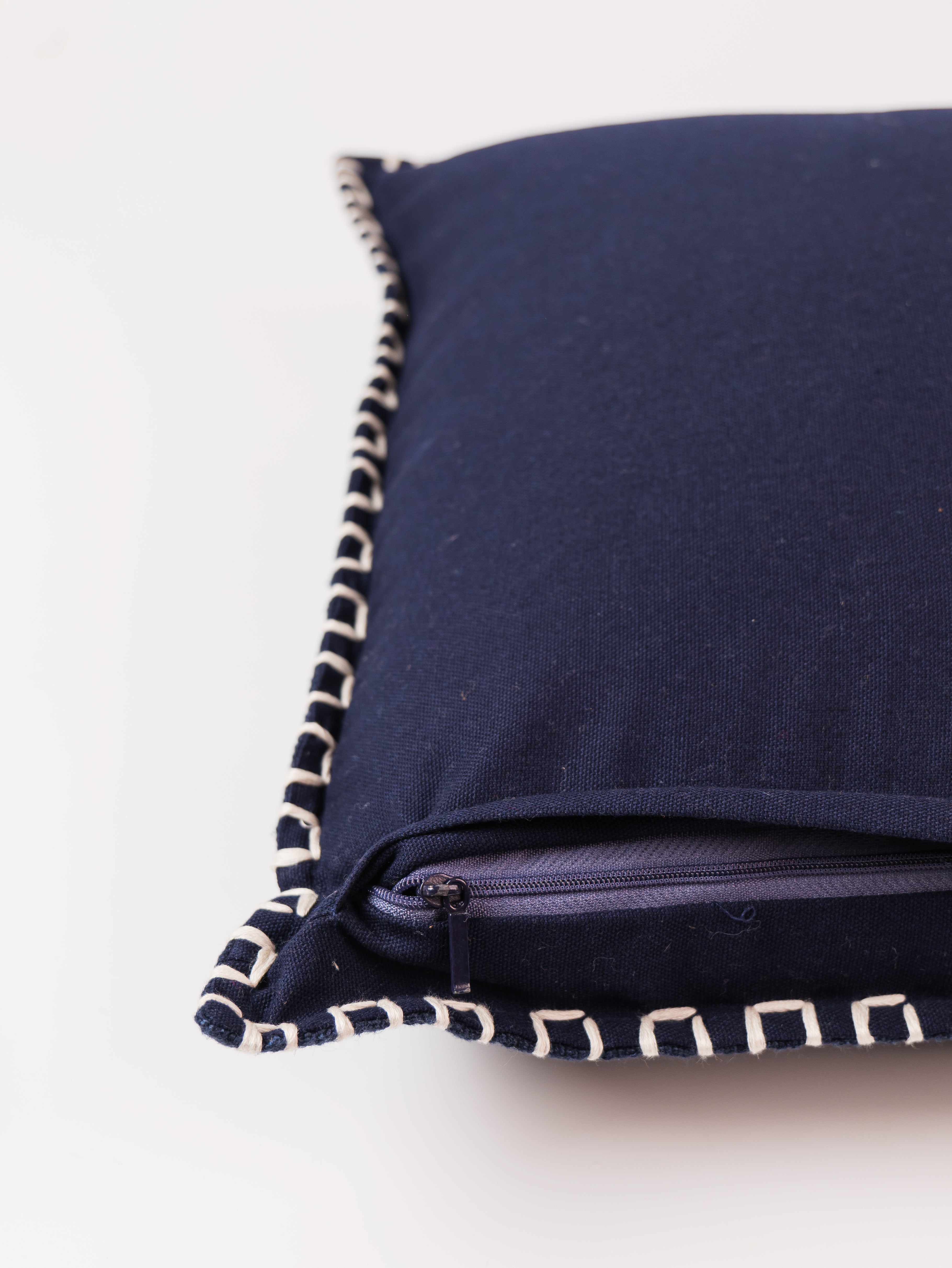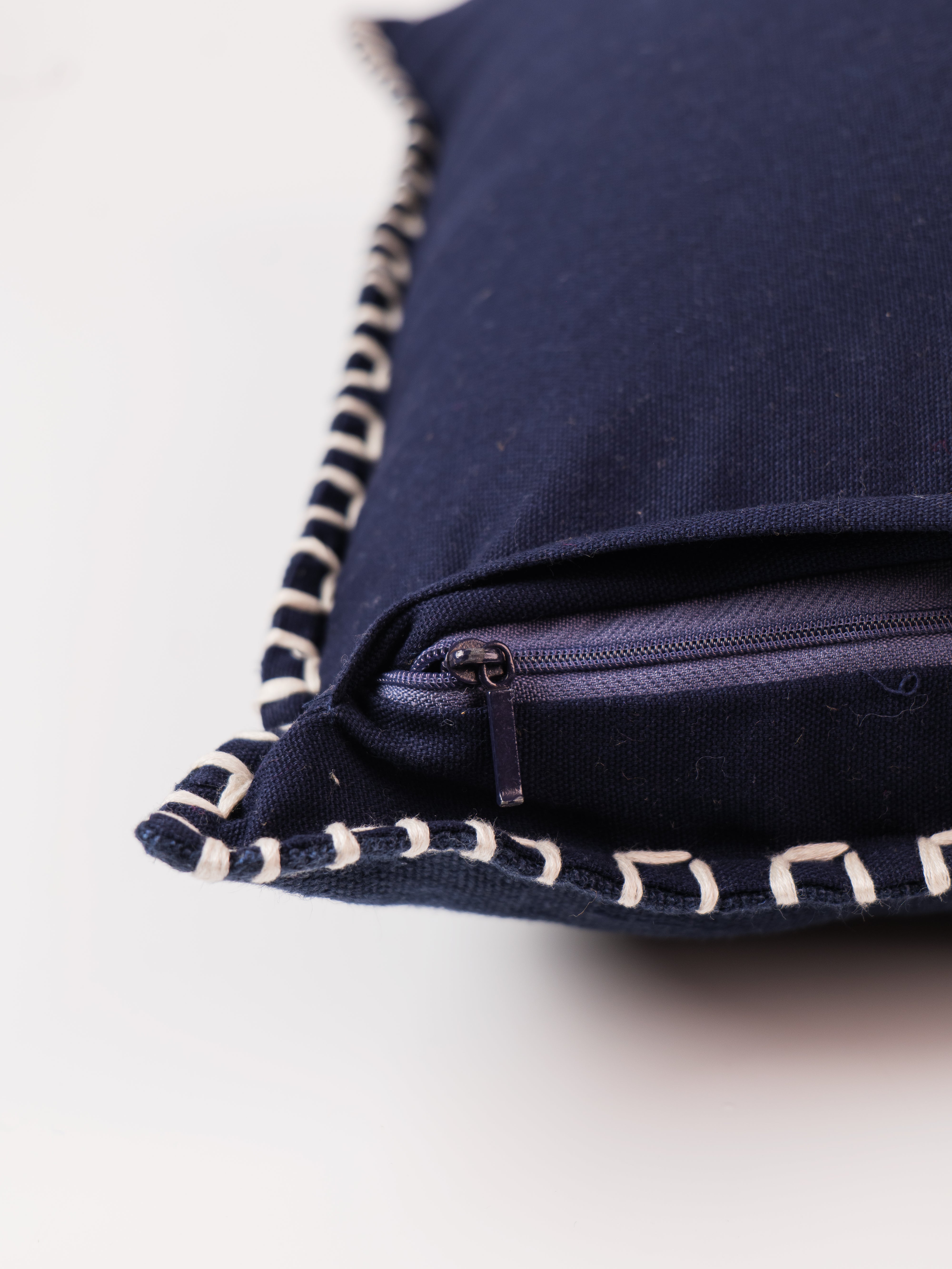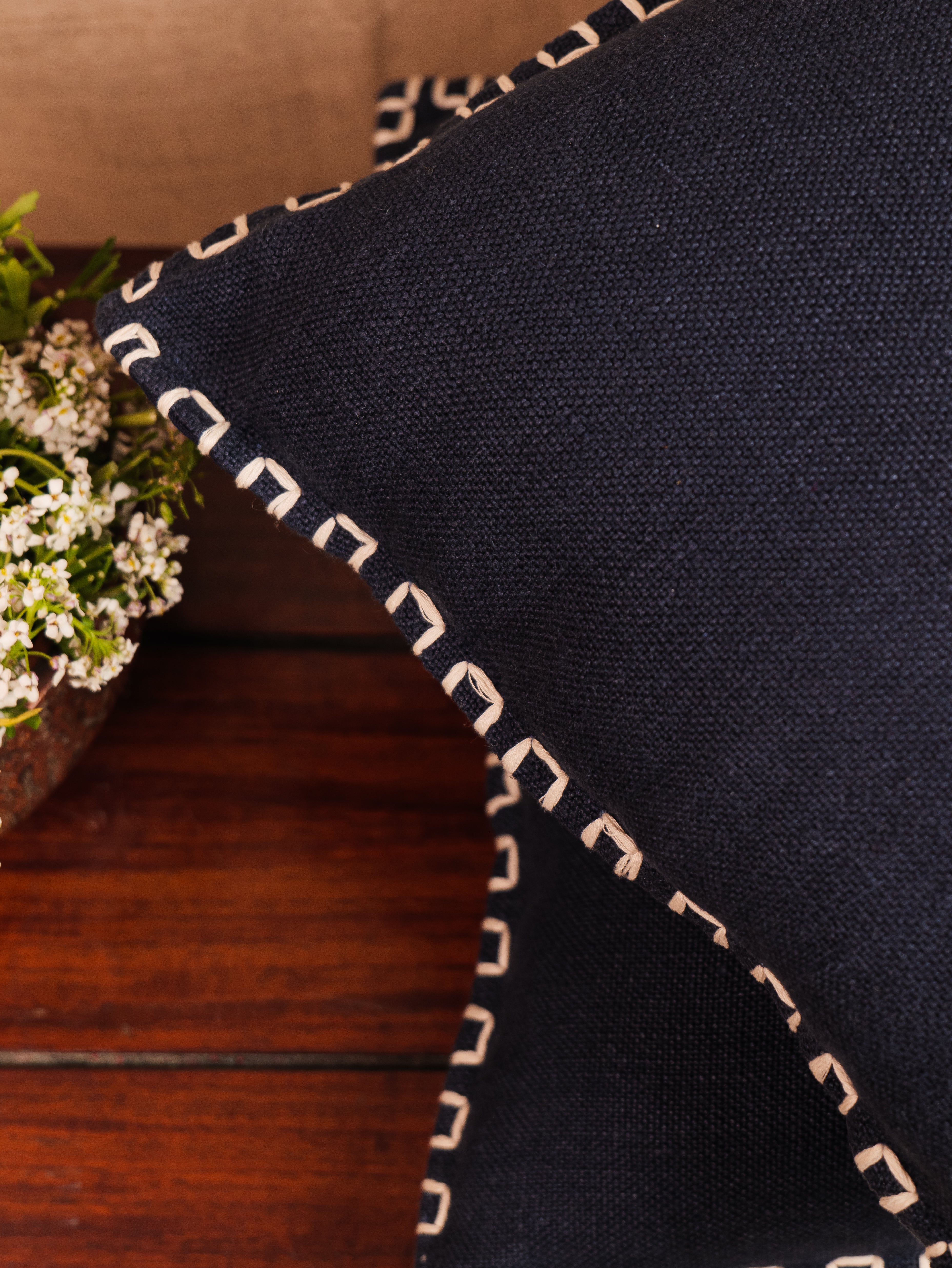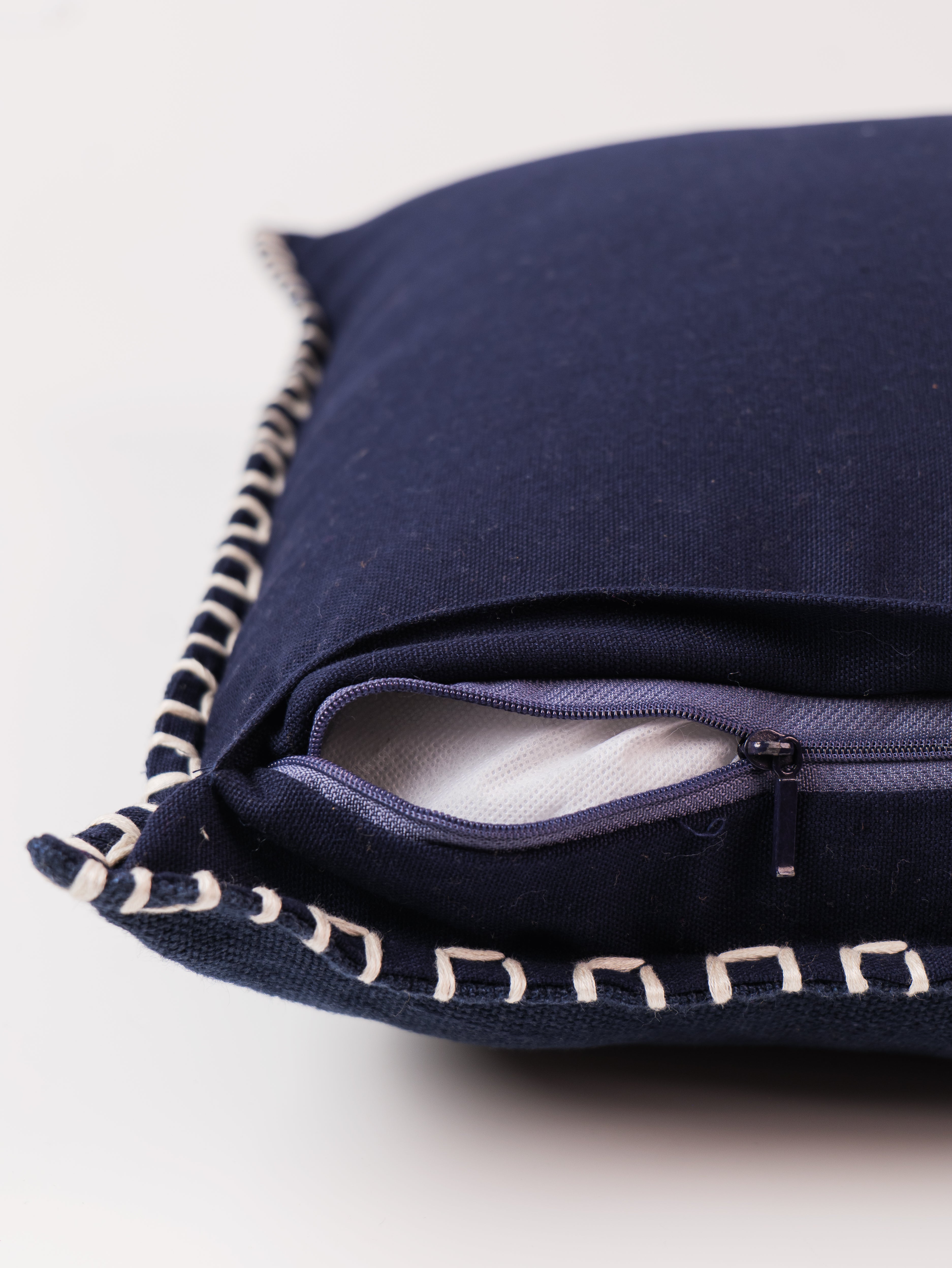 Finch Channel Line (Kantha) Cushion Cover 100% Linen - Blue
