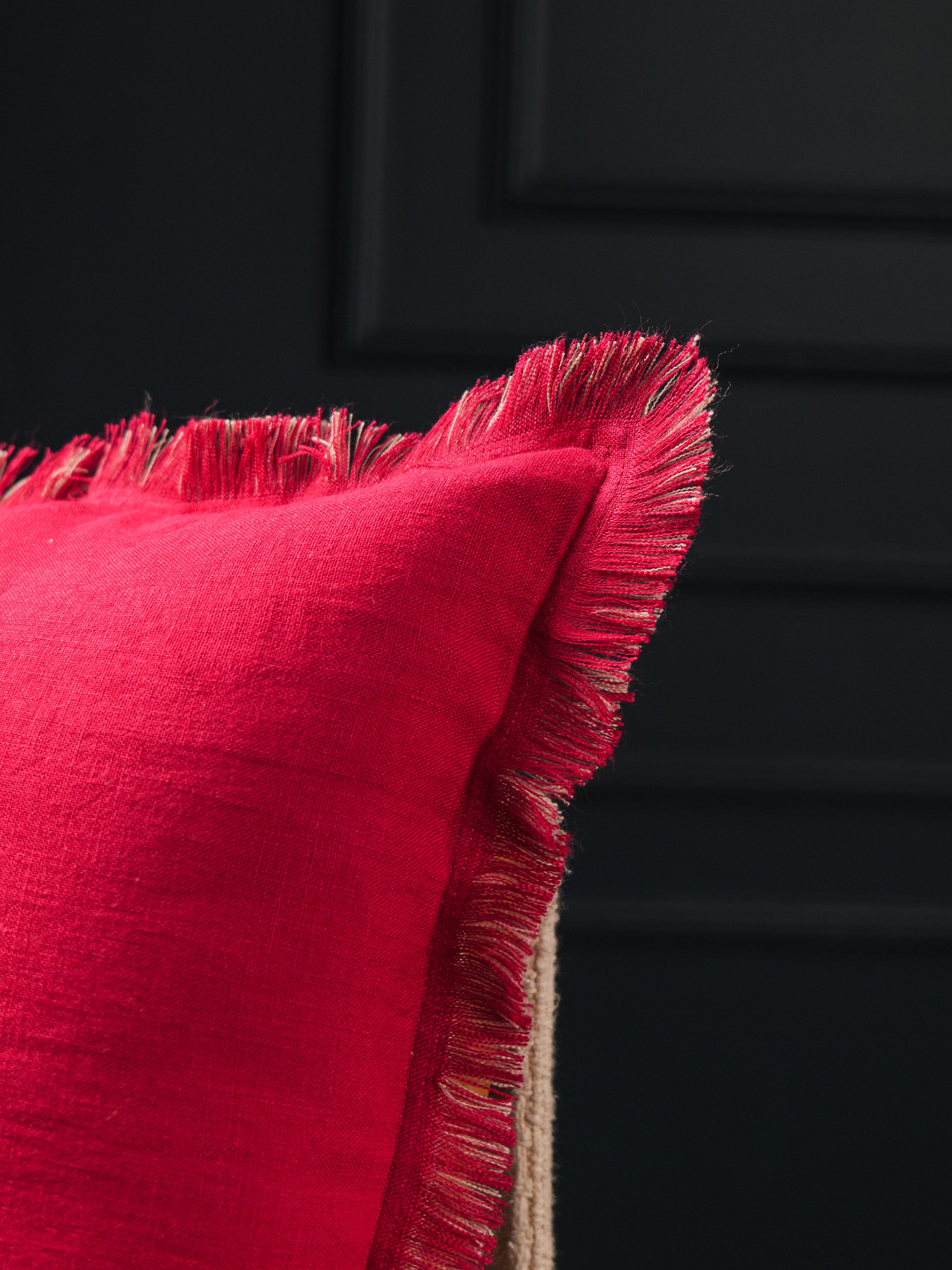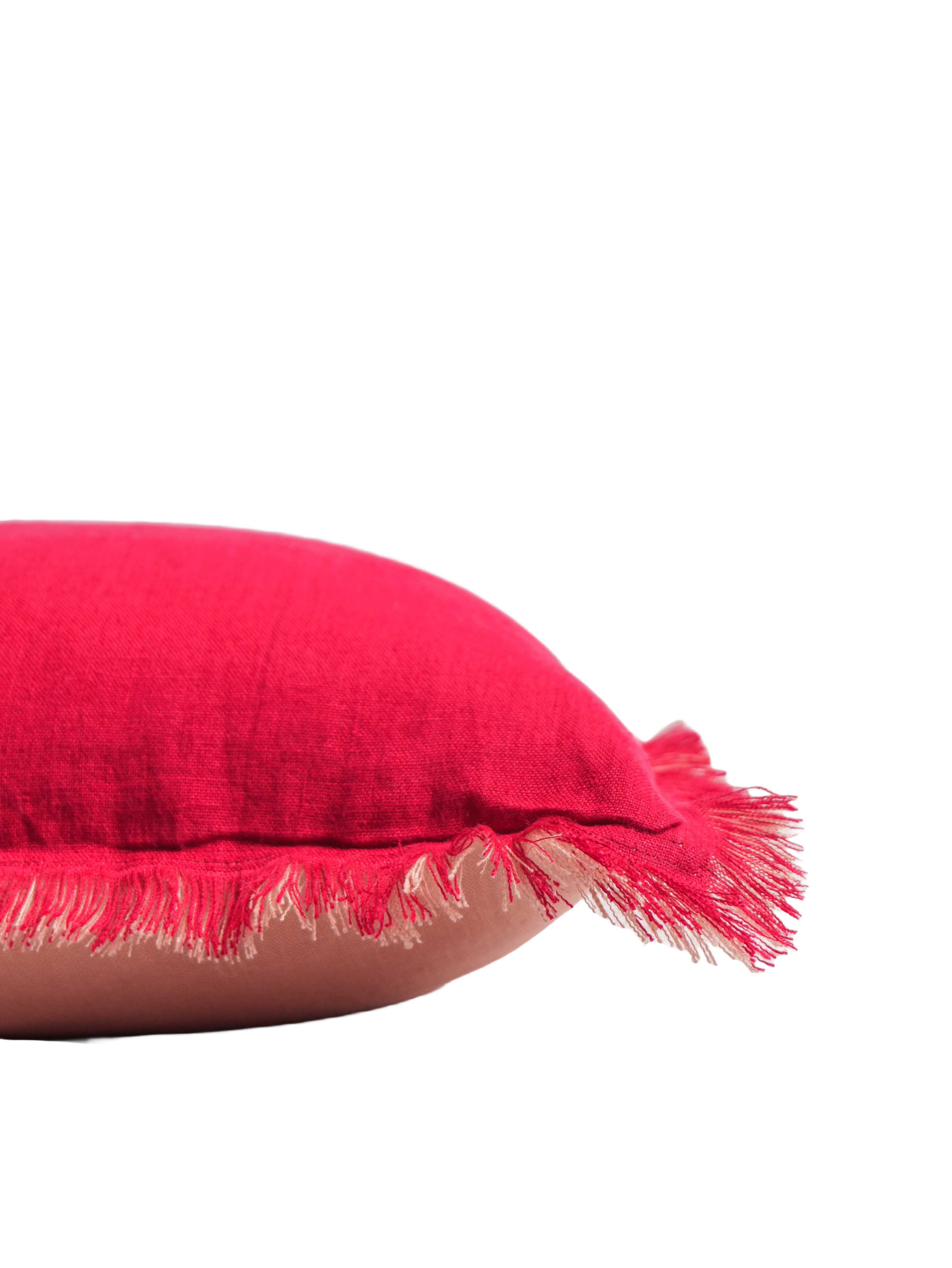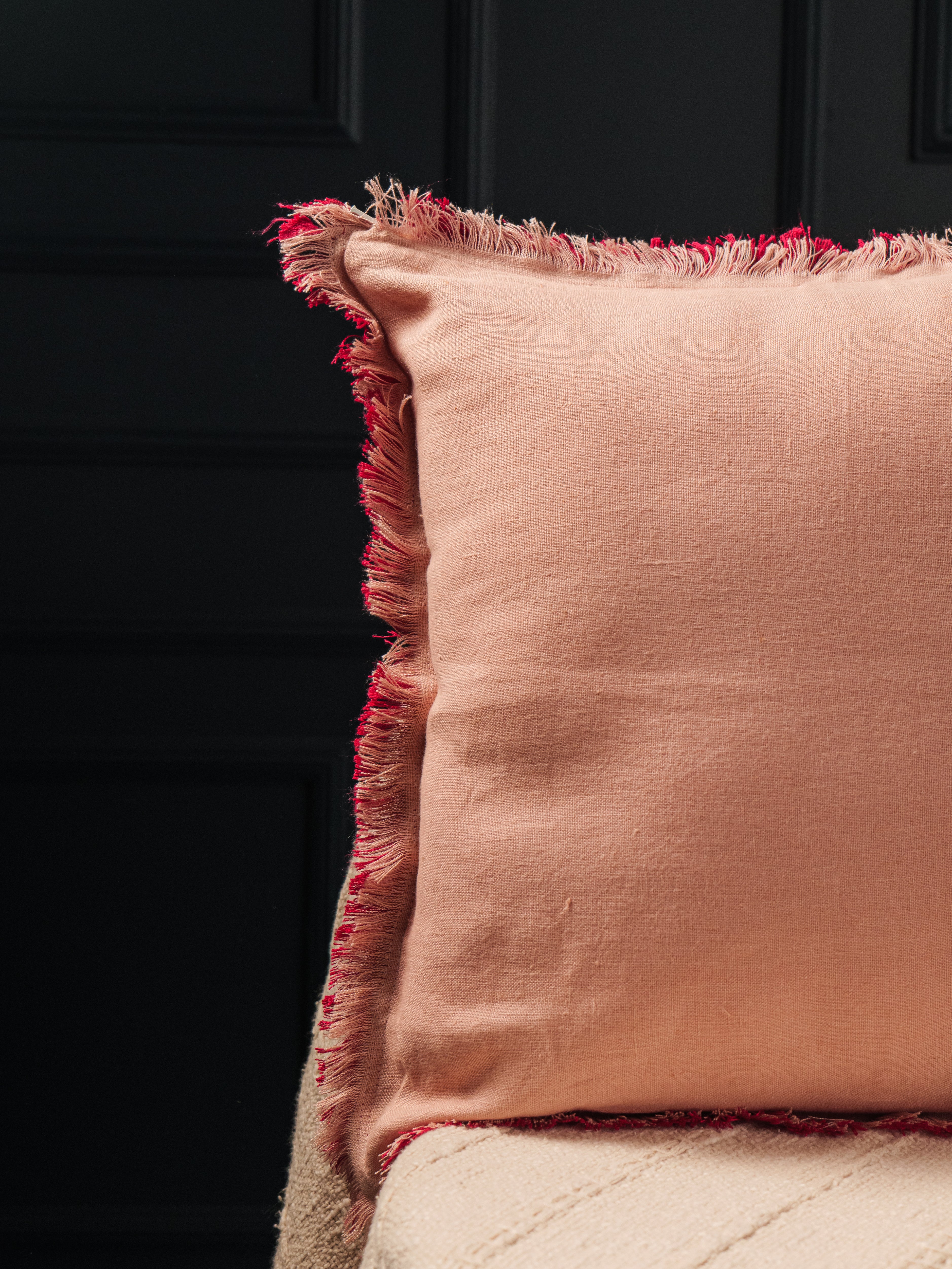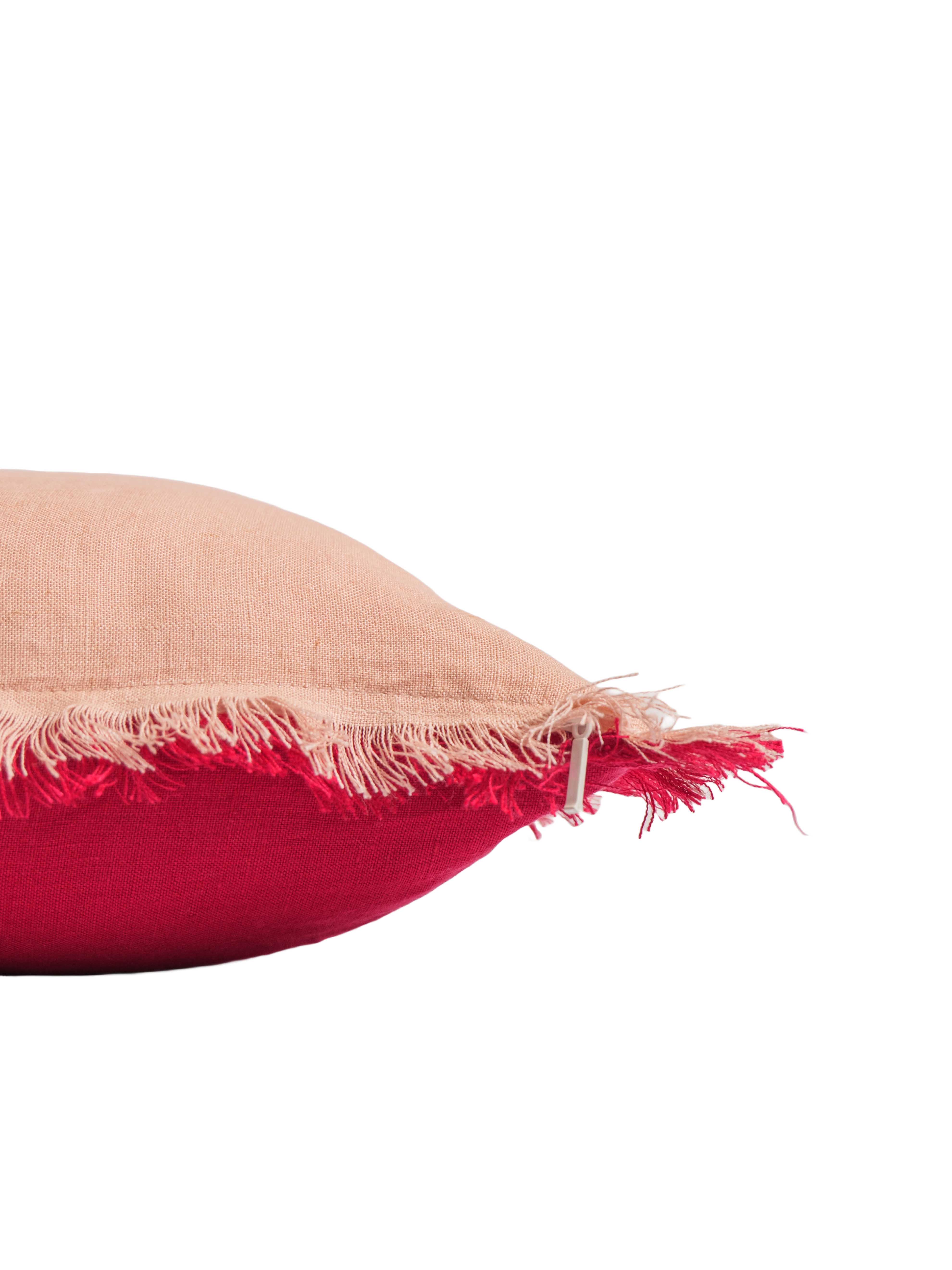 Style this pink linen cushion cover with neutral throws for a minimalist look, or pair it with bold patterns for an eclectic vibe. Its fine craftsmanship and dual-tone design make it a standout piece for any home. Elevate your décor with this cushion cover from AMORADA, offering a perfect blend of style, comfort, and durability."