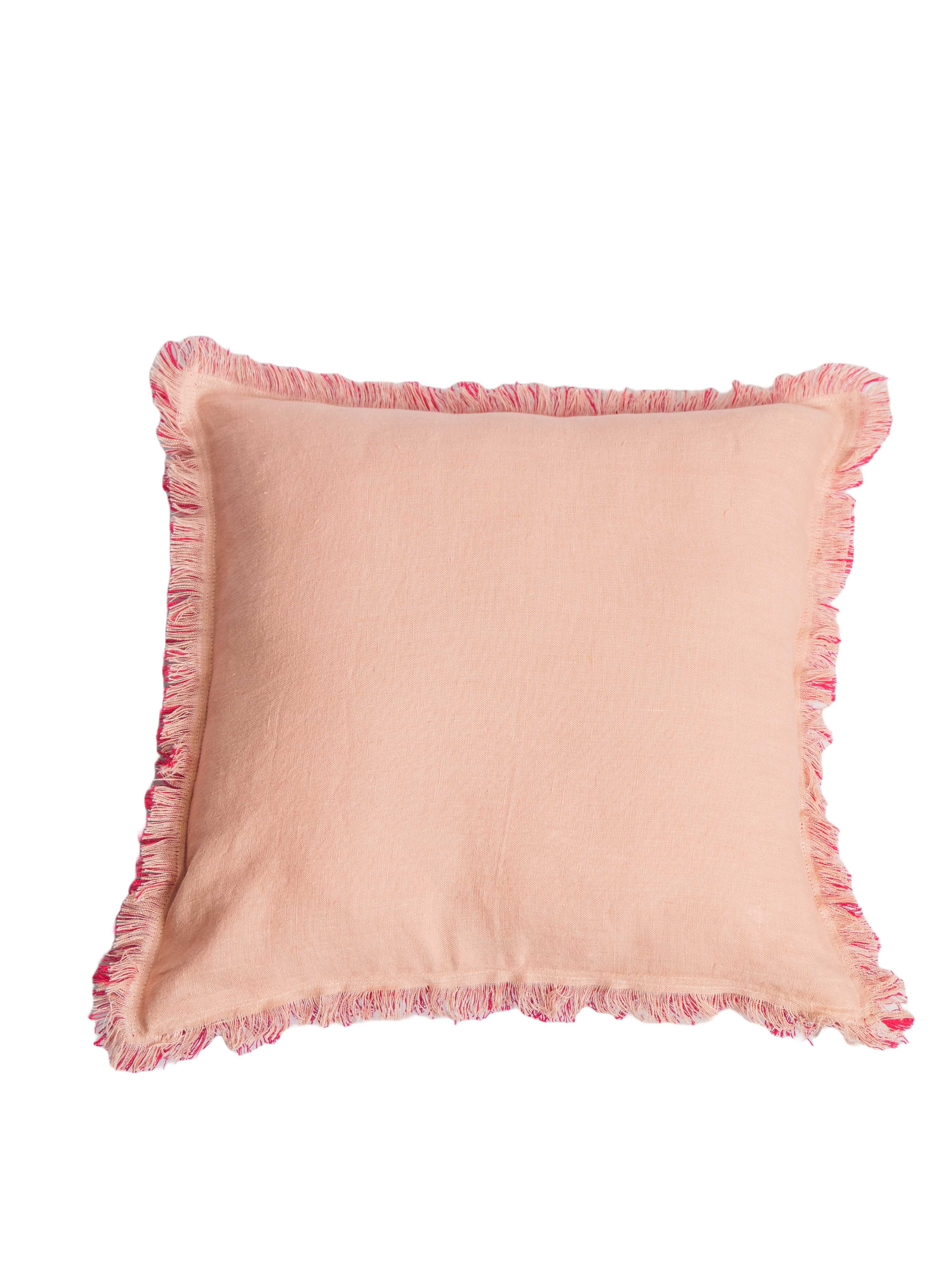Elegant Detailing: Linen fringes on all sides add a refined touch with a hidden zipper closure