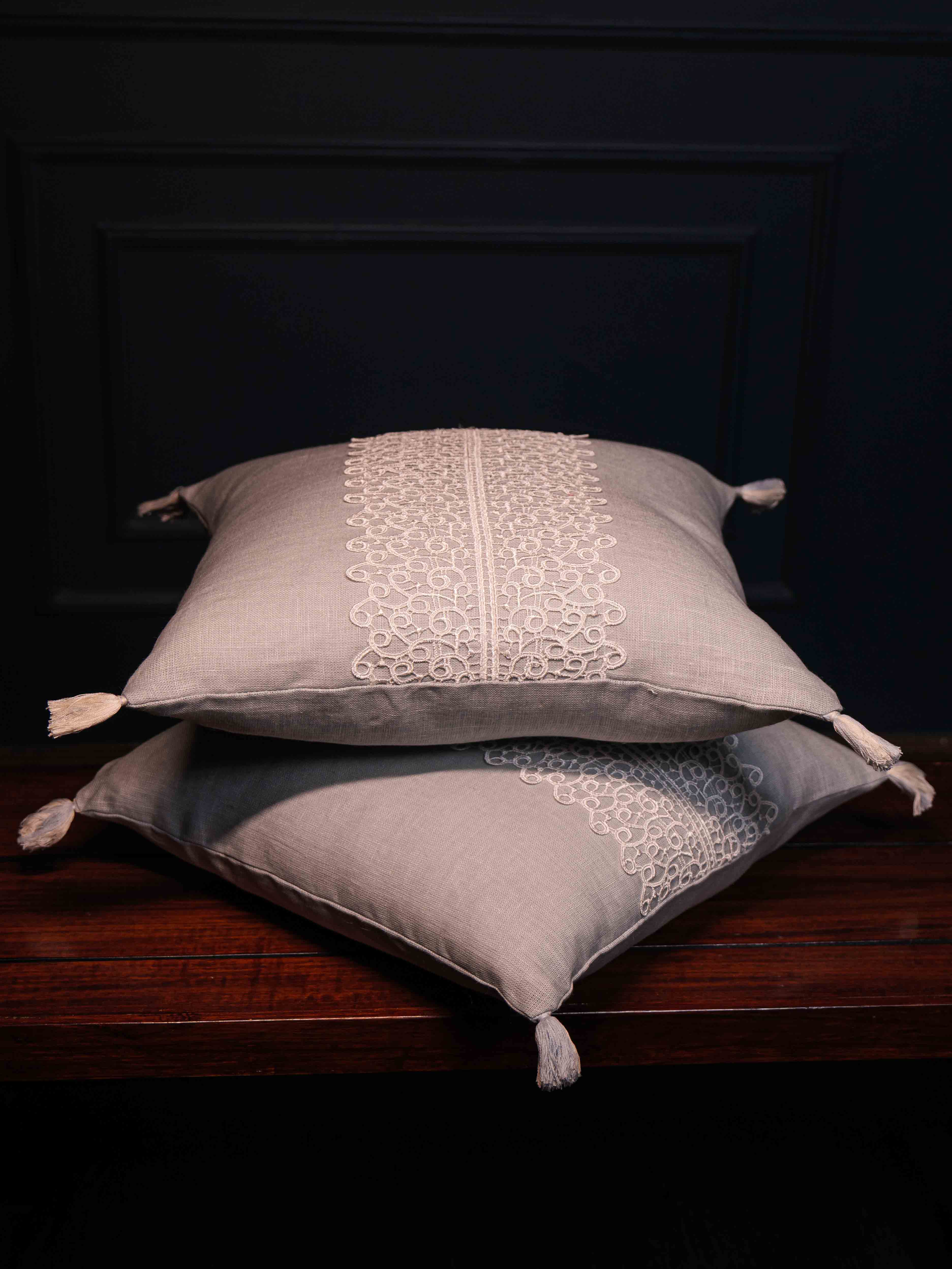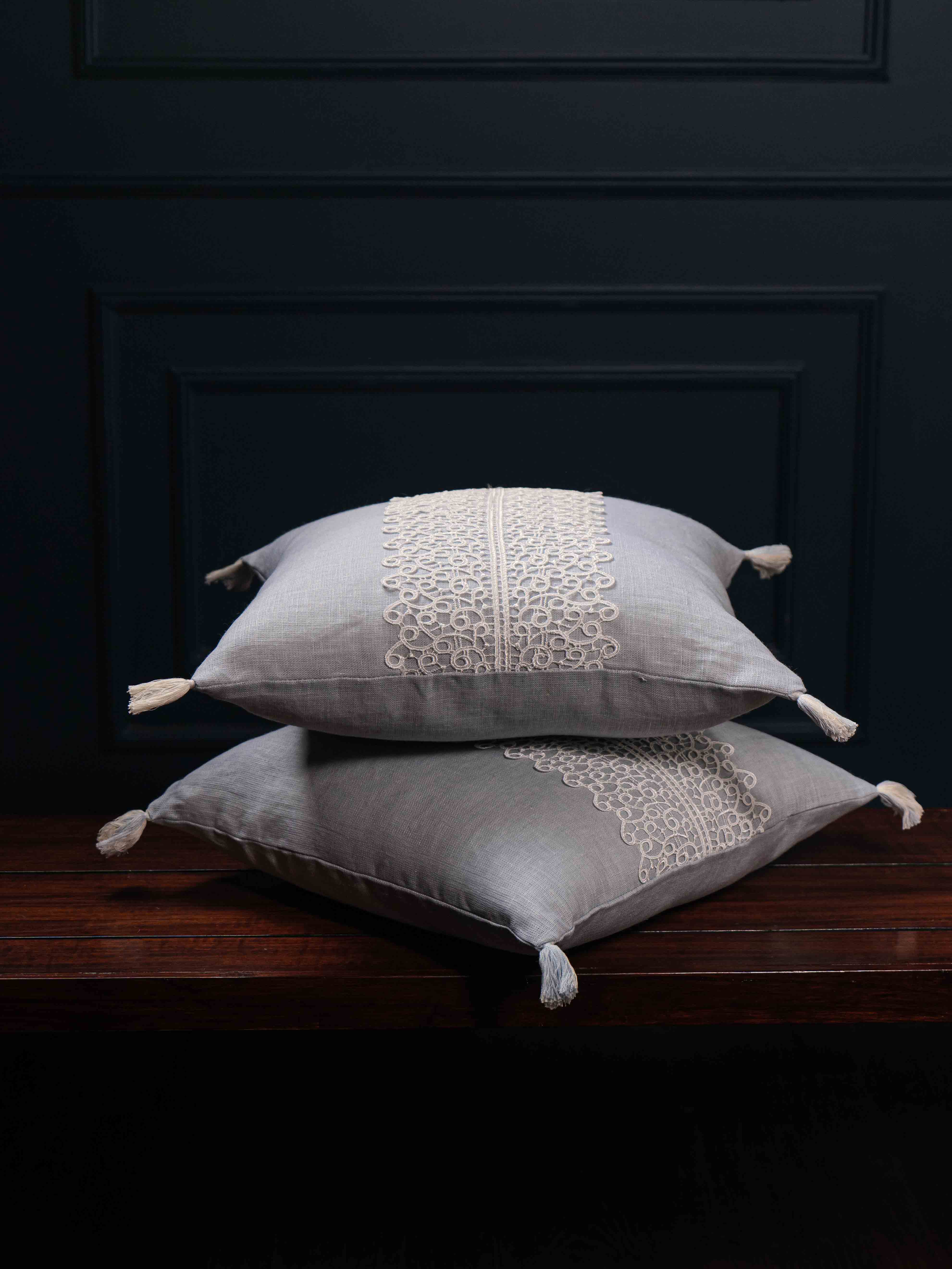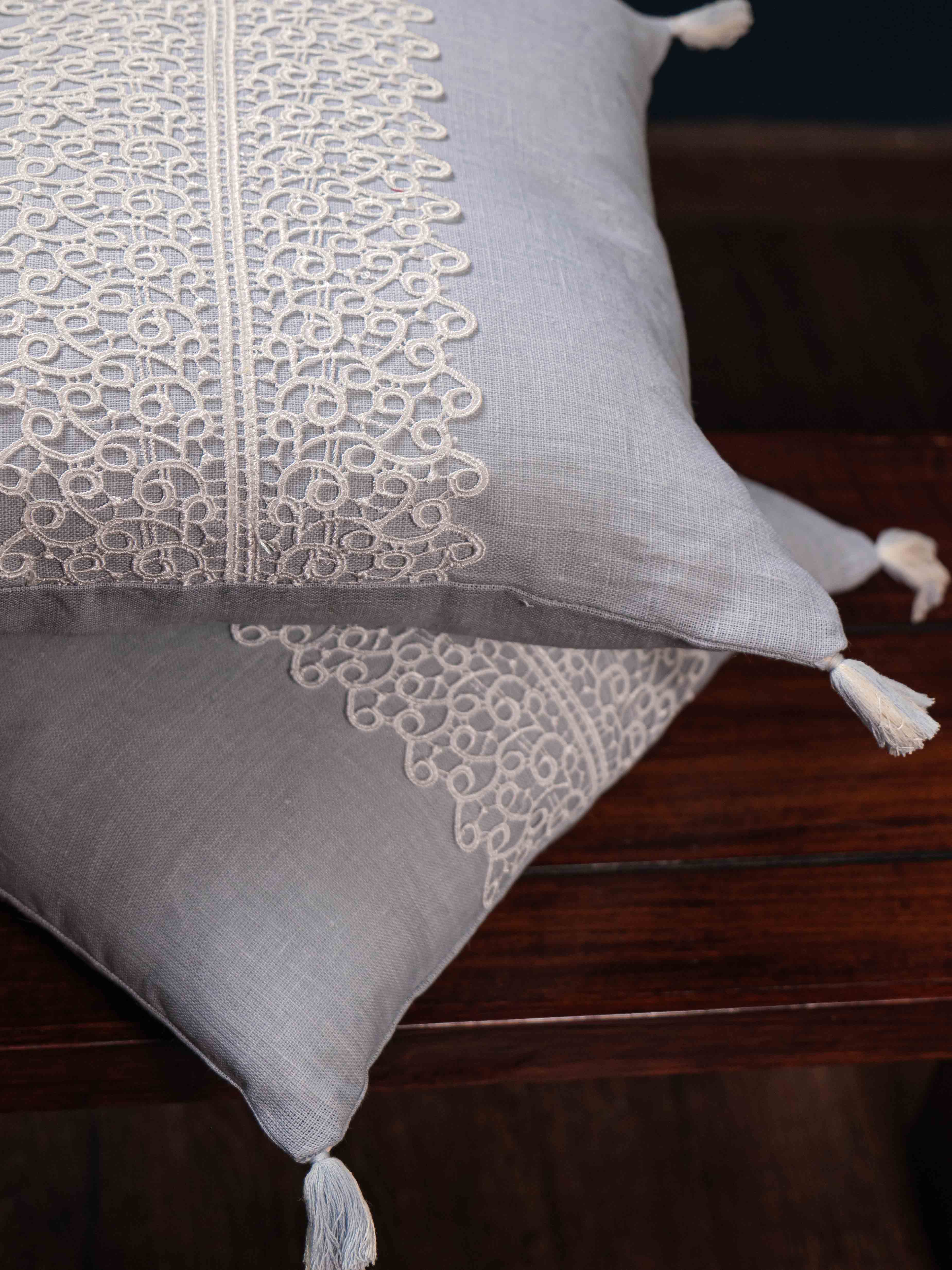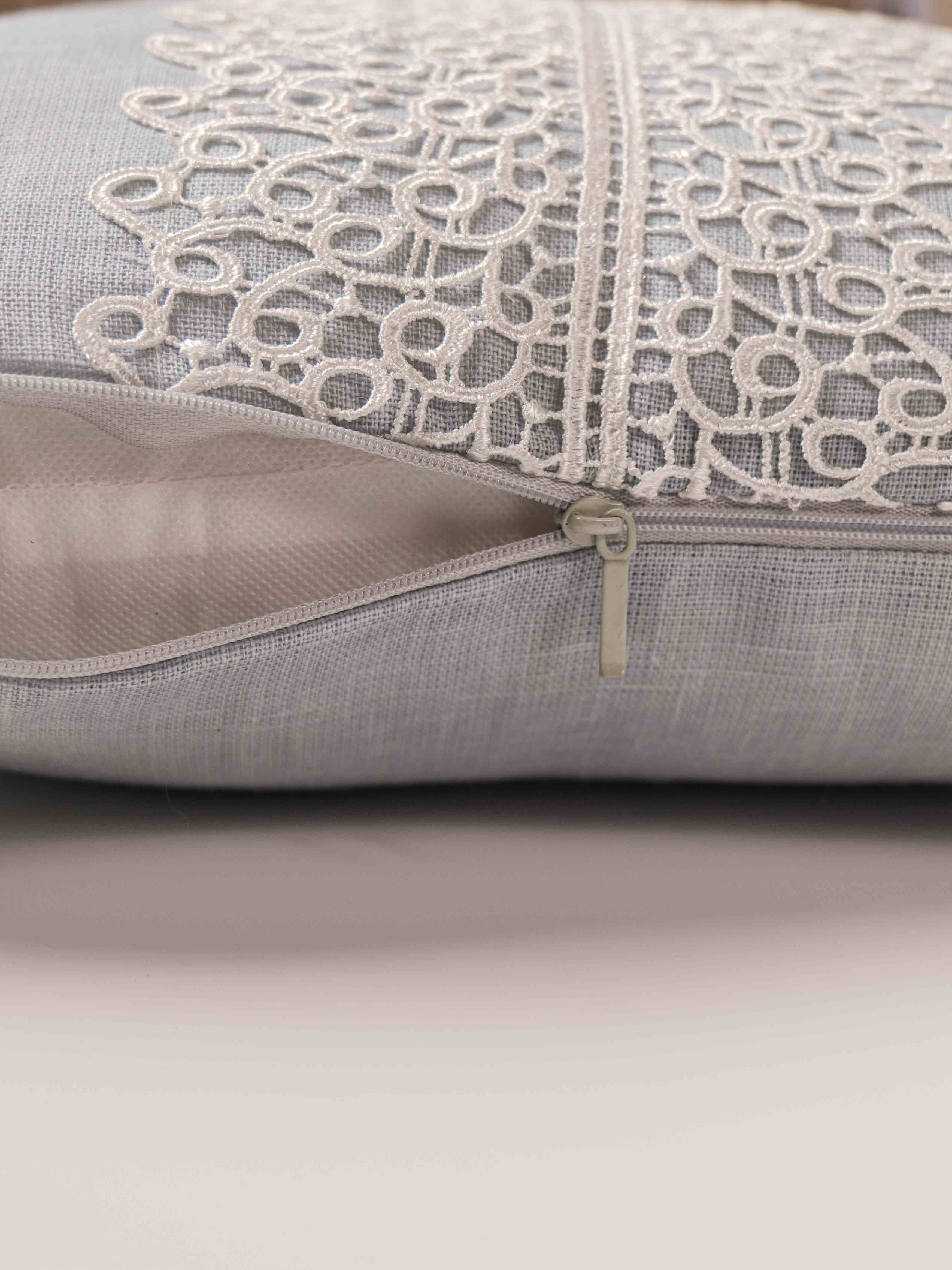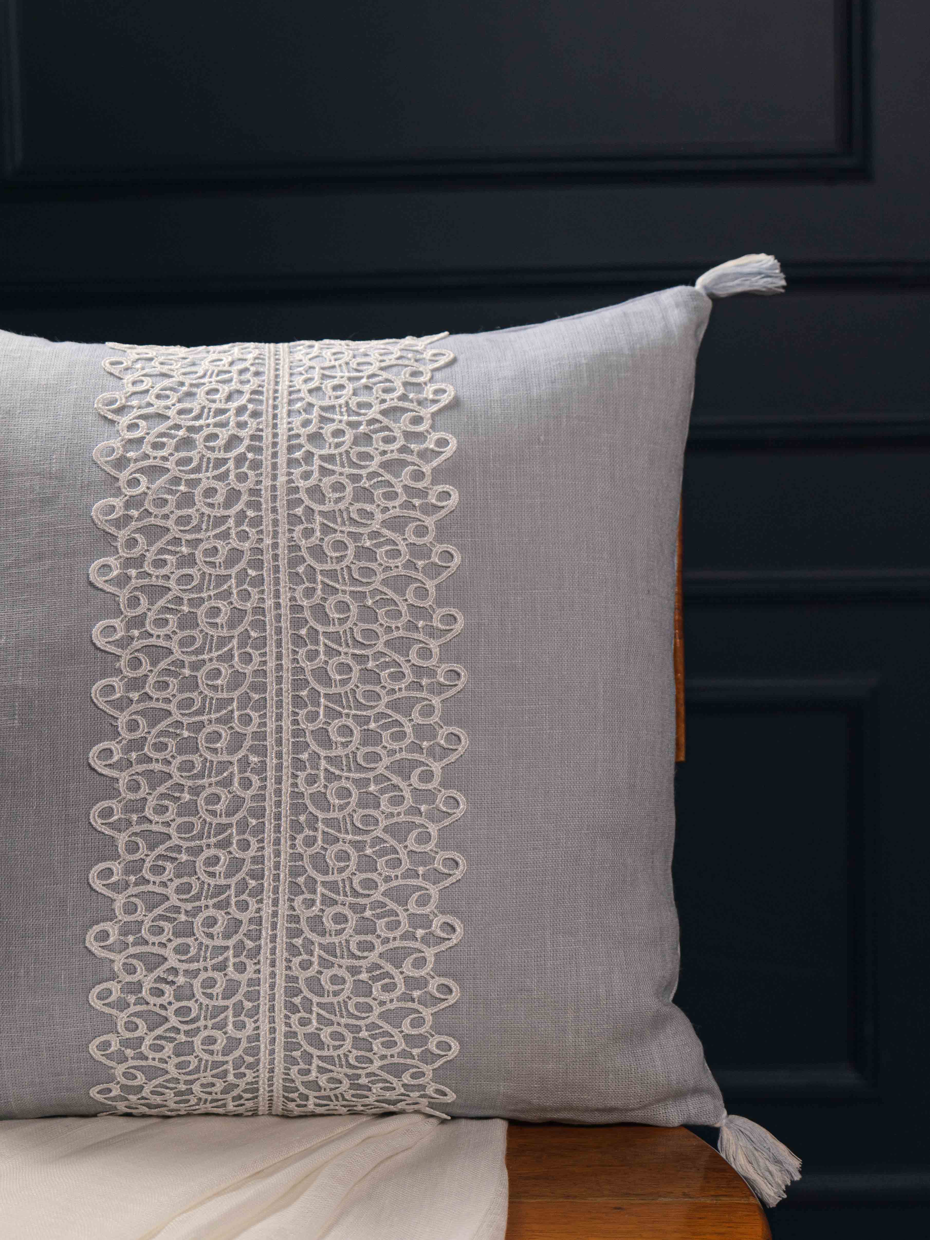 Style this blue lace cushion cover with neutral furniture for a pop of subtle color, or pair with complementary blues for a monochromatic, layered effect. Its delicate detailing and quality construction make it a sophisticated addition to any home. Elevate your décor with this elegant cushion cover, blending traditional craftsmanship with contemporary style.