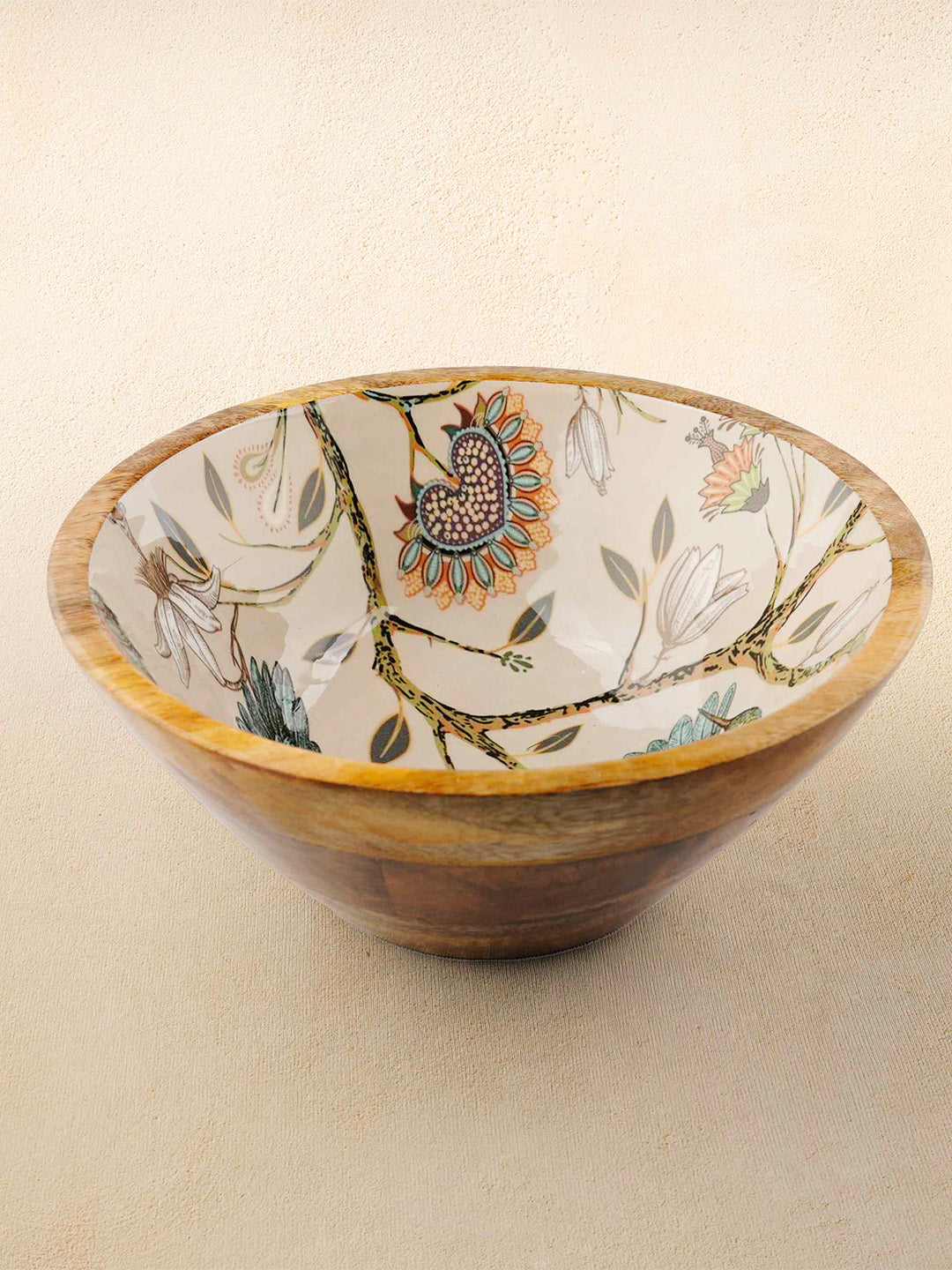 Humming Bird Mango Wood Epoxy Resin Salad Bowl Set - Multi