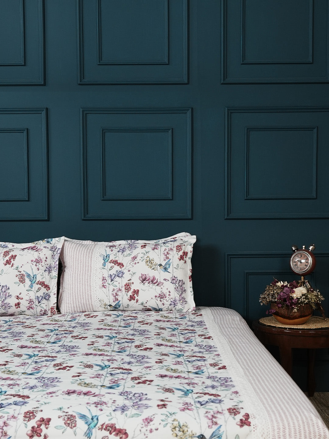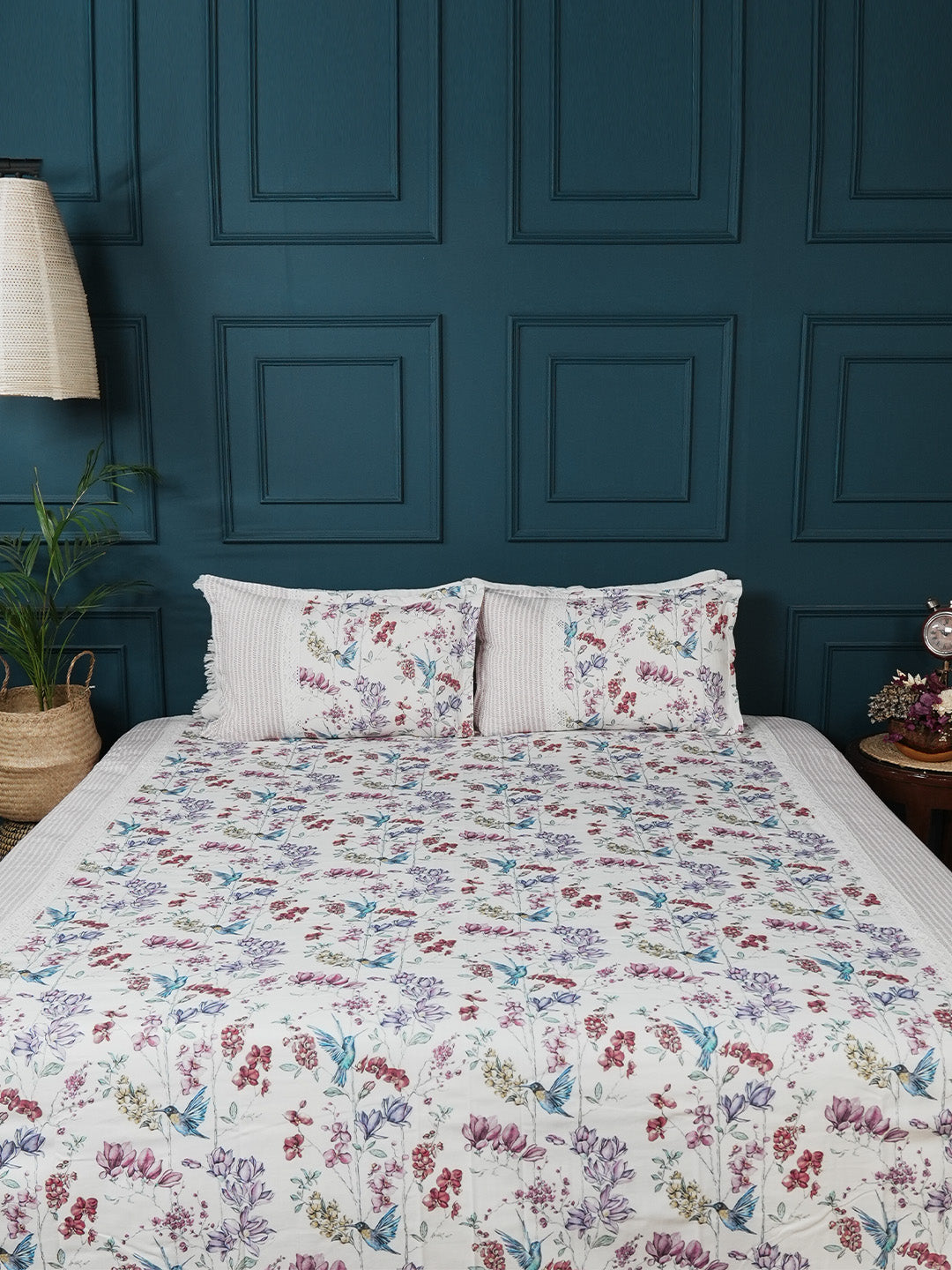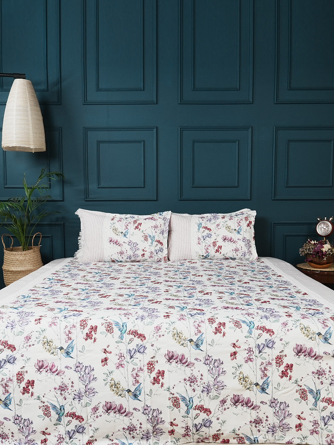Style this floral bed cover with solid-colored cushions for a balanced look, or mix with pastel throws for a fresh, summery vibe. Its vibrant print and soft cotton fabric make it a perfect choice for a cozy, stylish bedroom. Elevate your sleep space with this multi-color bed cover, blending comfort and elegance effortlessly.