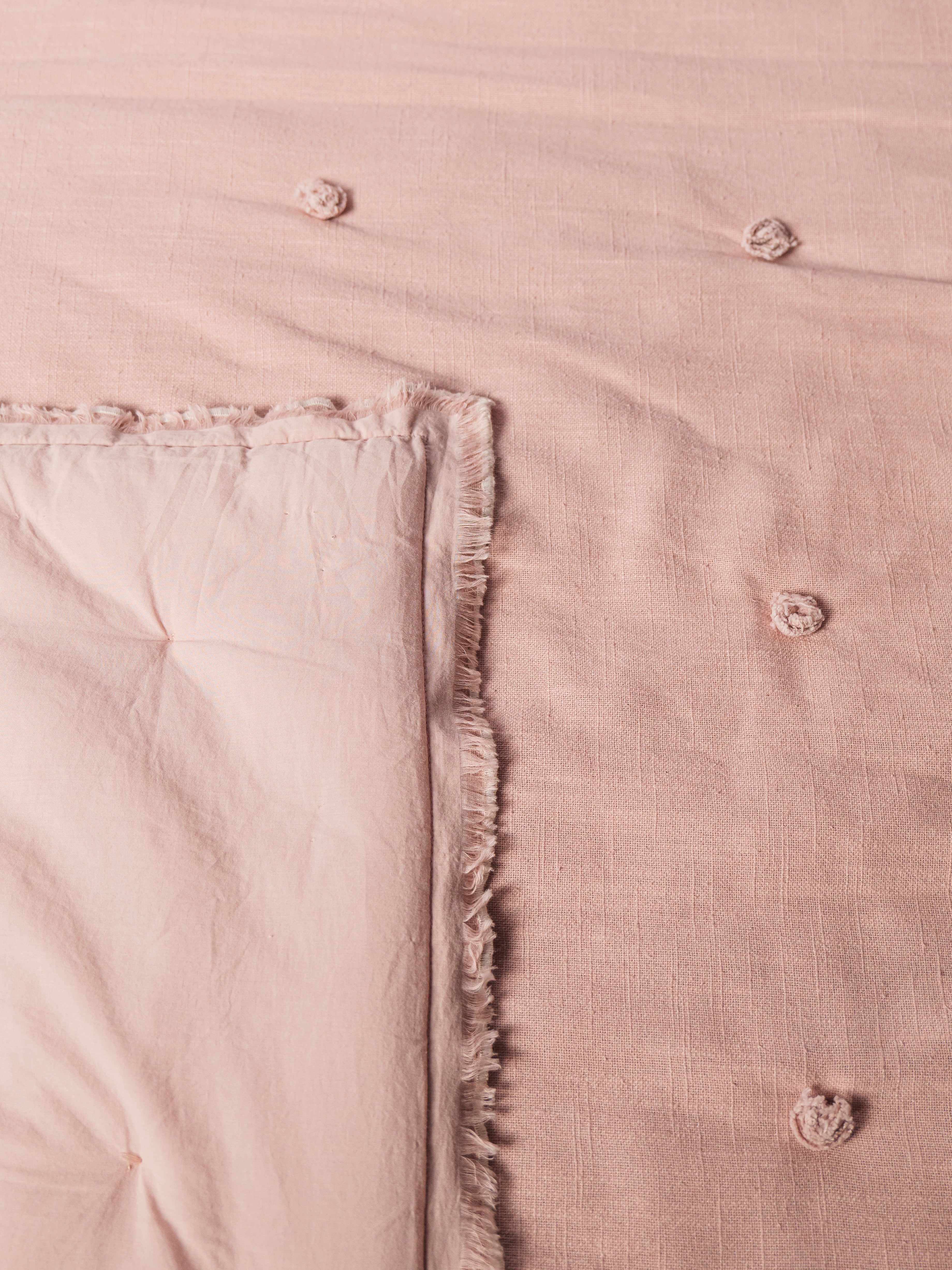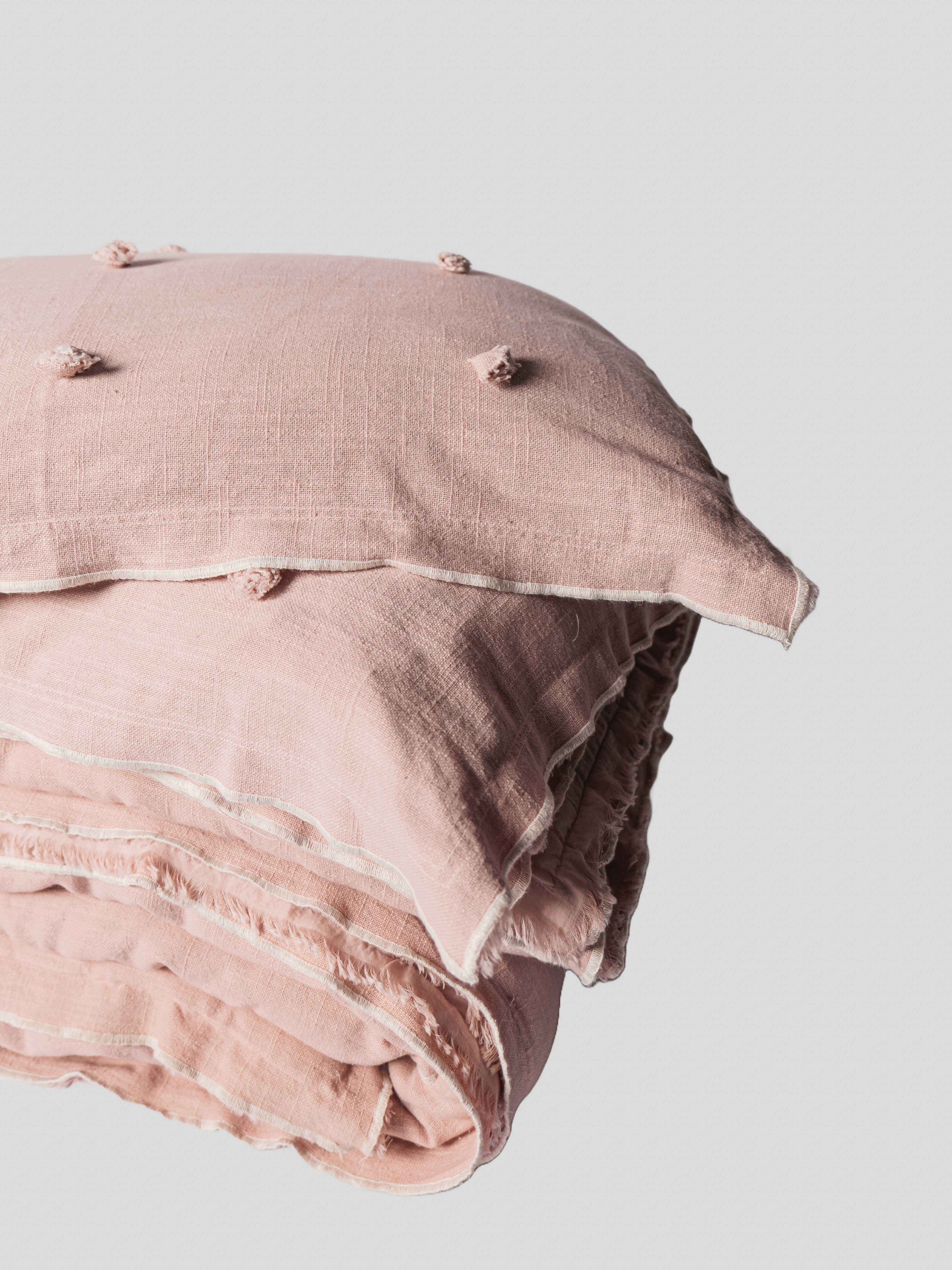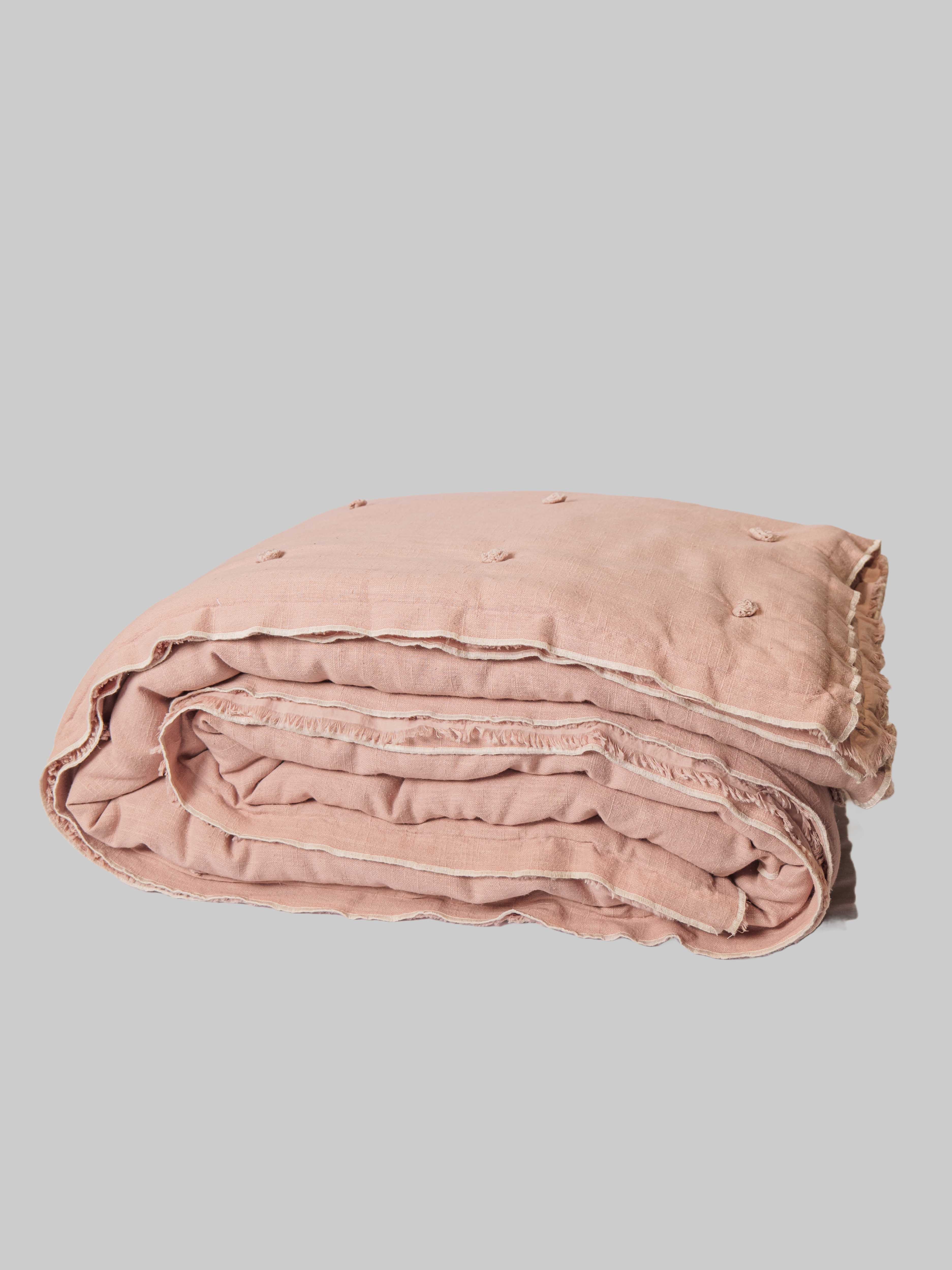 Rosey Applique King Size Bed Spread 100% Linen Cotton - Pink