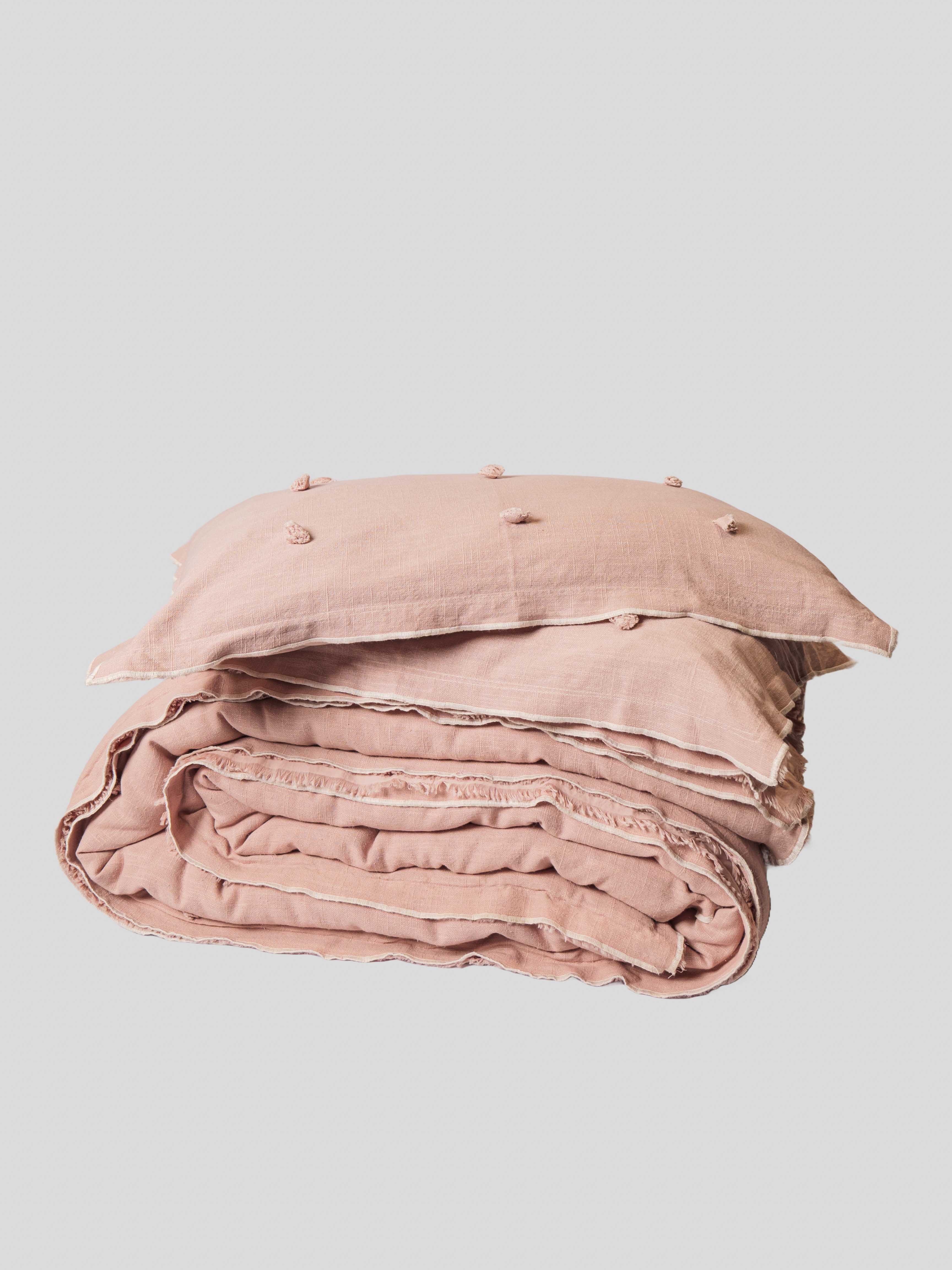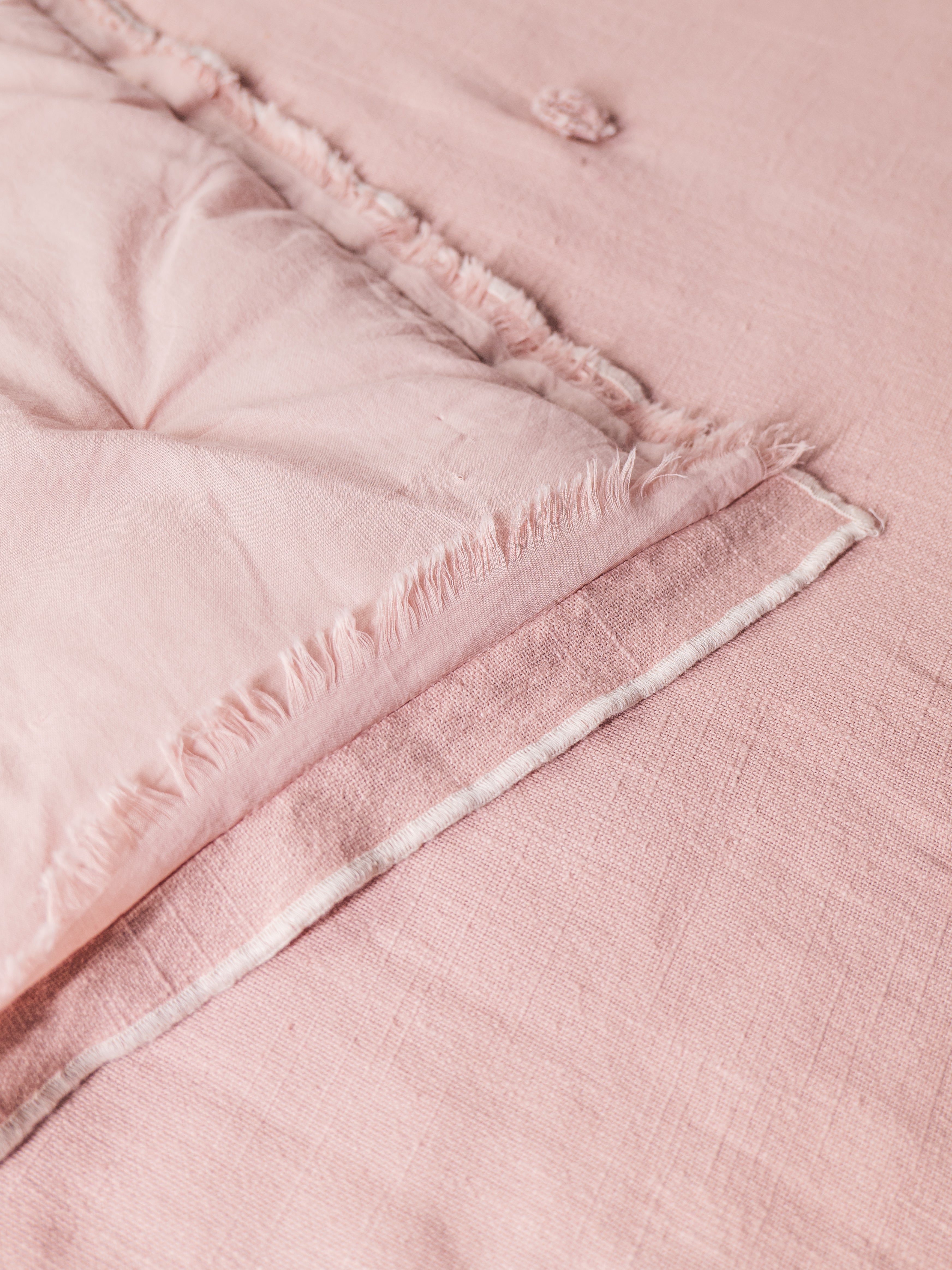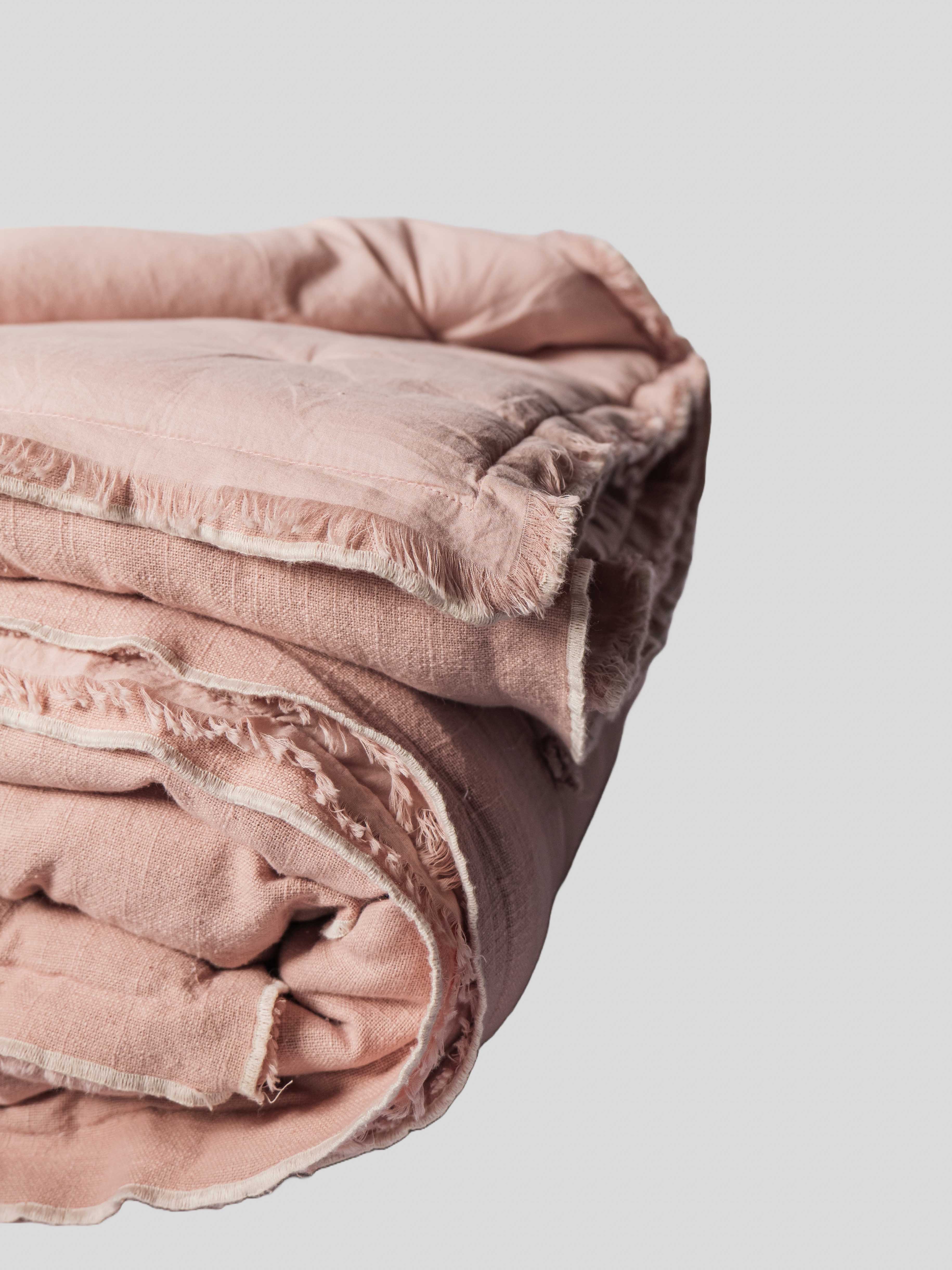 Rosey Applique King Size Bed Spread 100% Linen Cotton - Pink