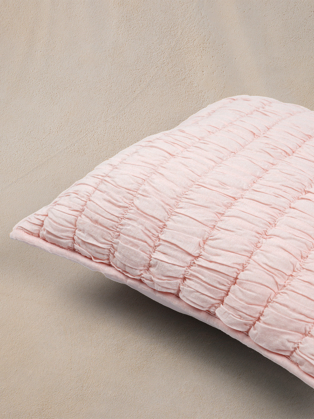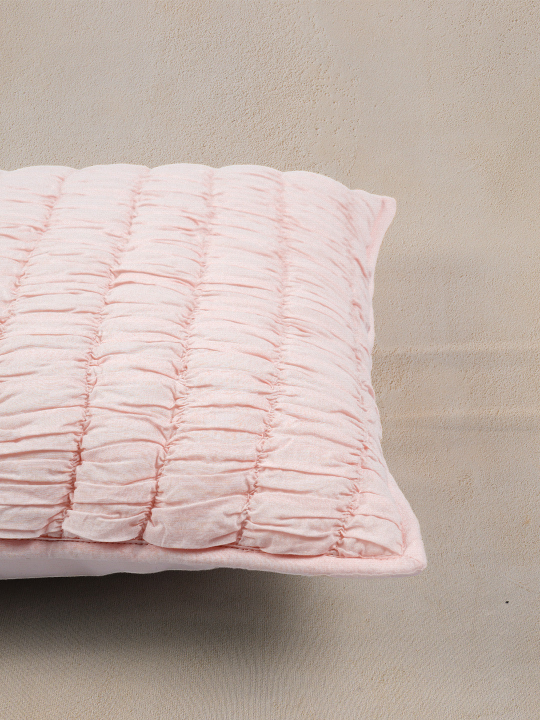 • Smoky Cambric Cotton Smocked Cushion Cover - Pink