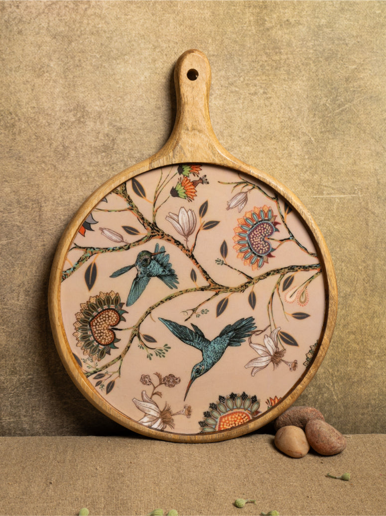 This Forest Walk platter makes entertaining effortless and elegant, adding a touch of tropical charm to any table setting. Use it for casual gatherings or special occasions to showcase your culinary creations against a backdrop of beautiful nature-inspired artistry. The combination of natural mango wood and vibrant epoxy detailing makes this platter both a functional serving piece and an artistic accent for your table.