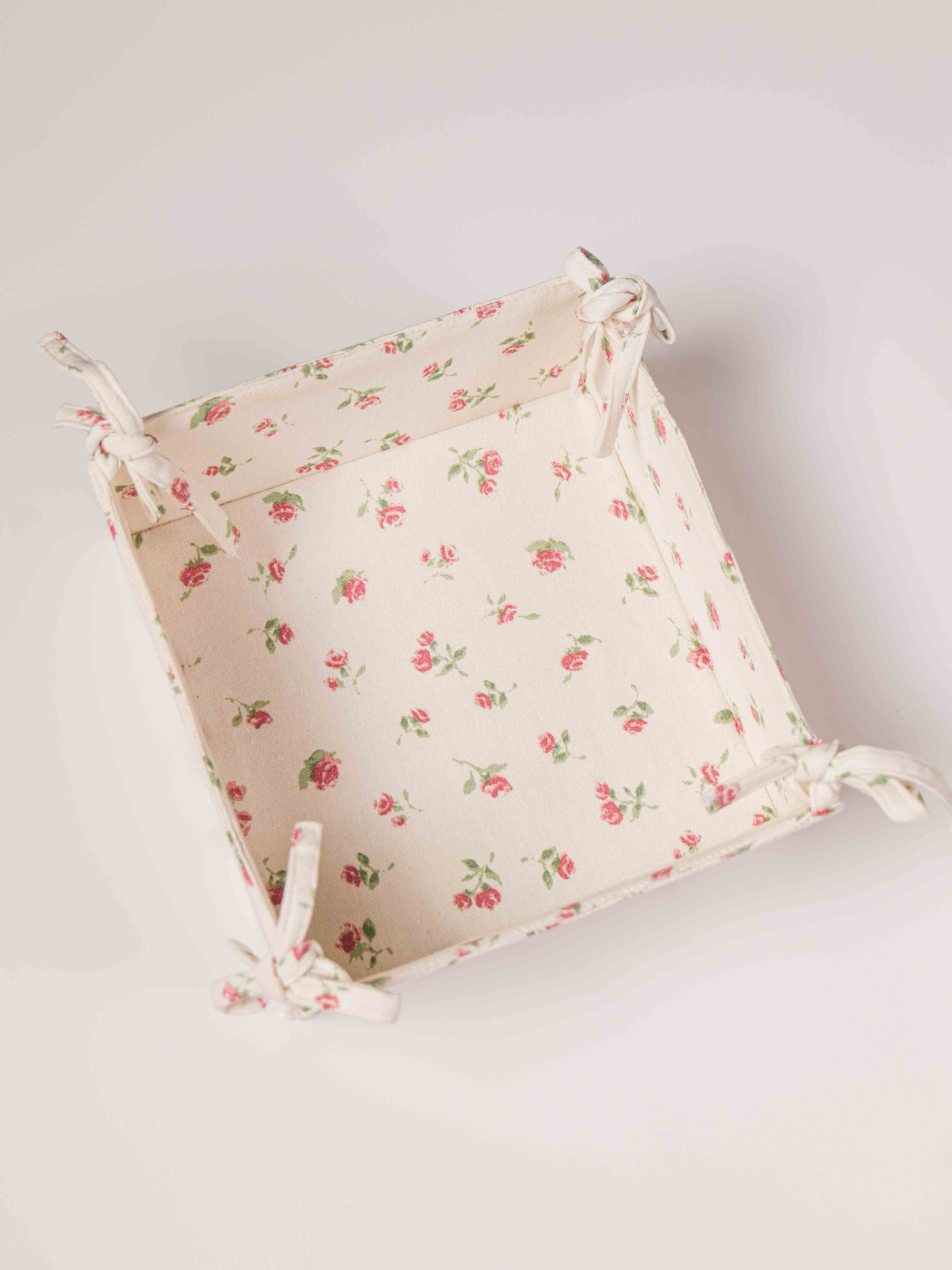 - 1 pc Vanity Basket (8""x8""x3.5"") – made from 100% duck cotton fabric with a charming pink tiny rose print